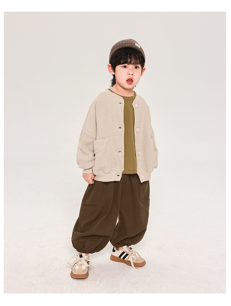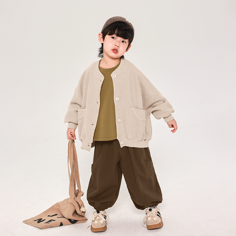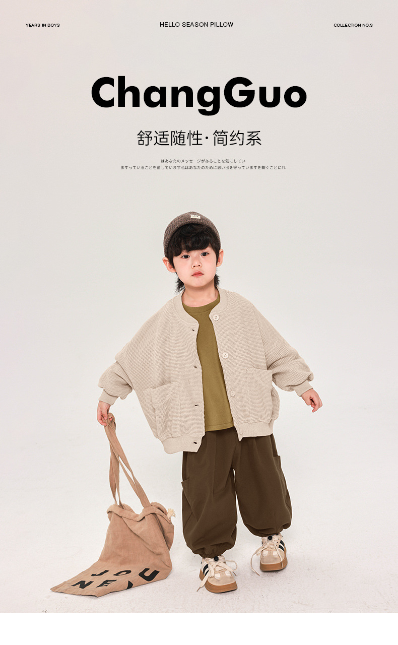 Changguo 아동 의류 소년 재킷 가을 의류 어린이 한국 야구 유니폼 어린이 봄, 가을 숲 스타일 모조 양모 탑