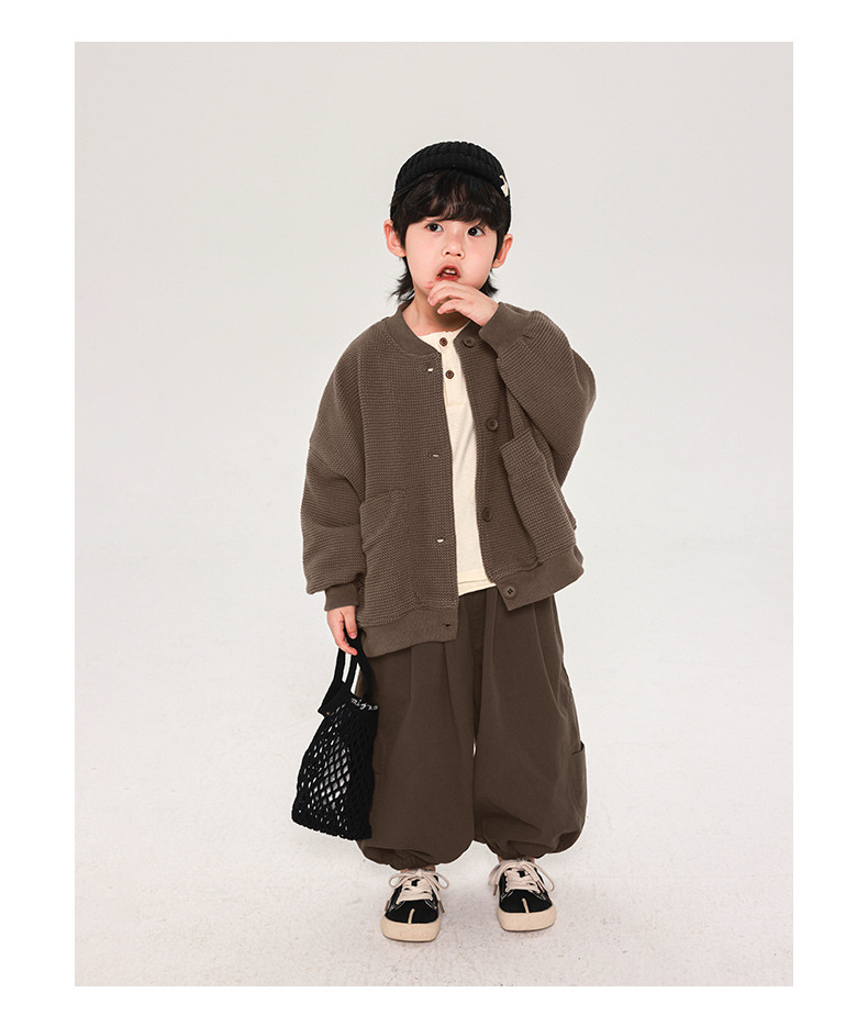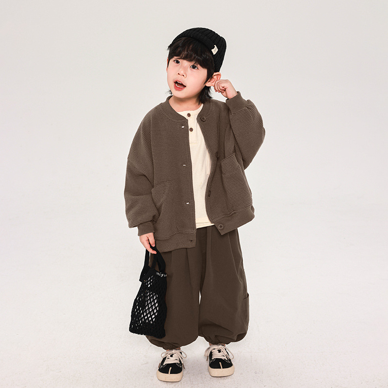 Changguo 아동 의류 소년 재킷 가을 의류 어린이 한국 야구 유니폼 어린이 봄, 가을 숲 스타일 모조 양모 탑스토어 가기