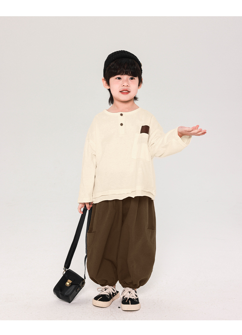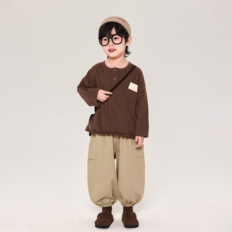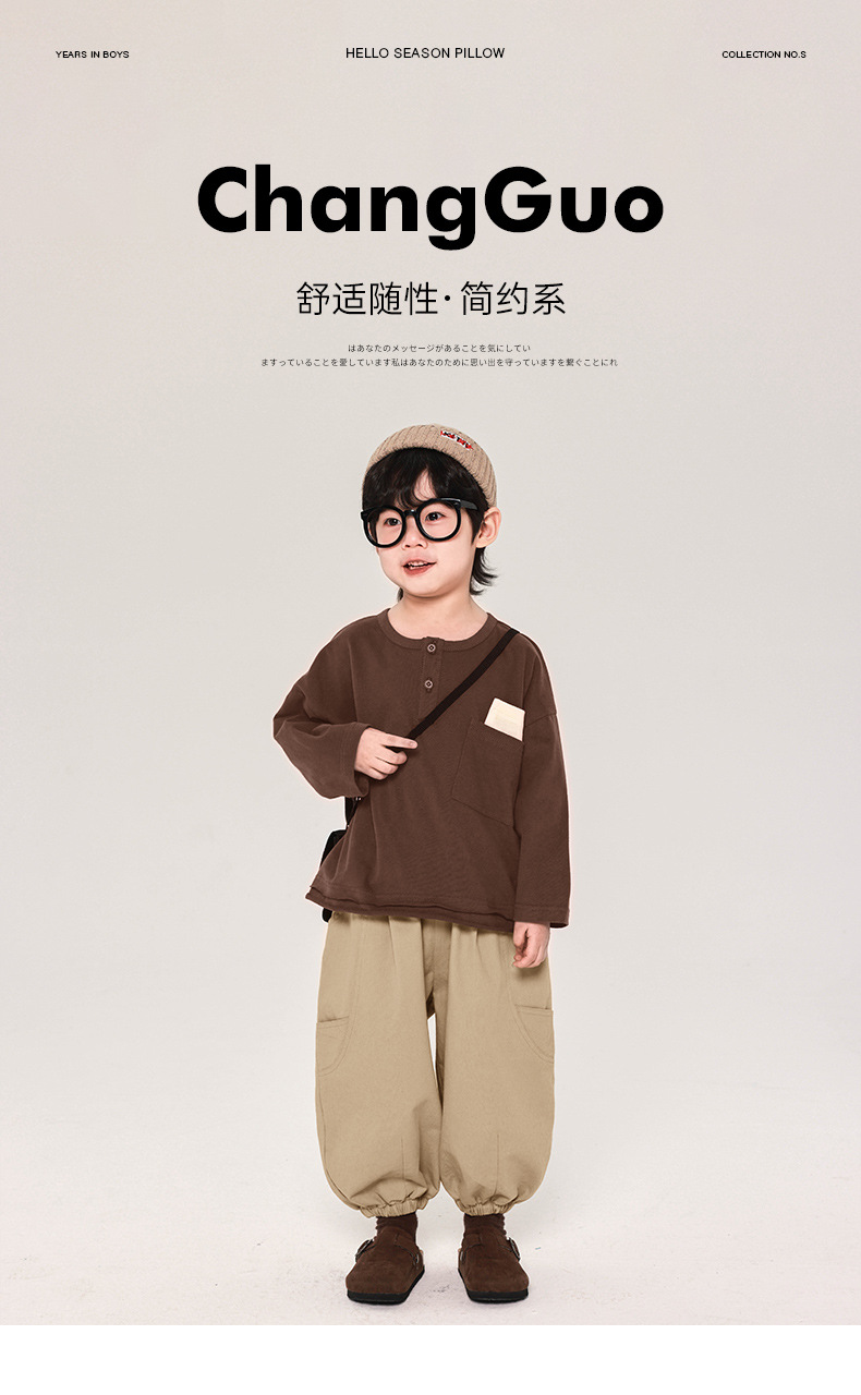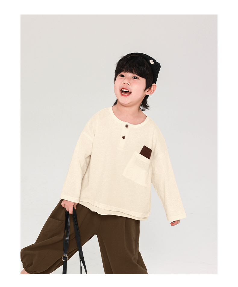 Changguo 아동복 소년 긴팔 티셔츠 아동 가을 의류 새로운 한국어 버전 중소 어린이 봄, 가을상의 순면 바닥 셔츠