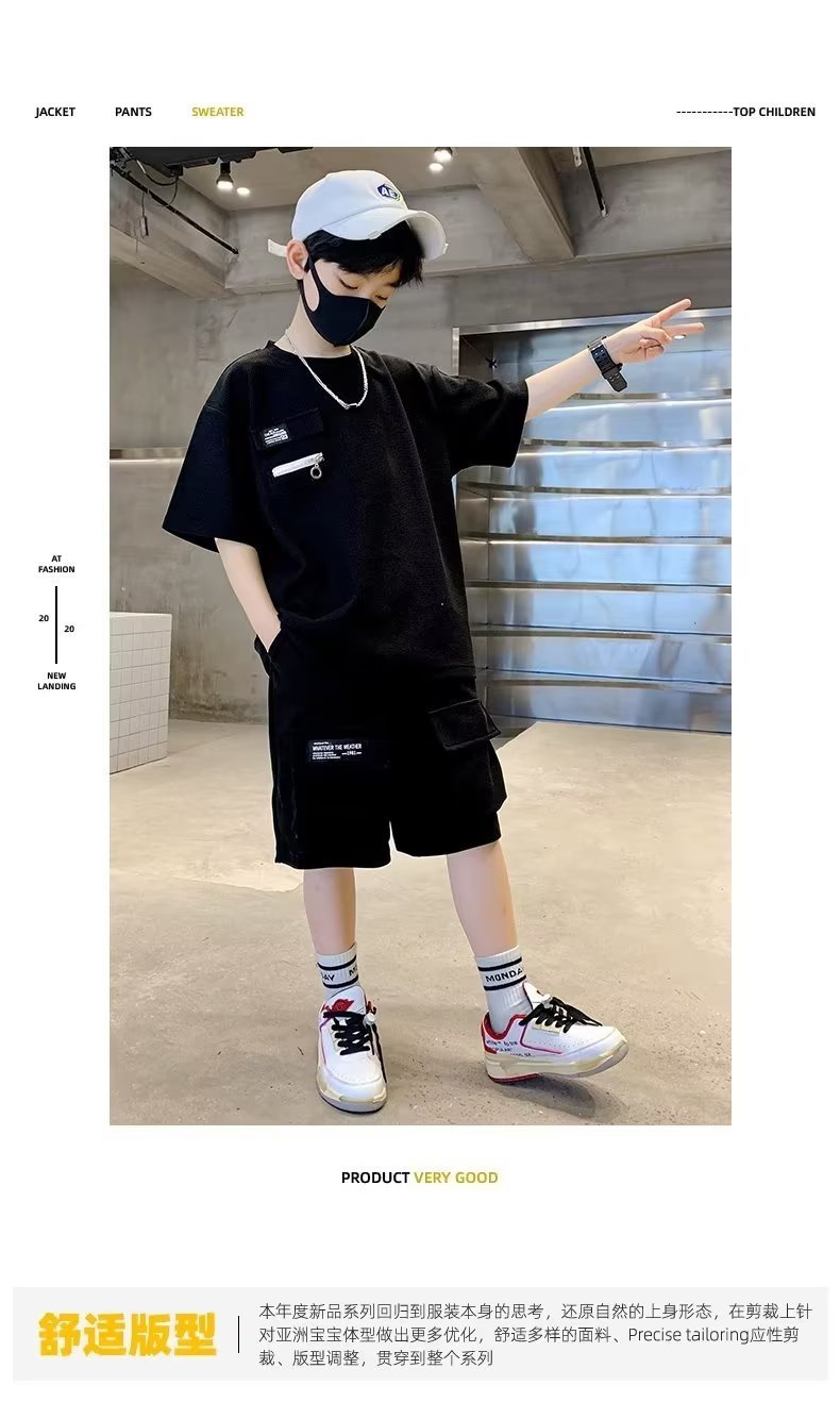 남자 여름 착용 스포츠 세트 2024 새로운 아동복 여름 인터넷 소년 반팔 쿨 잘 생긴 유행 잘 생긴 기념