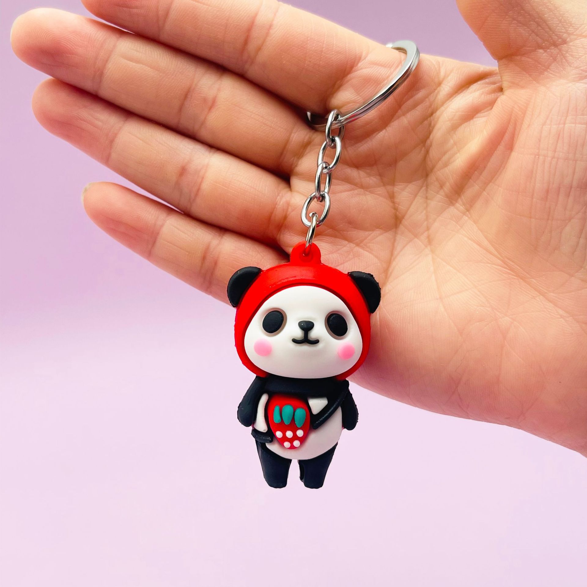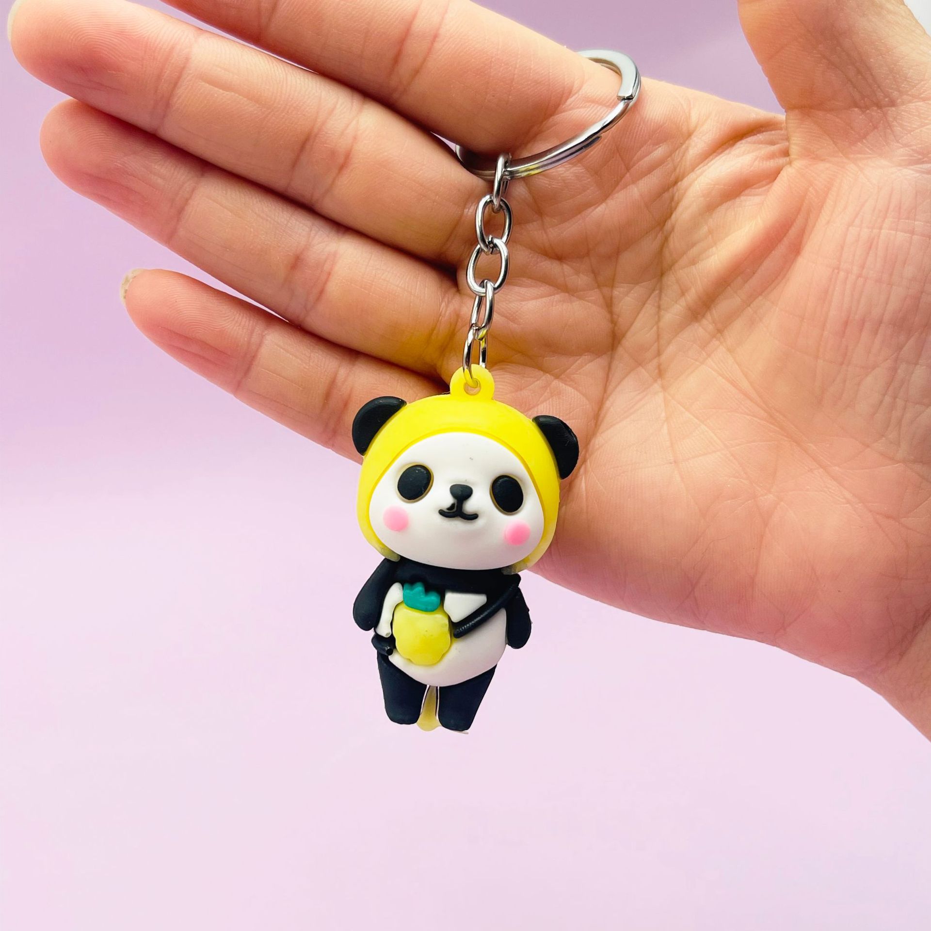 창조적 인 만화 과일 곰 키 체인 가방 펜던트 PVC 팬더 인형 장식품 선물 활동 선물 재고