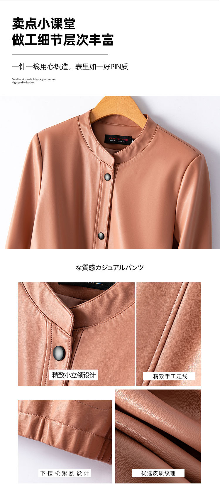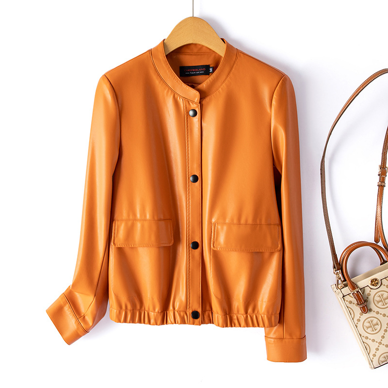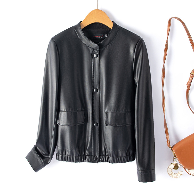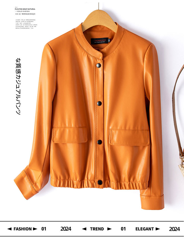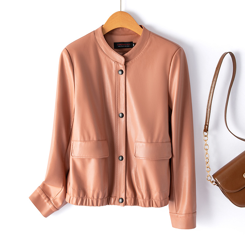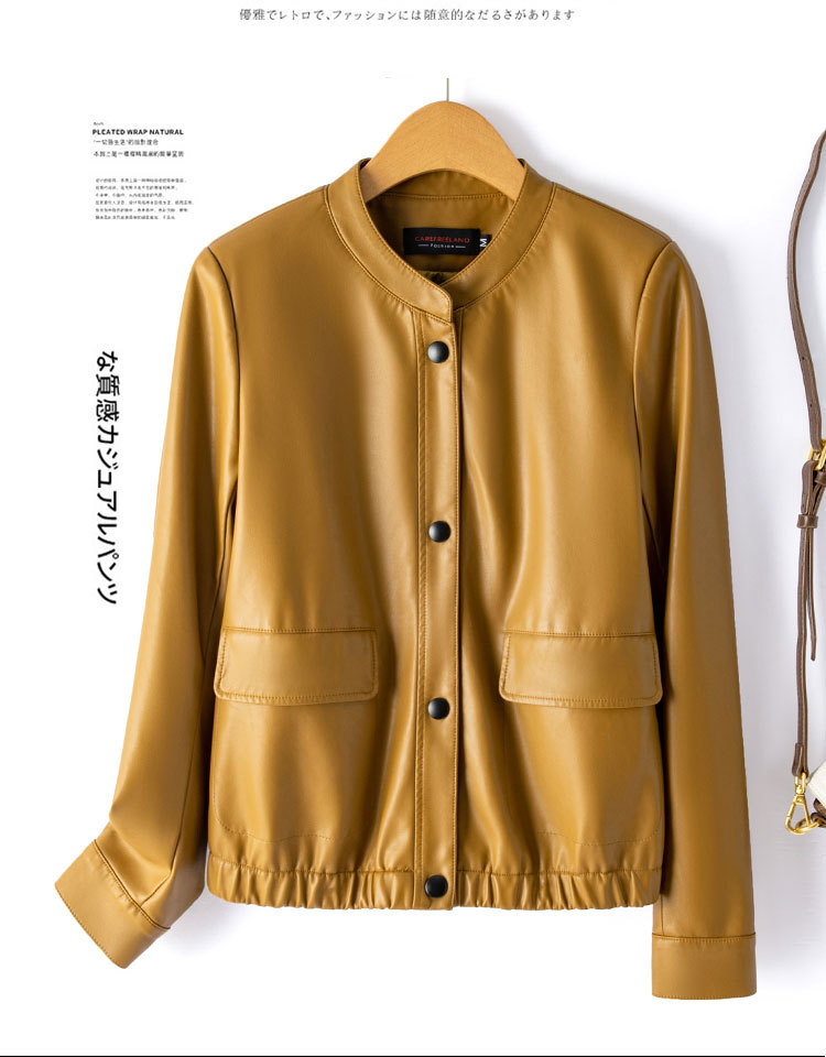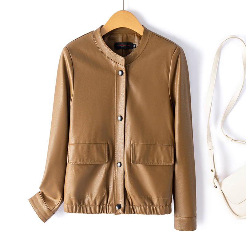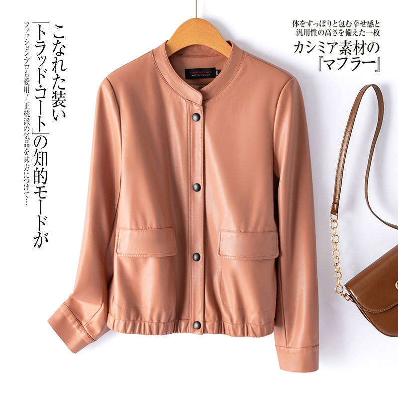 가죽 여성 2024 Caveland 봄 새로운 스타일 샤넬 스타일 짧은 가죽 재킷 느슨한 슬리밍 여성용 재킷스토어 가기