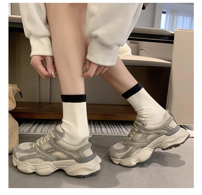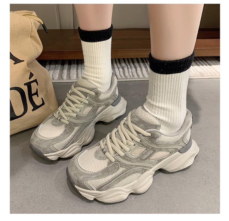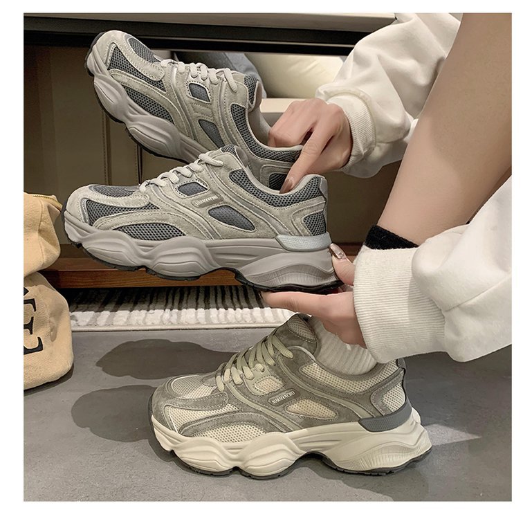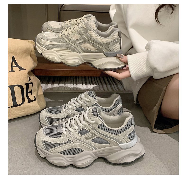 [아마노] 여성을위한 정품 가죽 아빠 신발 2024 봄 새로운 두꺼운 바닥 통기성 올 매치 러닝 캐주얼 운동화