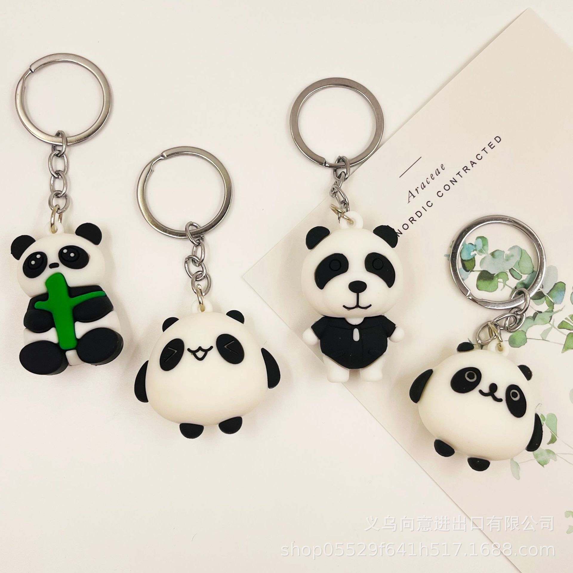 卡通熊猫钥匙扣可爱立体软胶熊猫公仔包包挂件情侣小挂饰活动礼品