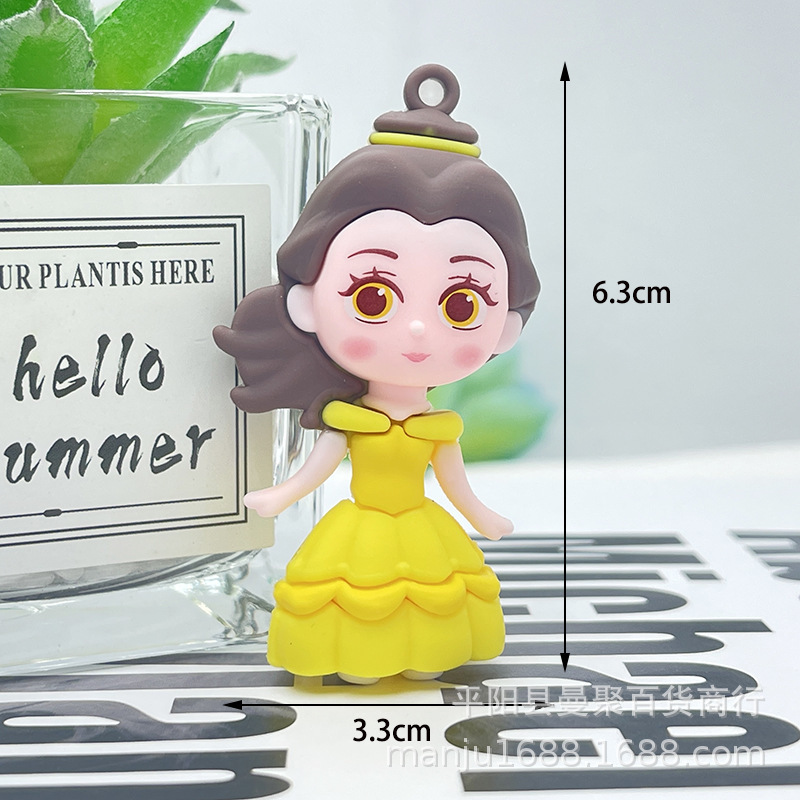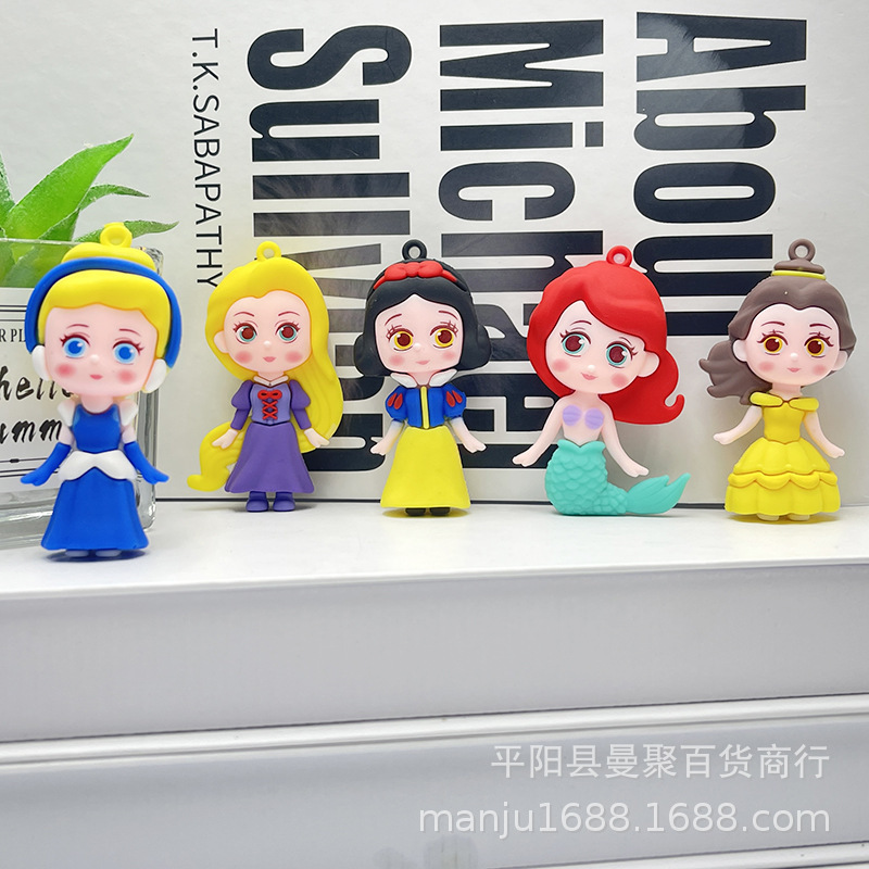 2024 백설 공주 키 체인 펜던트 냉동 PVC 귀여운 인형 장식품 자동차 키 체인 도매스토어 가기