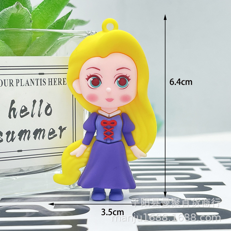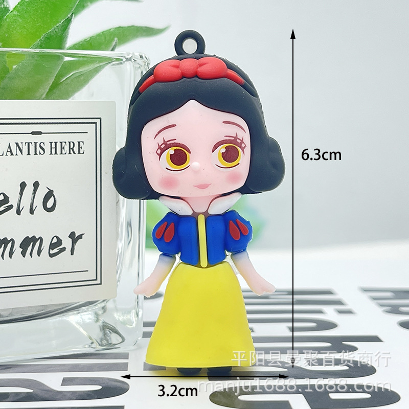 2024 백설 공주 키 체인 펜던트 냉동 PVC 귀여운 인형 장식품 자동차 키 체인 도매