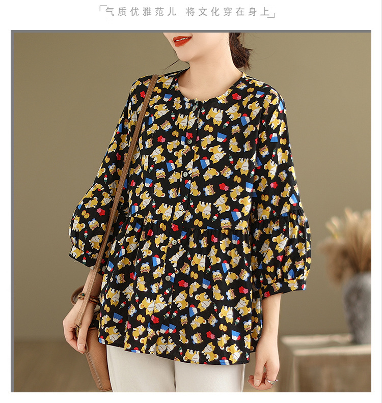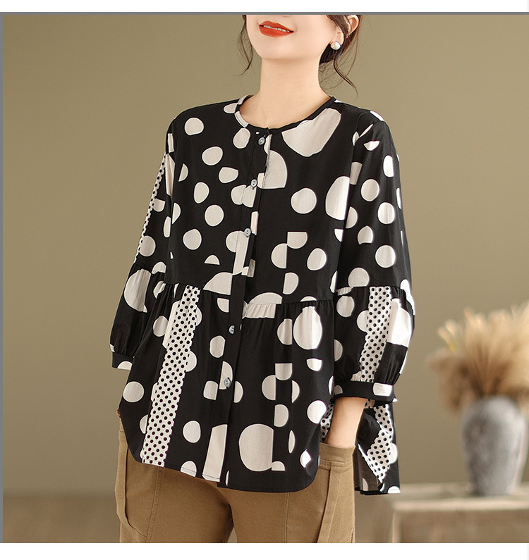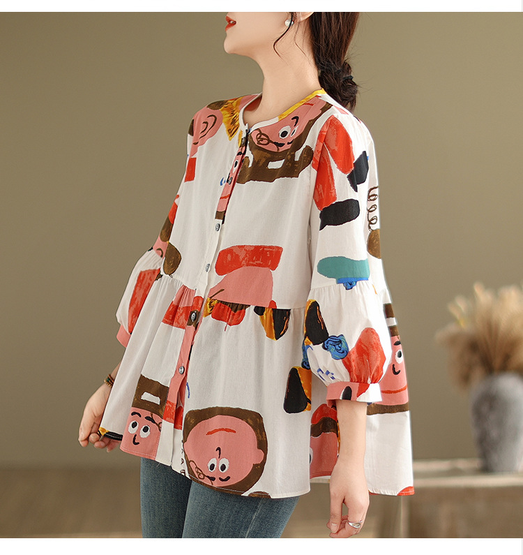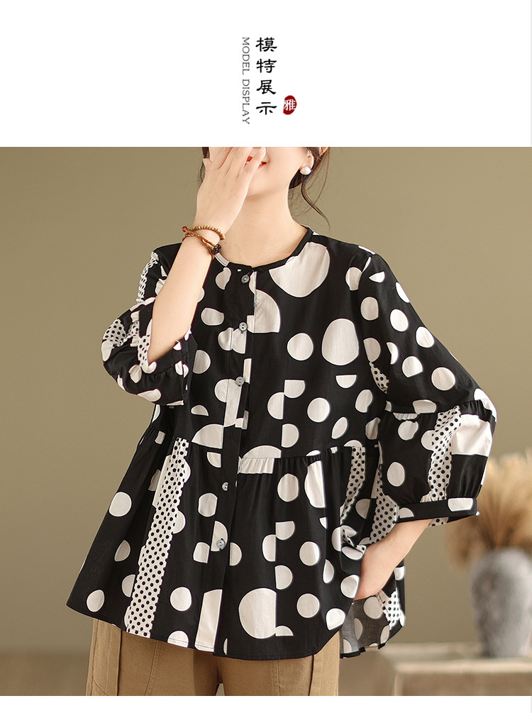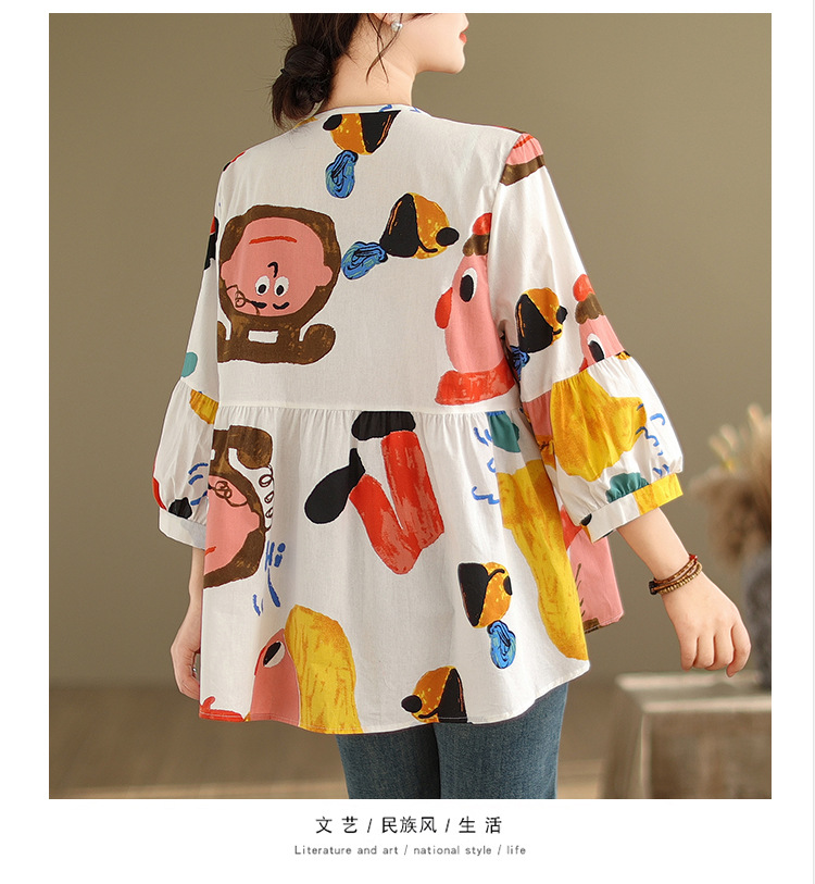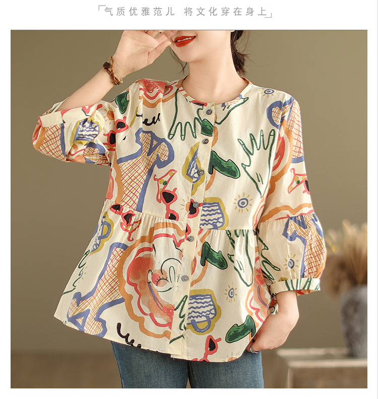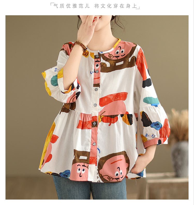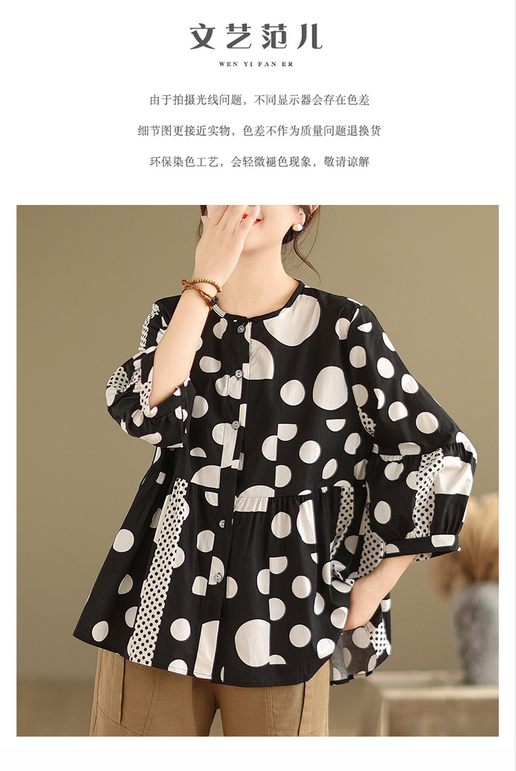 새로운 여성의 3/4 소매 유행 서양식 연령 감소 인형 셔츠 탑 2024 느슨한 배꼽 셔츠 여름