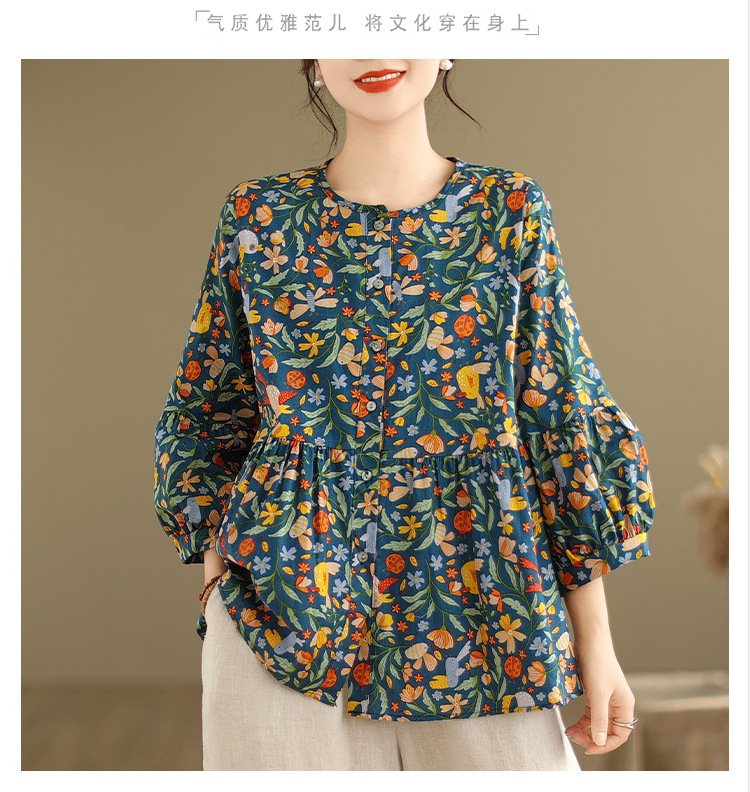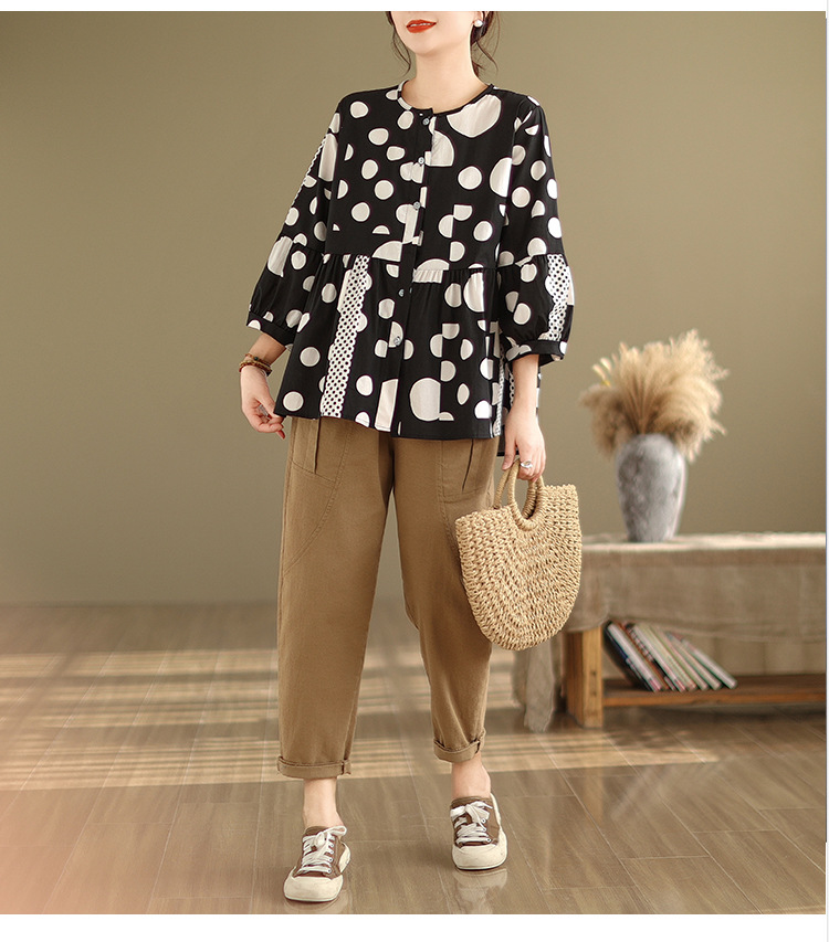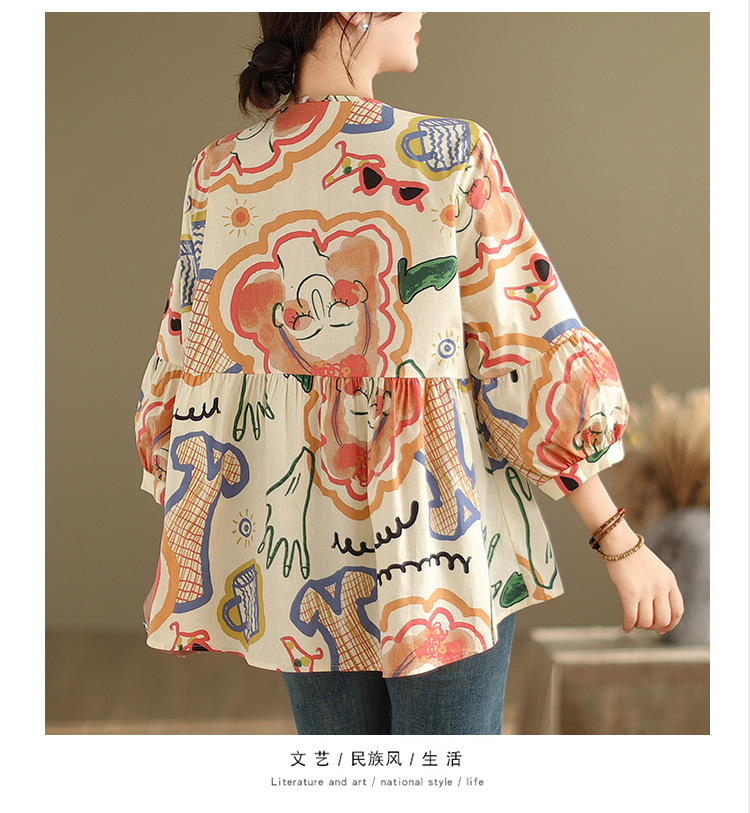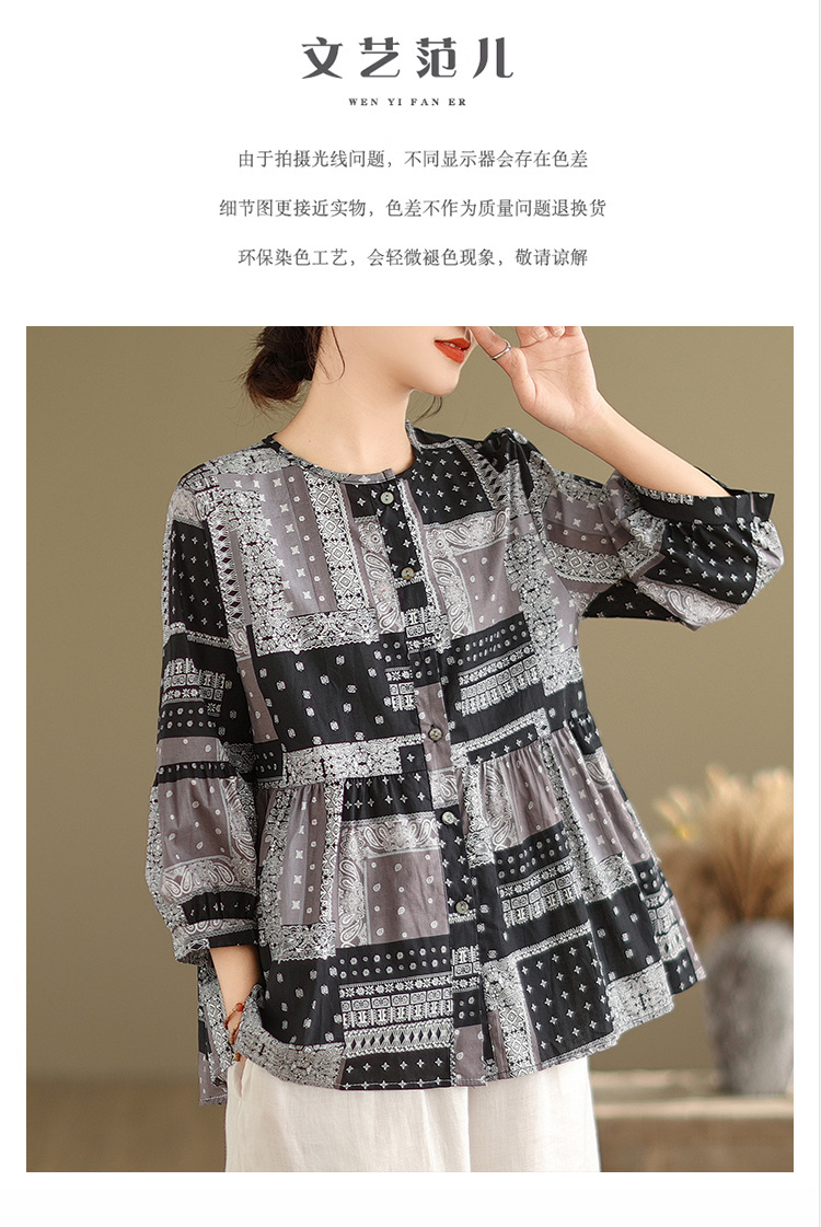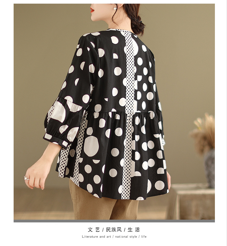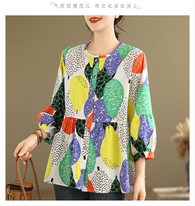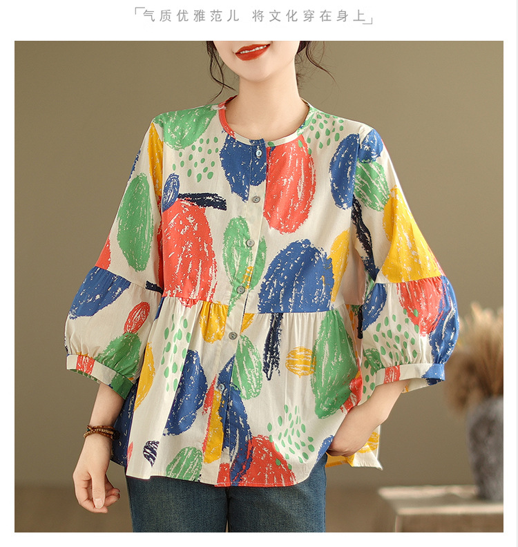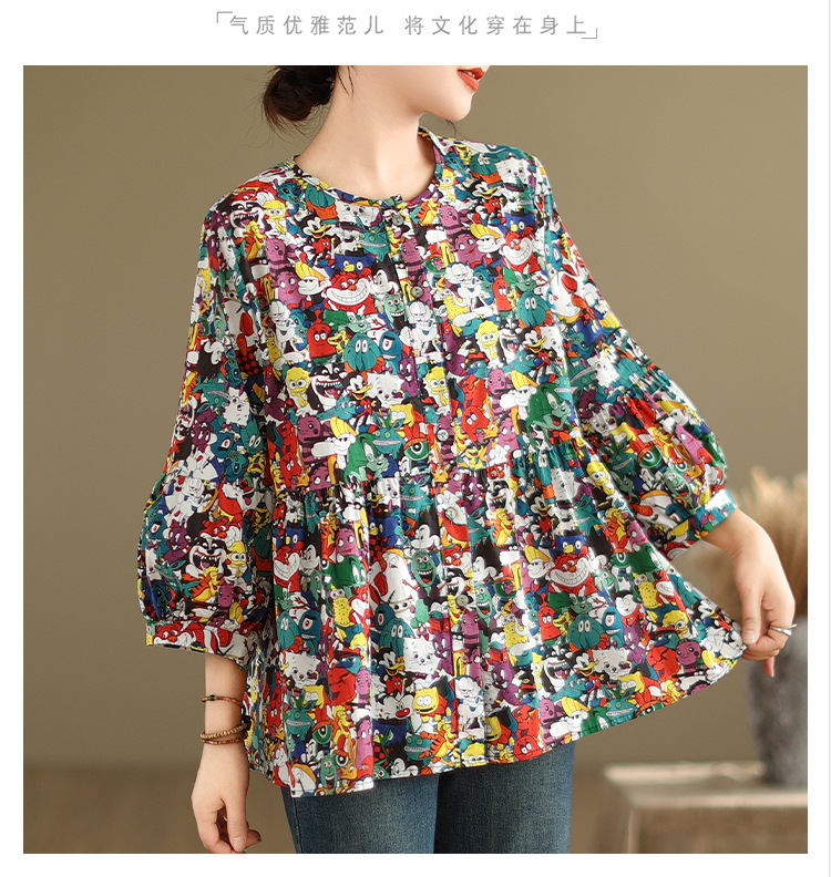 새로운 여성의 3/4 소매 유행 서양식 연령 감소 인형 셔츠 탑 2024 느슨한 배꼽 셔츠 여름