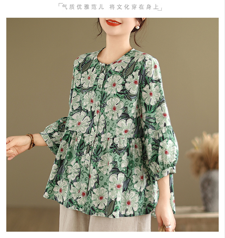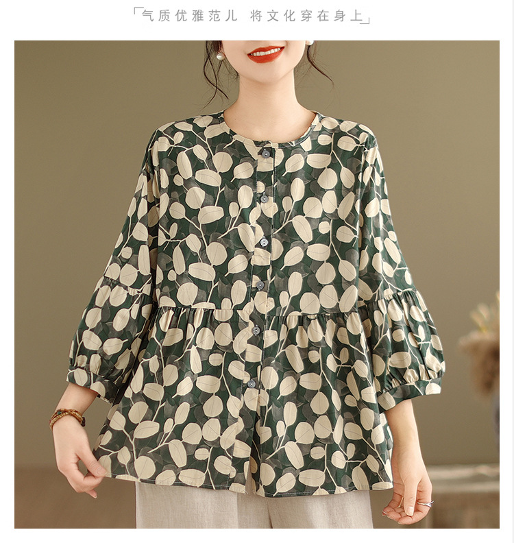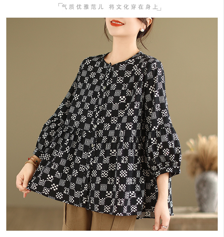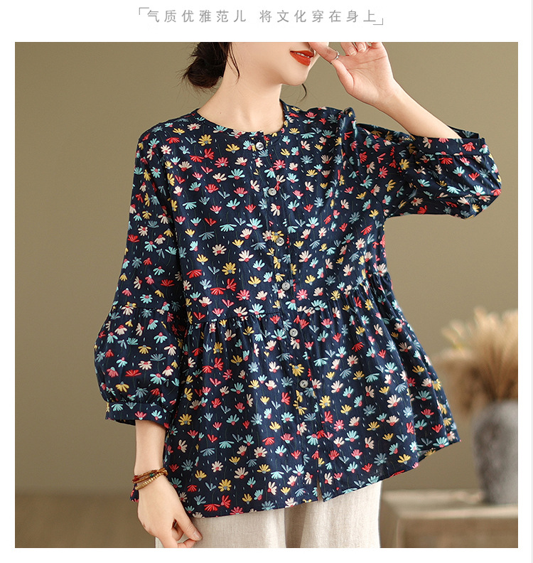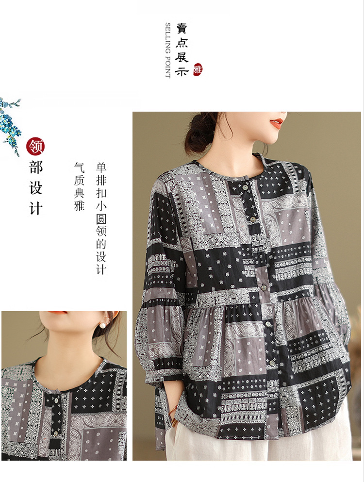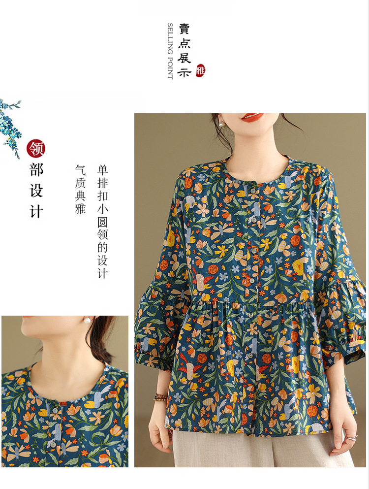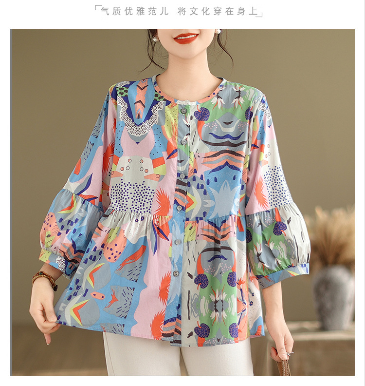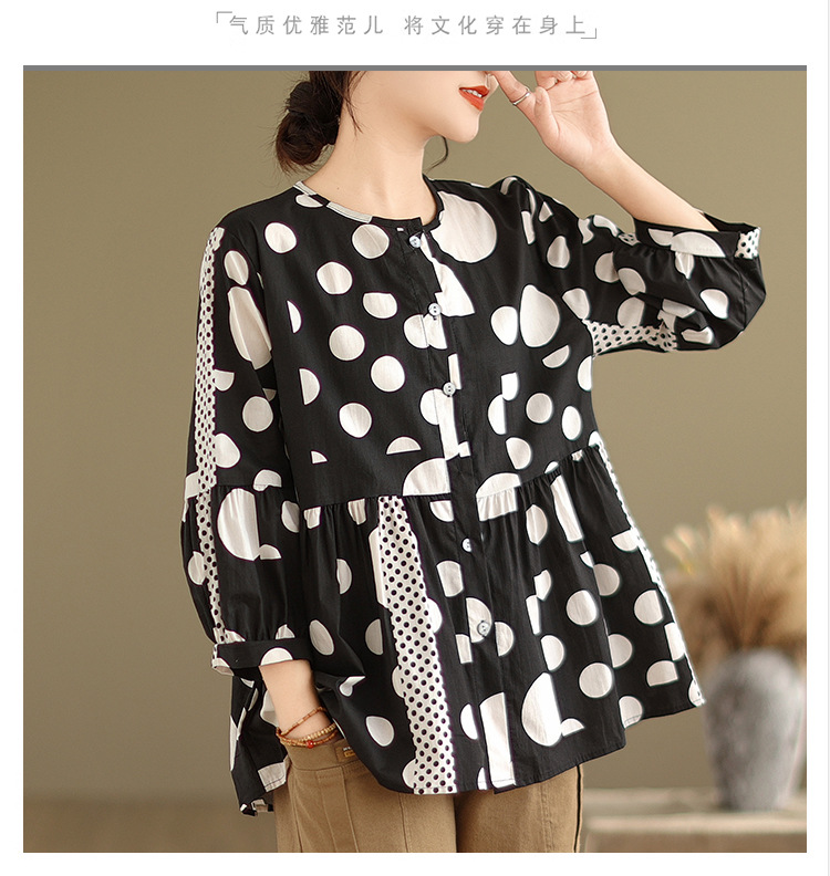 새로운 여성의 3/4 소매 유행 서양식 연령 감소 인형 셔츠 탑 2024 느슨한 배꼽 셔츠 여름