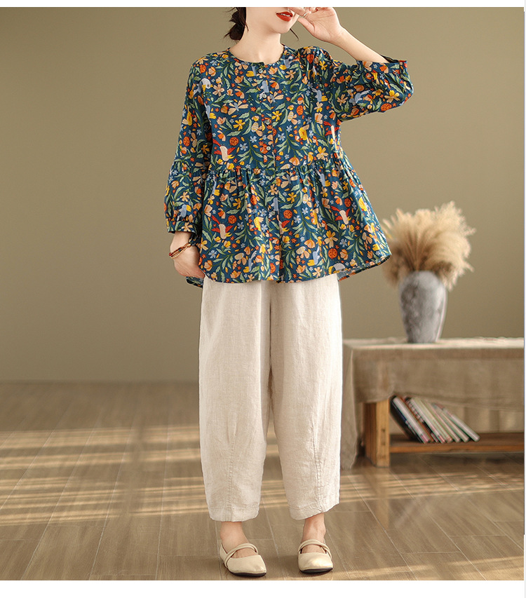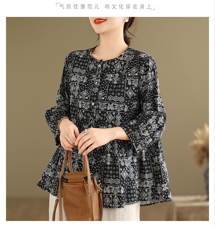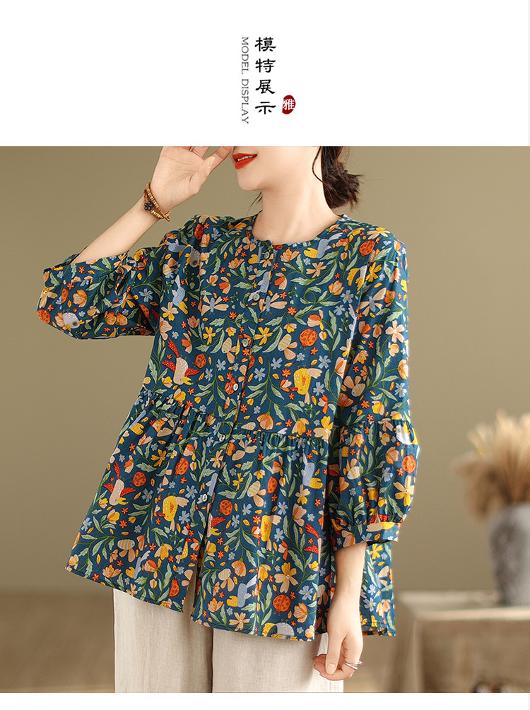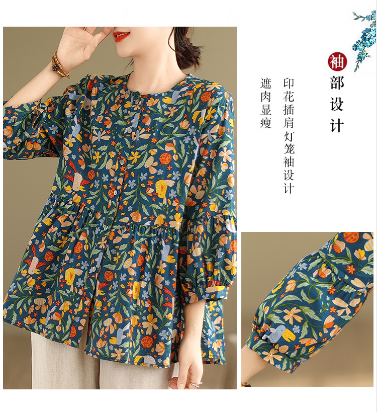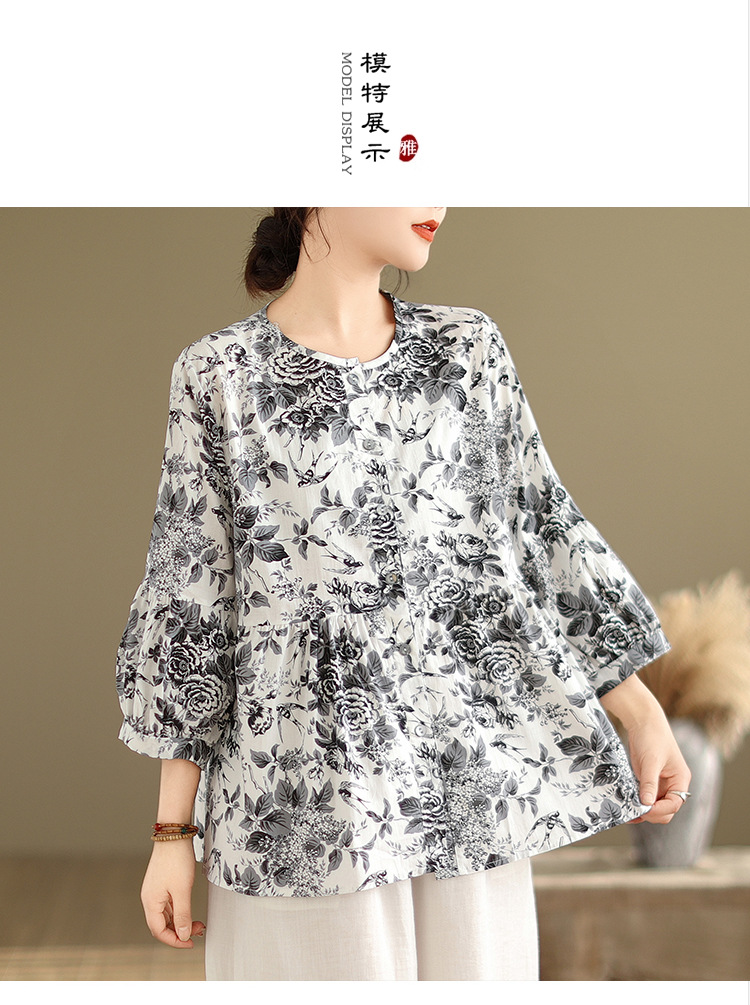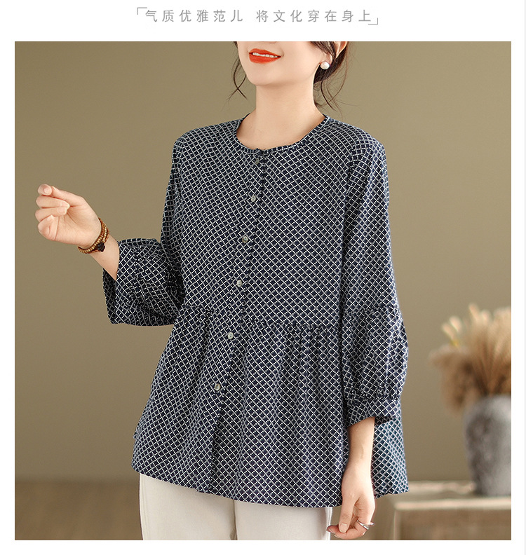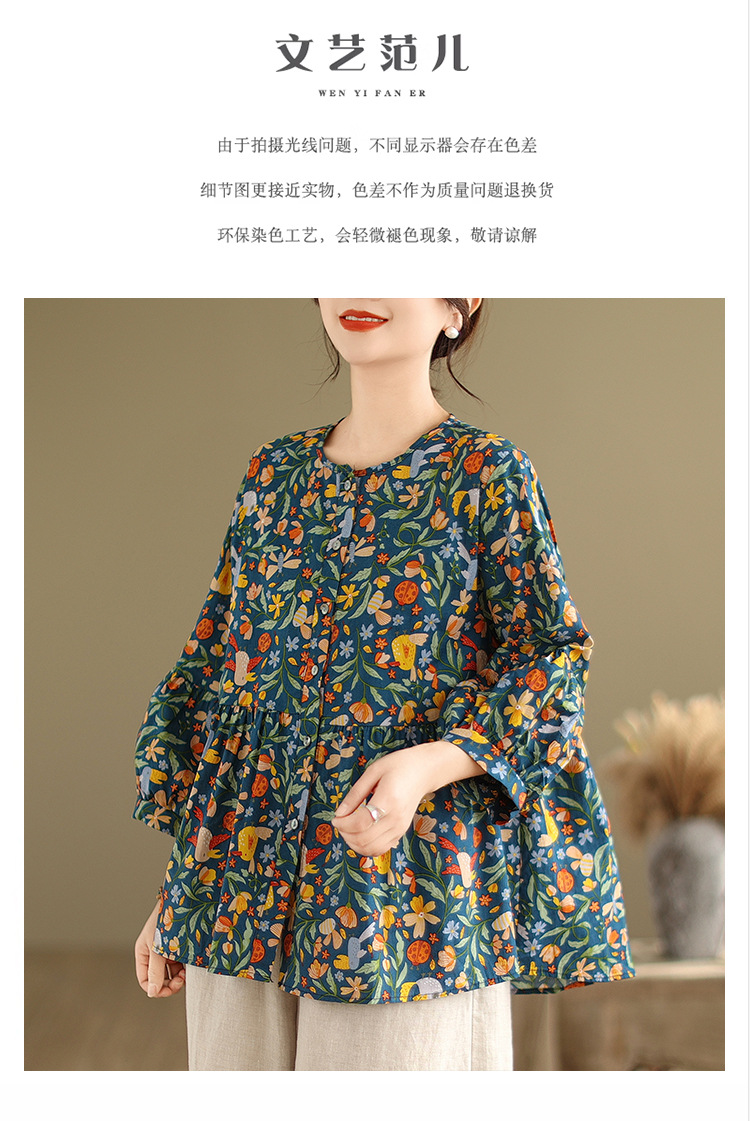 새로운 여성의 3/4 소매 유행 서양식 연령 감소 인형 셔츠 탑 2024 느슨한 배꼽 셔츠 여름