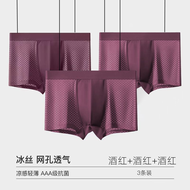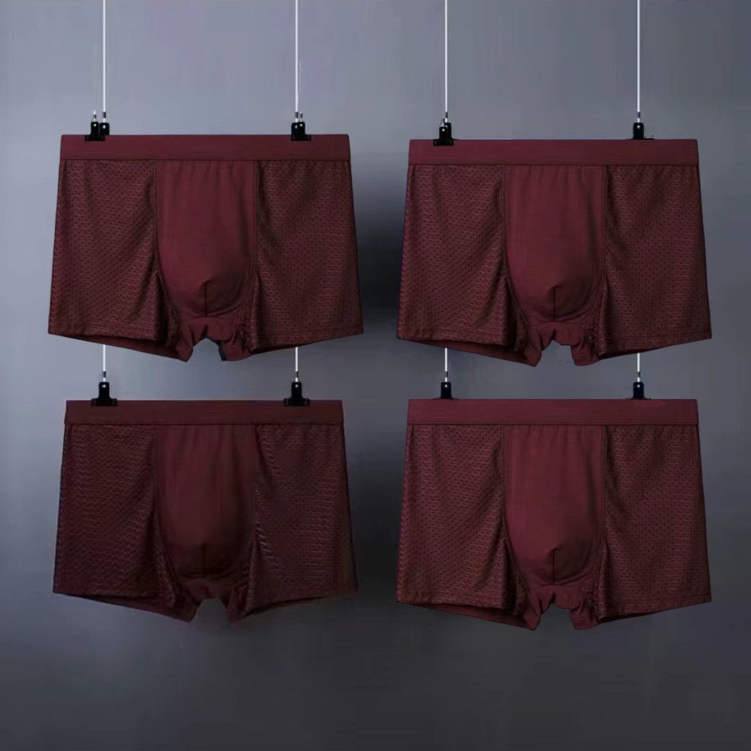 버건디 메쉬 아이스 실크 속옷 남성 플러스 지방 플러스 사이즈 지방 200kg 복서 복서 느슨한 보라색스토어 가기