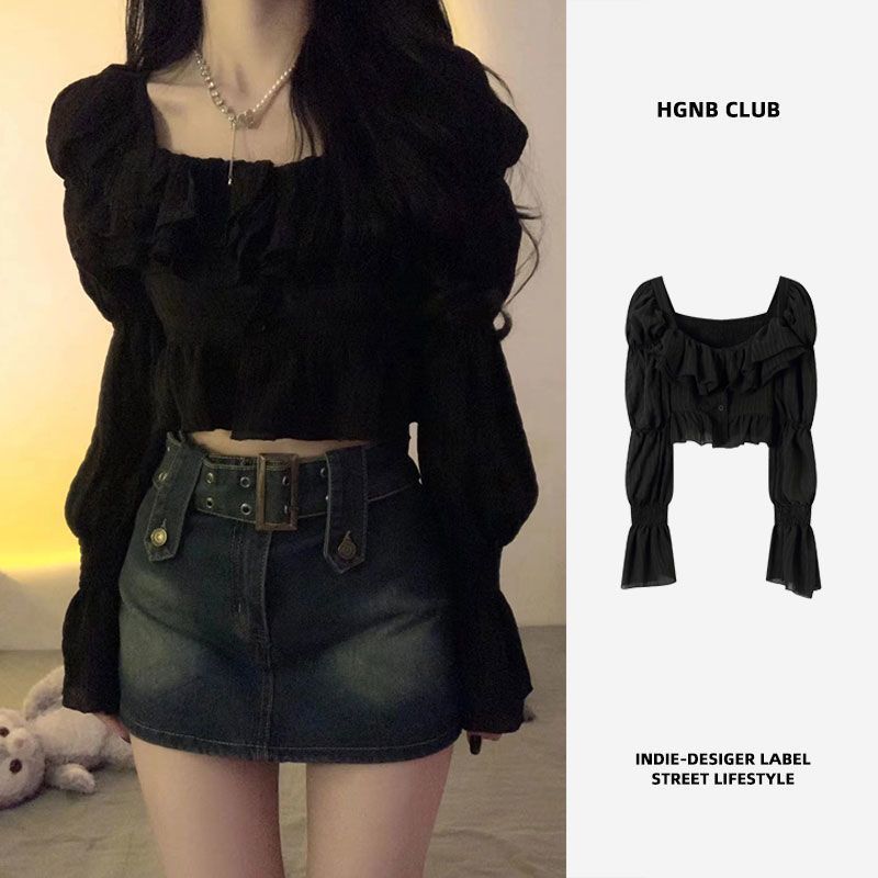 봄 2024 새로운 광장 칼라 짧은 순수한 욕망 세트 여성의 한국식 주름진 카트리지 세련된 핫 걸탑스토어 가기