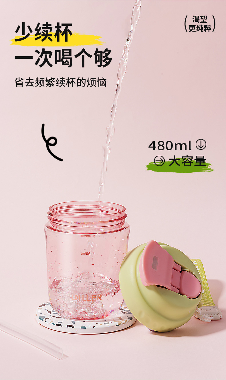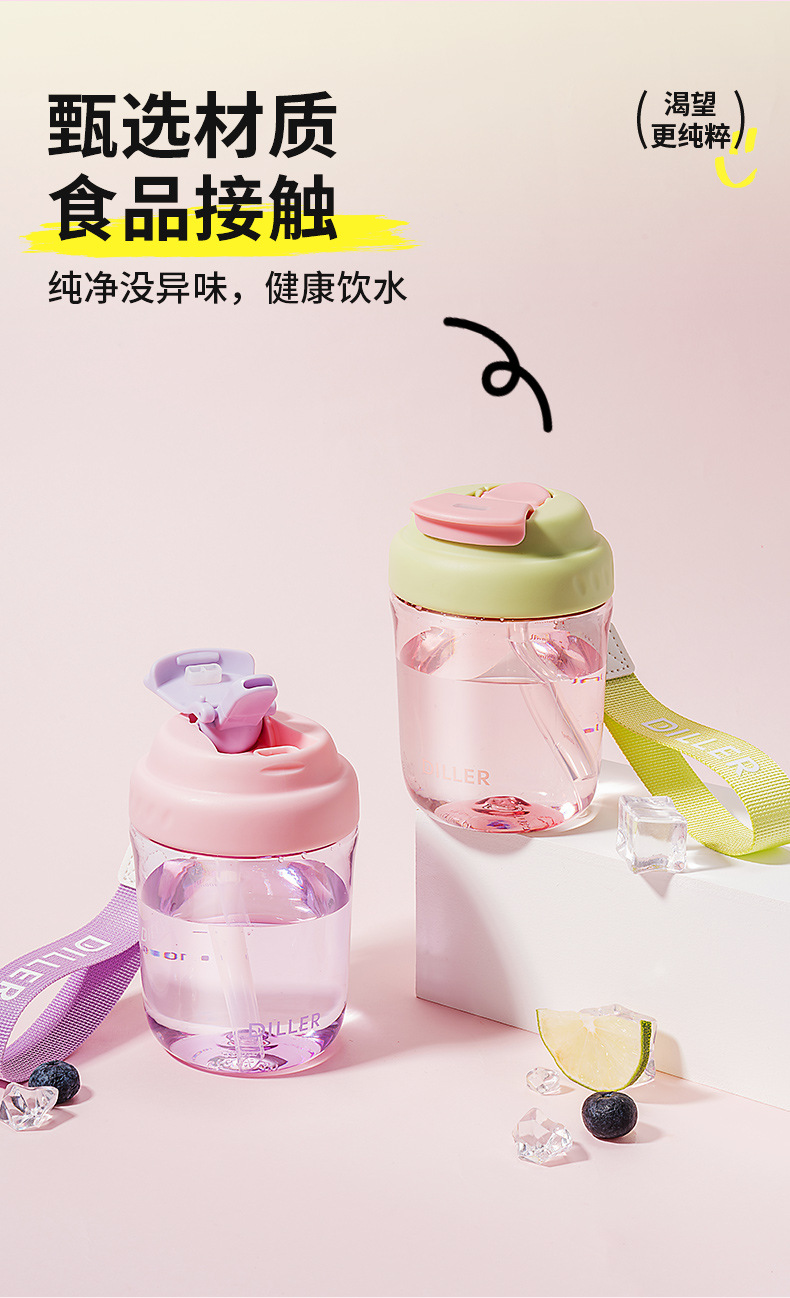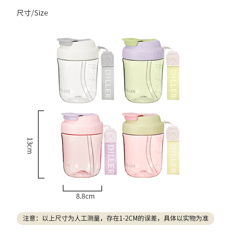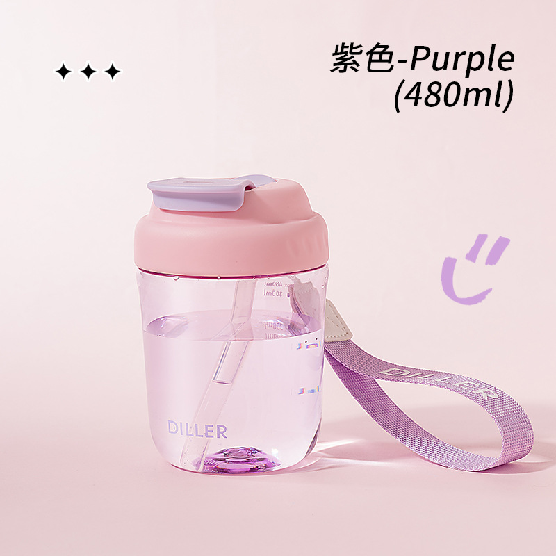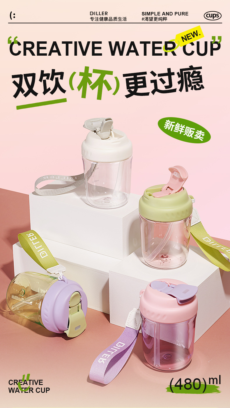 DILLER 점프 카드 편리한 컵 높은 모양의 투명 플라스틱 더블 마시는 컵 휴대용 학생 커플 물 컵 커피 컵