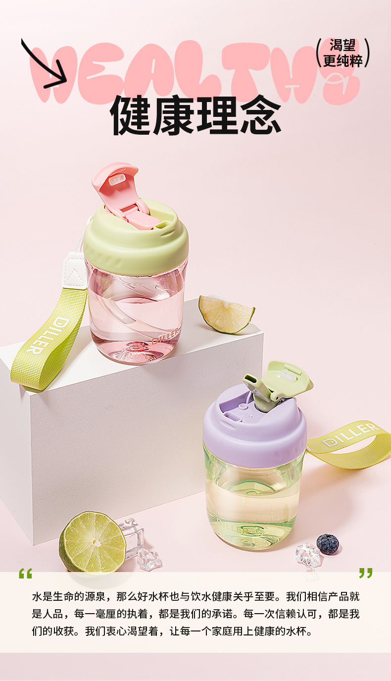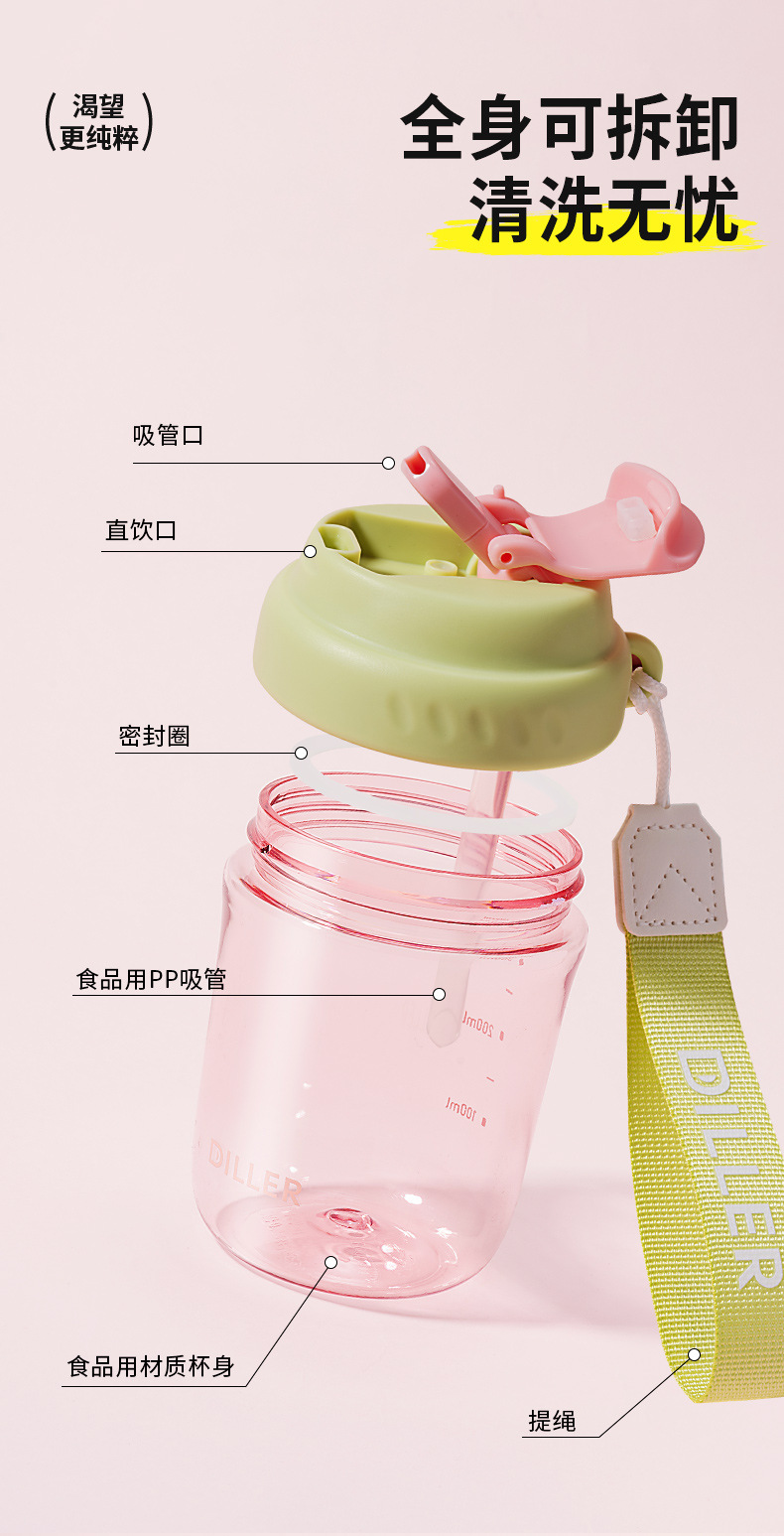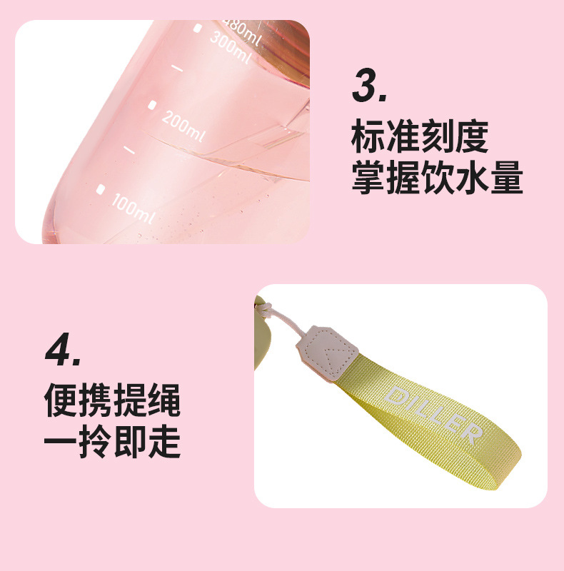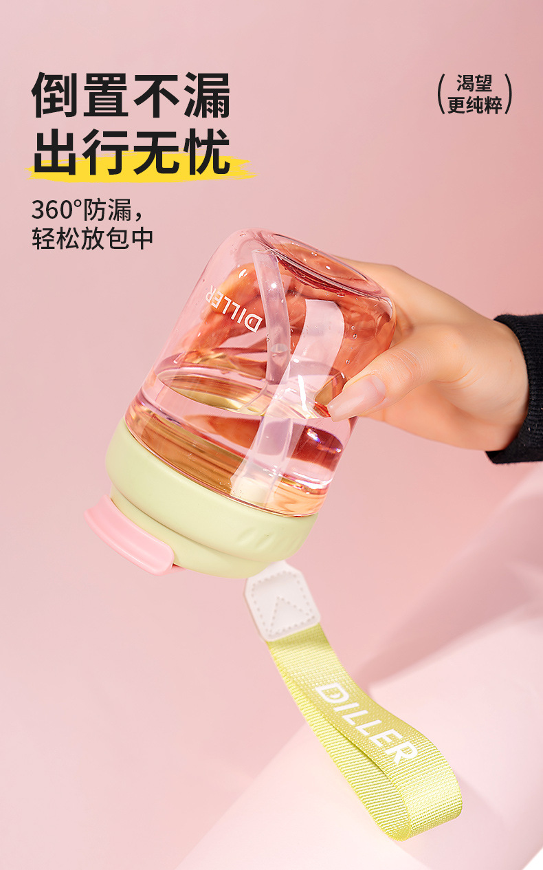 DILLER 점프 카드 편리한 컵 높은 모양의 투명 플라스틱 더블 마시는 컵 휴대용 학생 커플 물 컵 커피 컵