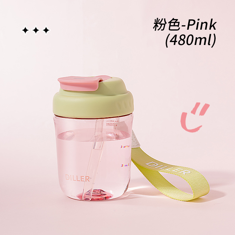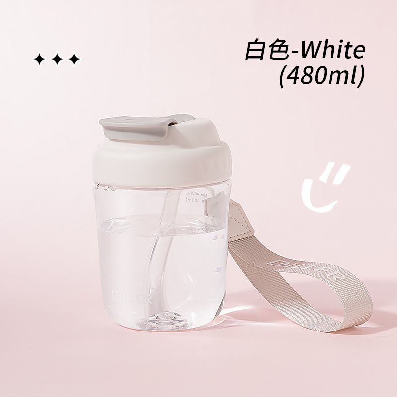 DILLER 점프 카드 편리한 컵 높은 모양의 투명 플라스틱 더블 마시는 컵 휴대용 학생 커플 물 컵 커피 컵스토어 가기