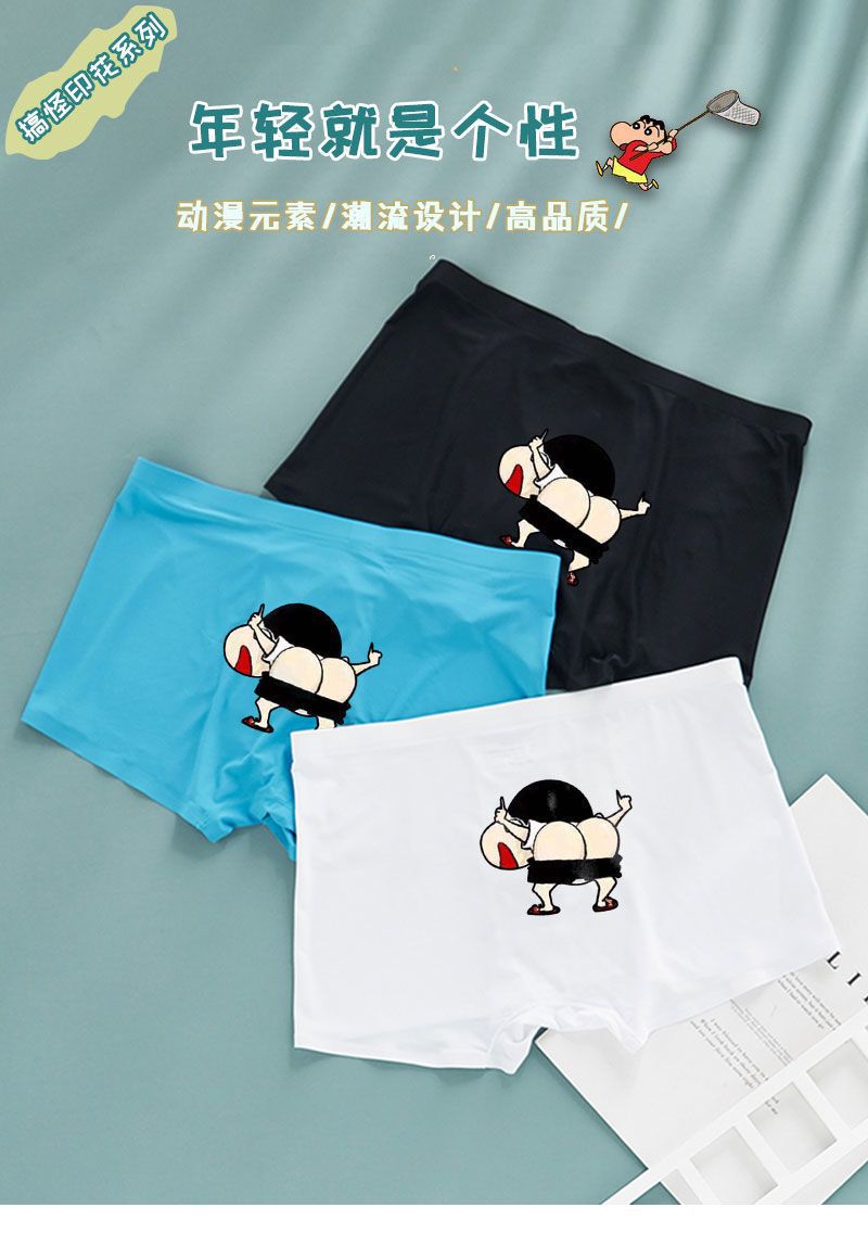 재미있는 남자 속옷 남자 아이스 실크 성인 복서 재미있는 만화 귀여운 섹시한 소년 4 코너 맞춤형 트렌디 속옷스토어 가기