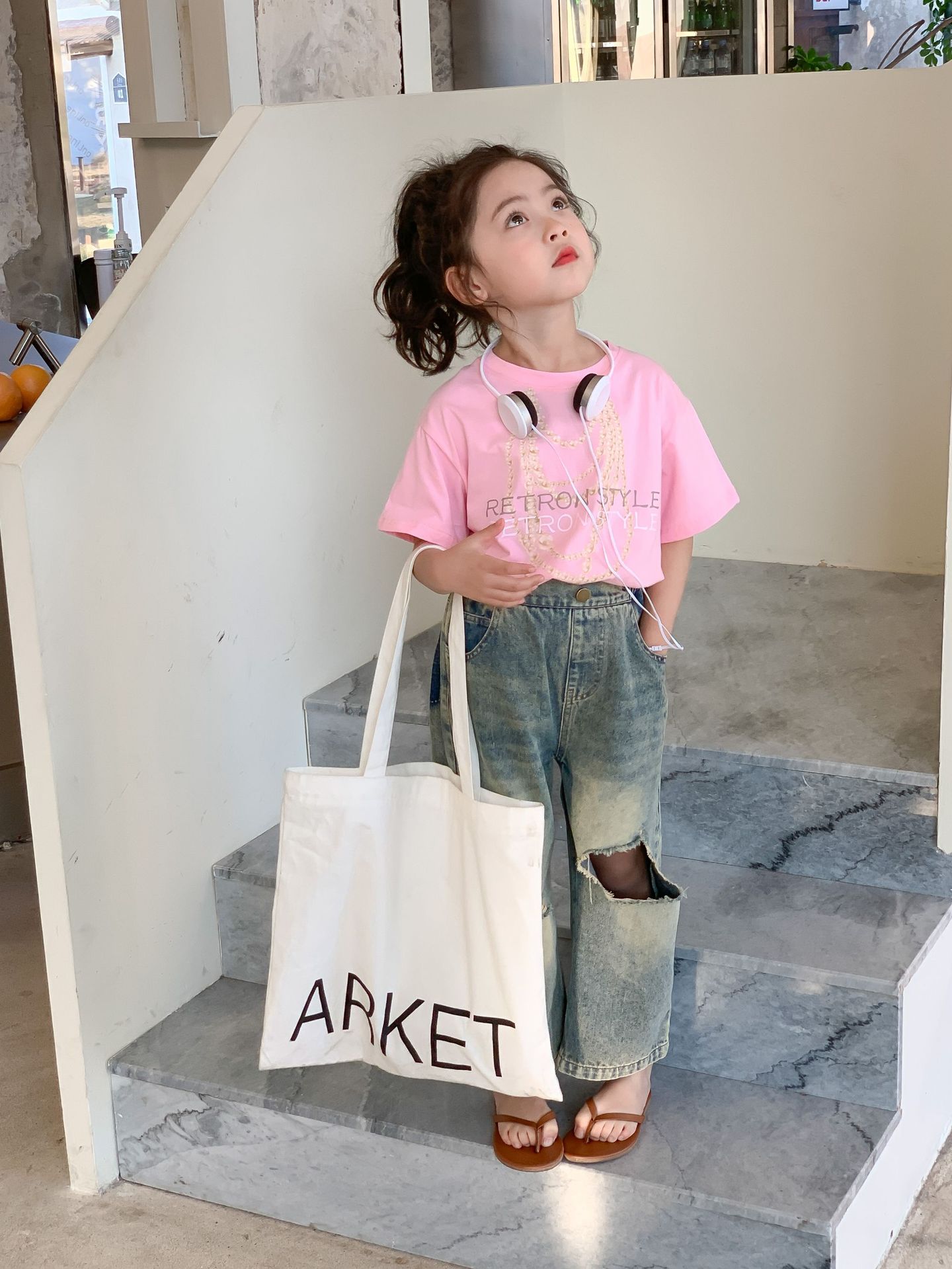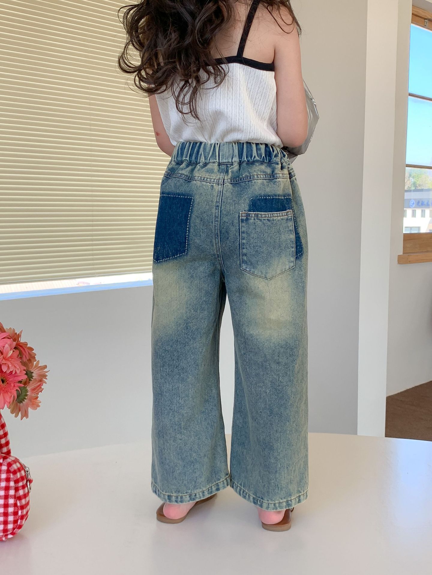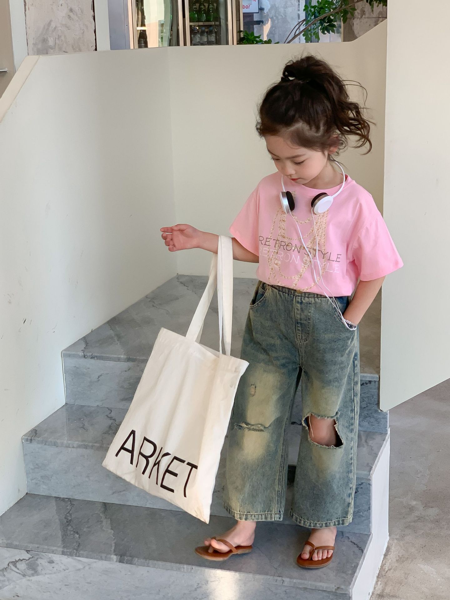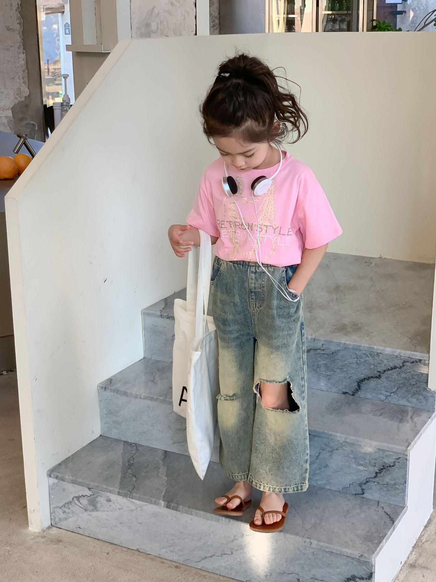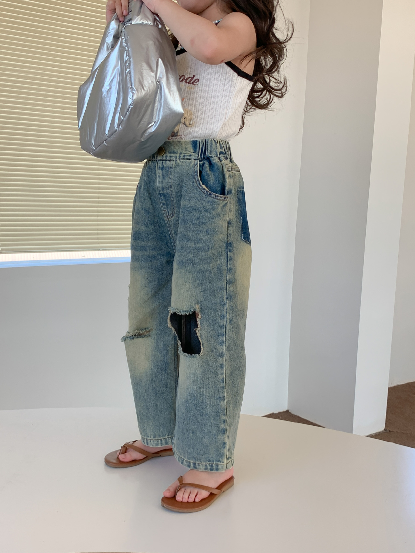 여아 찢어진 레트로 청바지 아동복 2025 여름 유행 스타일의 큰 여아용 팬츠, 어린이 바지스토어 가기