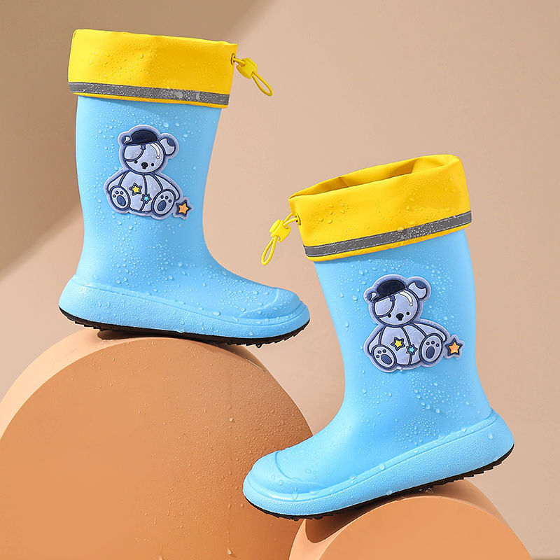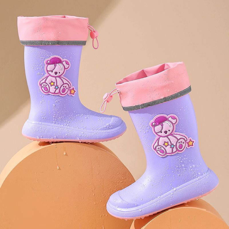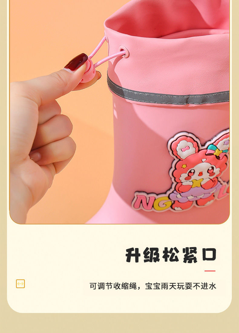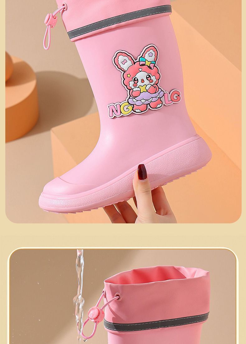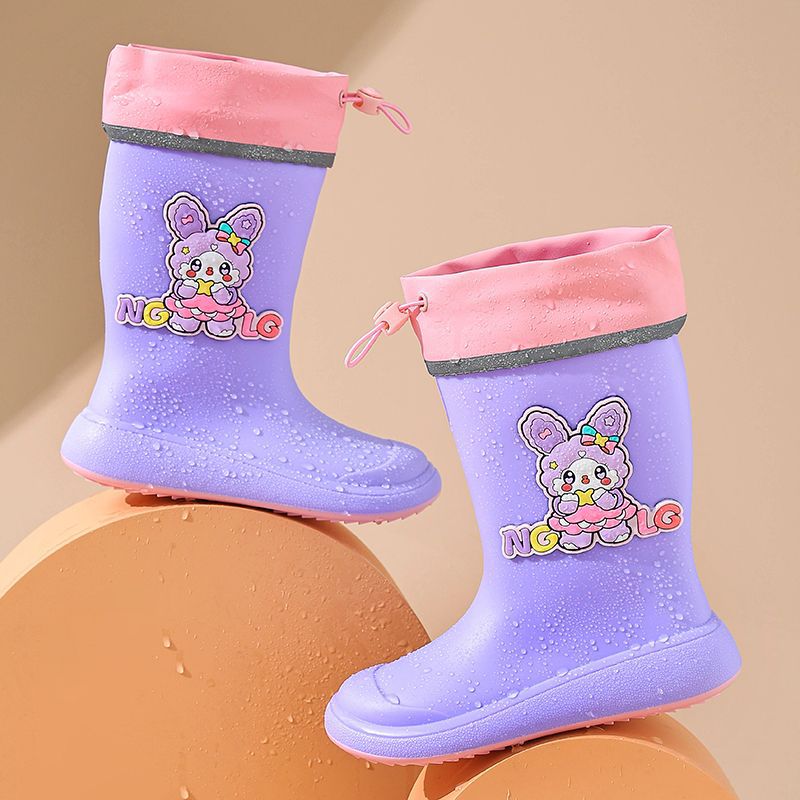 어린이 장화 소녀 소년 학생 물 신발 방수 학교 고무 신발 미끄럼 방지 중간 및 큰 어린이 높은 튜브 드로 스트링 장화