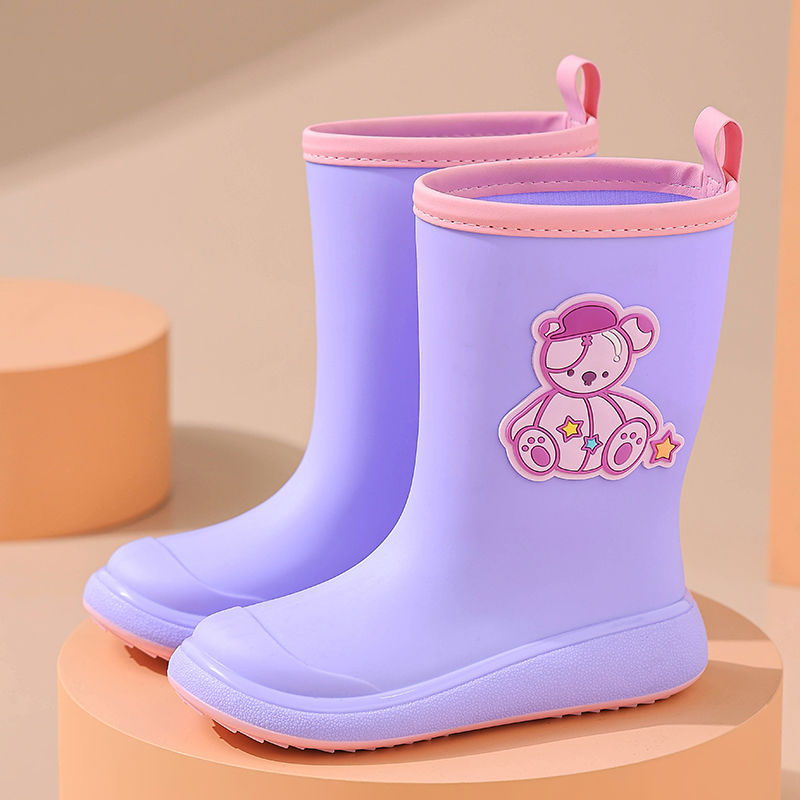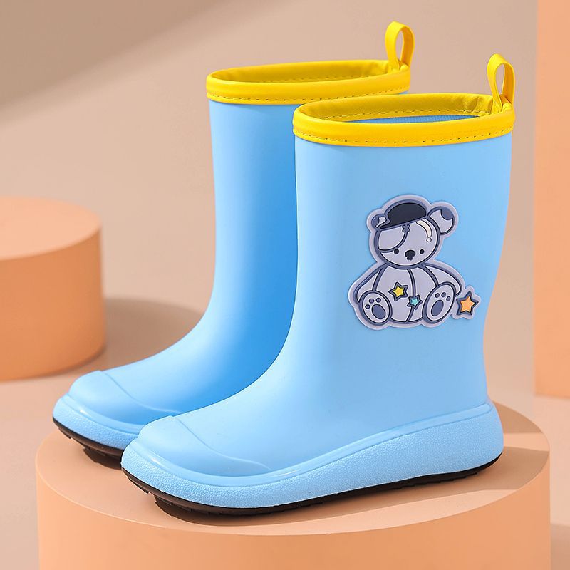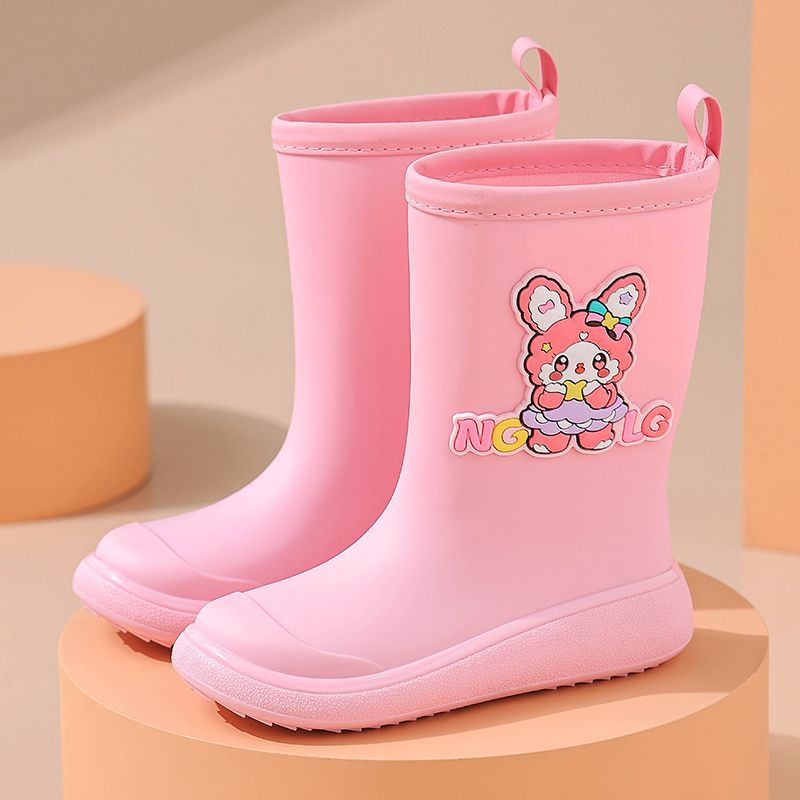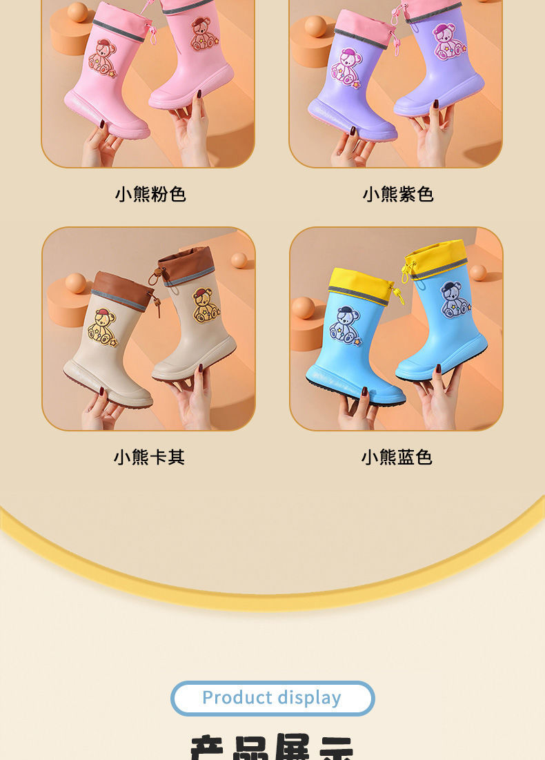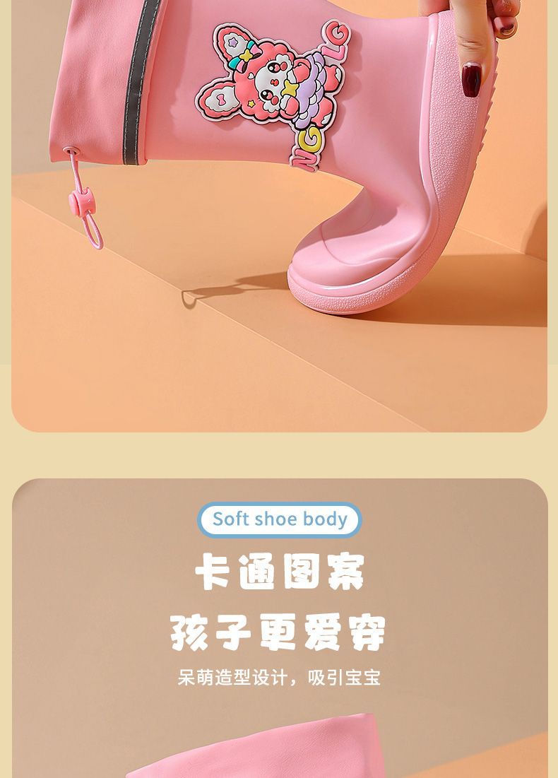 어린이 장화 소녀 소년 학생 물 신발 방수 학교 고무 신발 미끄럼 방지 중간 및 큰 어린이 높은 튜브 드로 스트링 장화