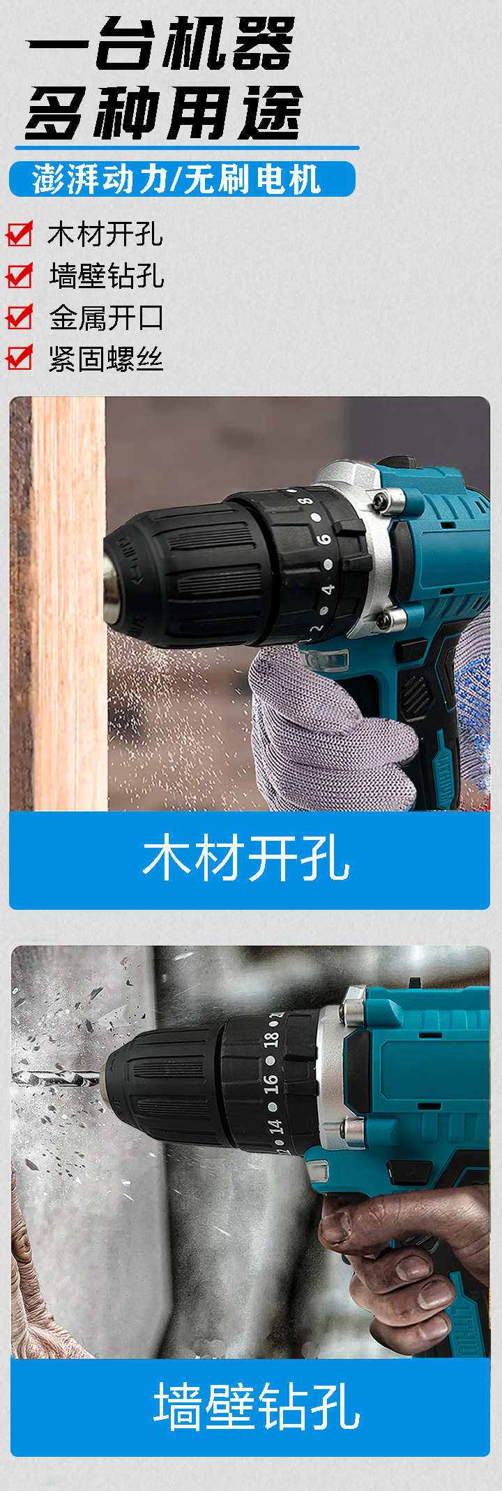 충격 Mutian 순수 구리 산업 브러시리스 리튬 전기 드릴 금속 척 손 드릴 가정용 다기능 드라이버