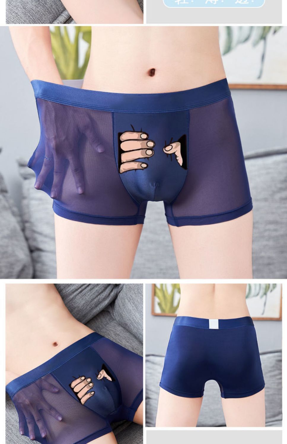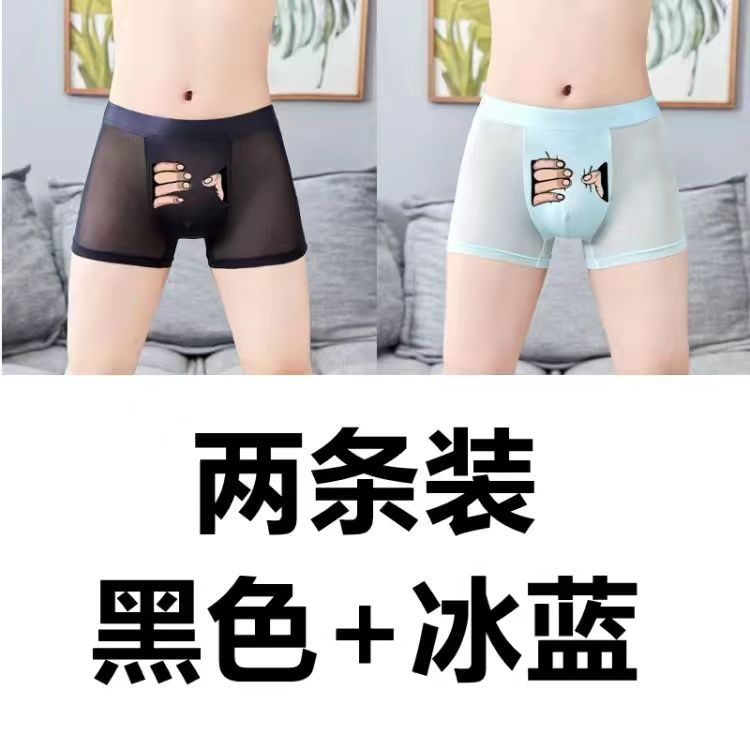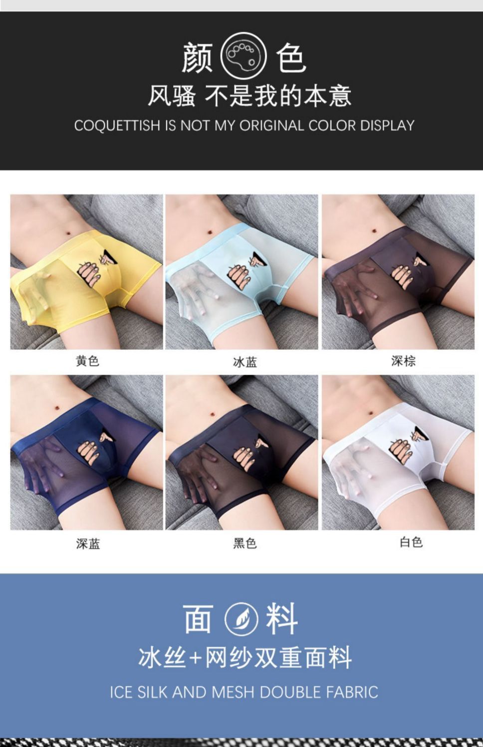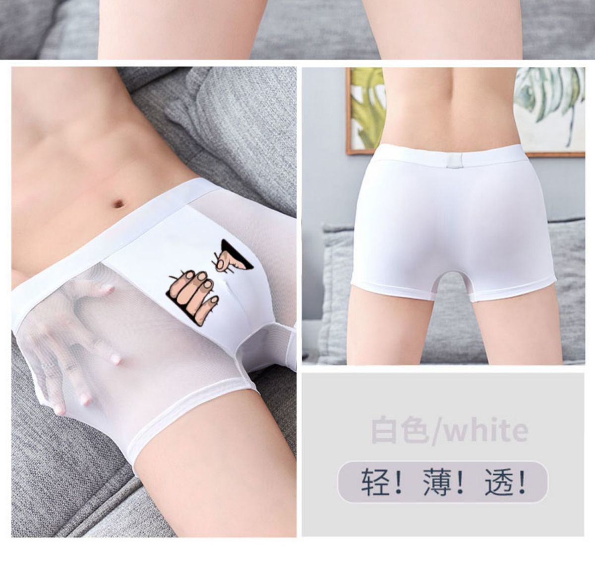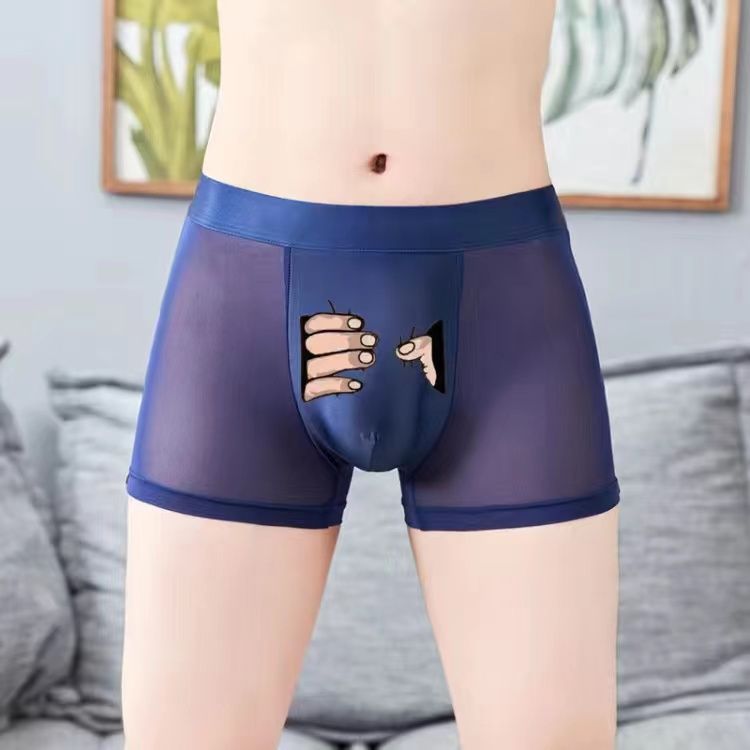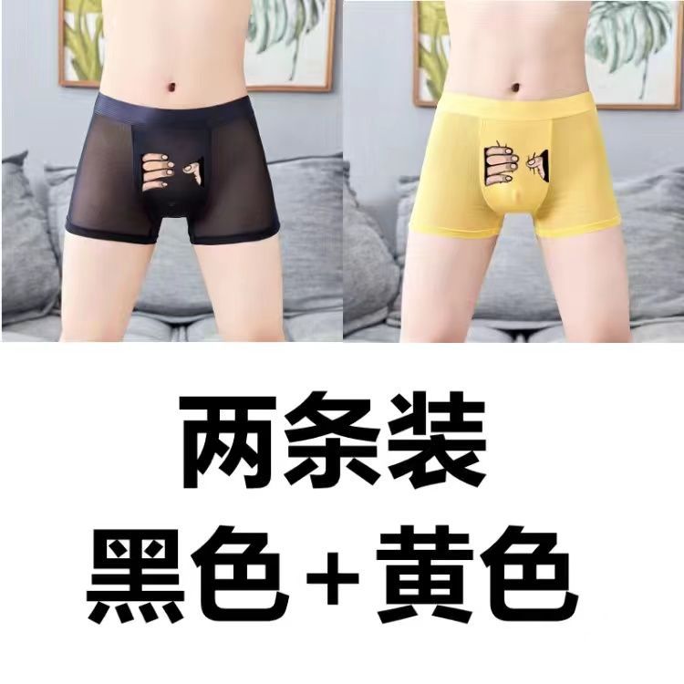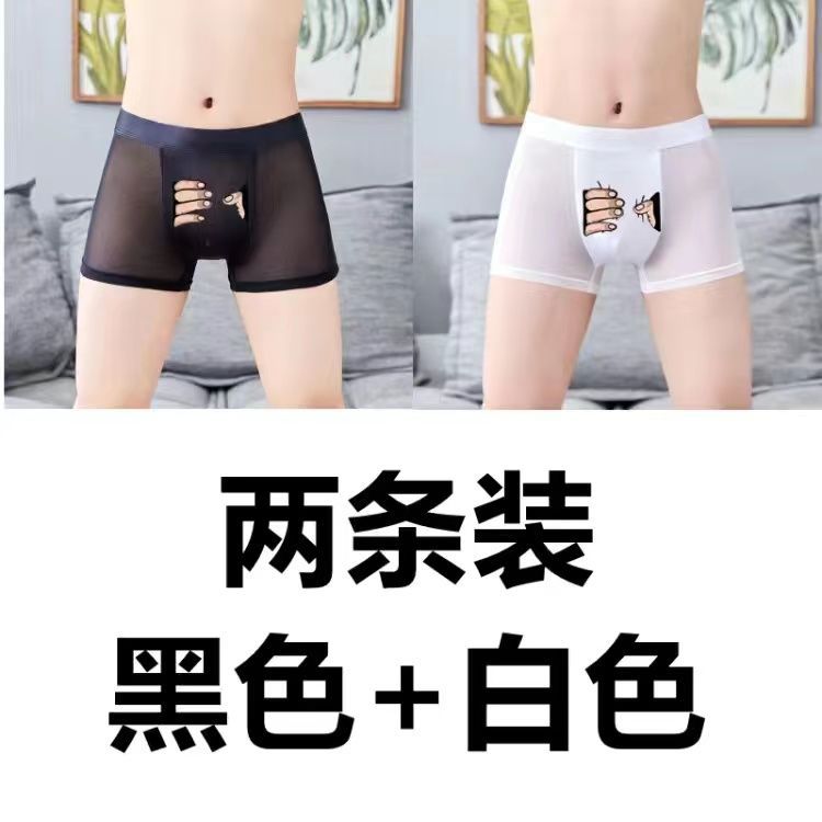 아이스 실크 속옷 남자의 여름 얇은 남자의 네 코너 메쉬 투명한 통기성 창조적 인 재미 있는 성격 남자 바지 여름