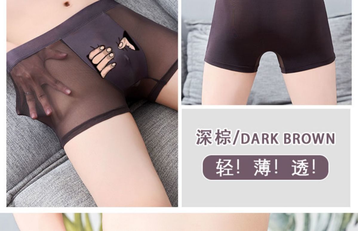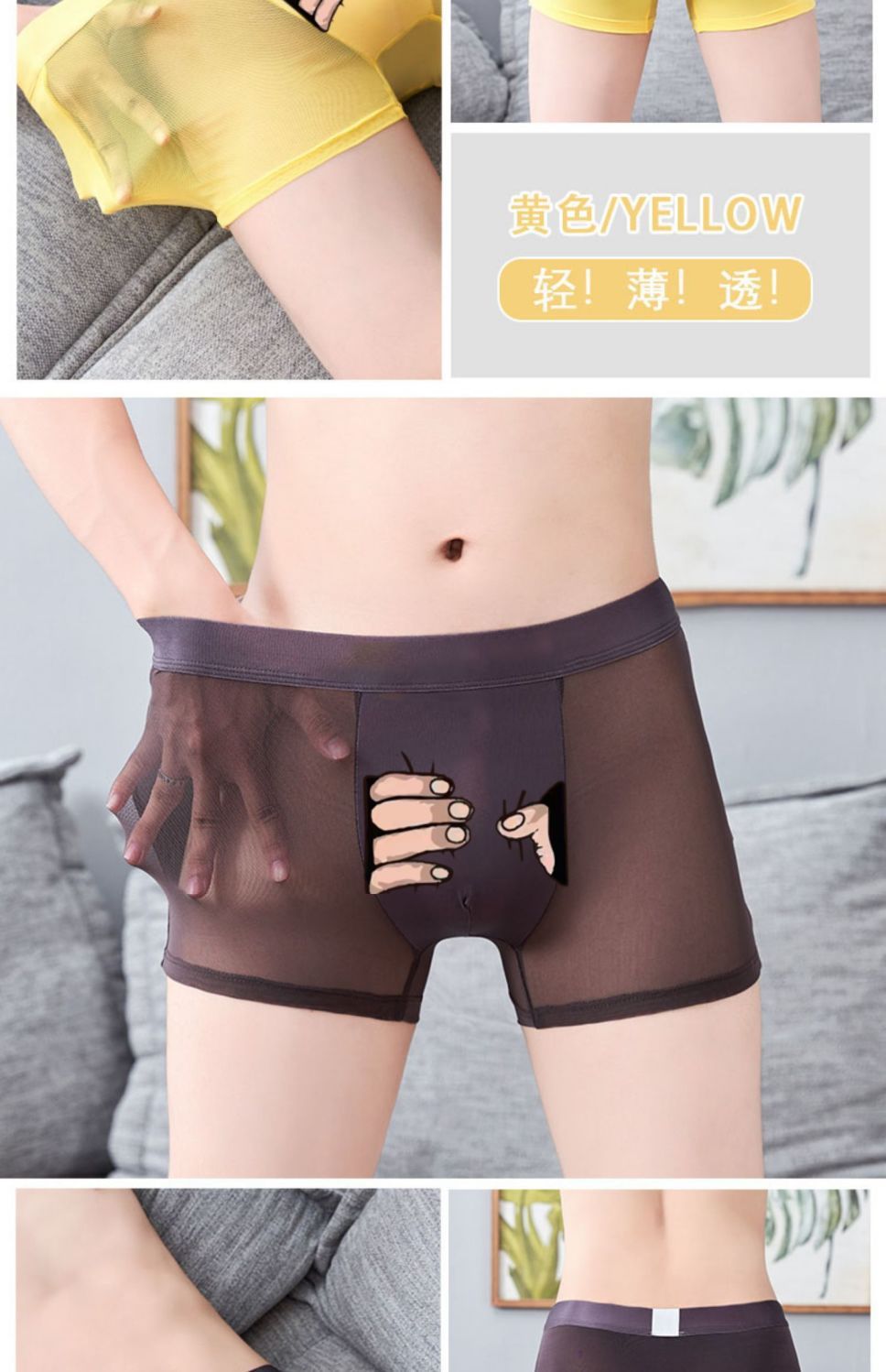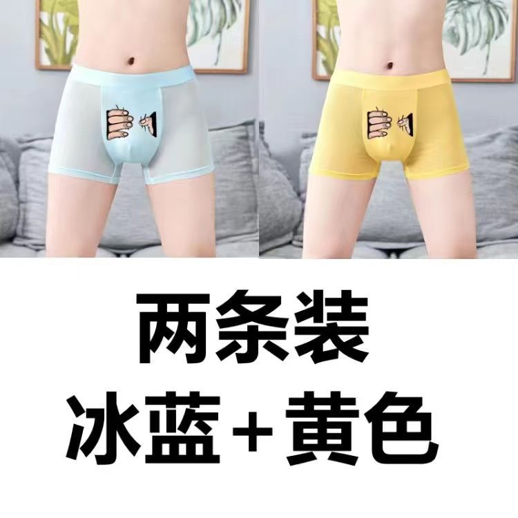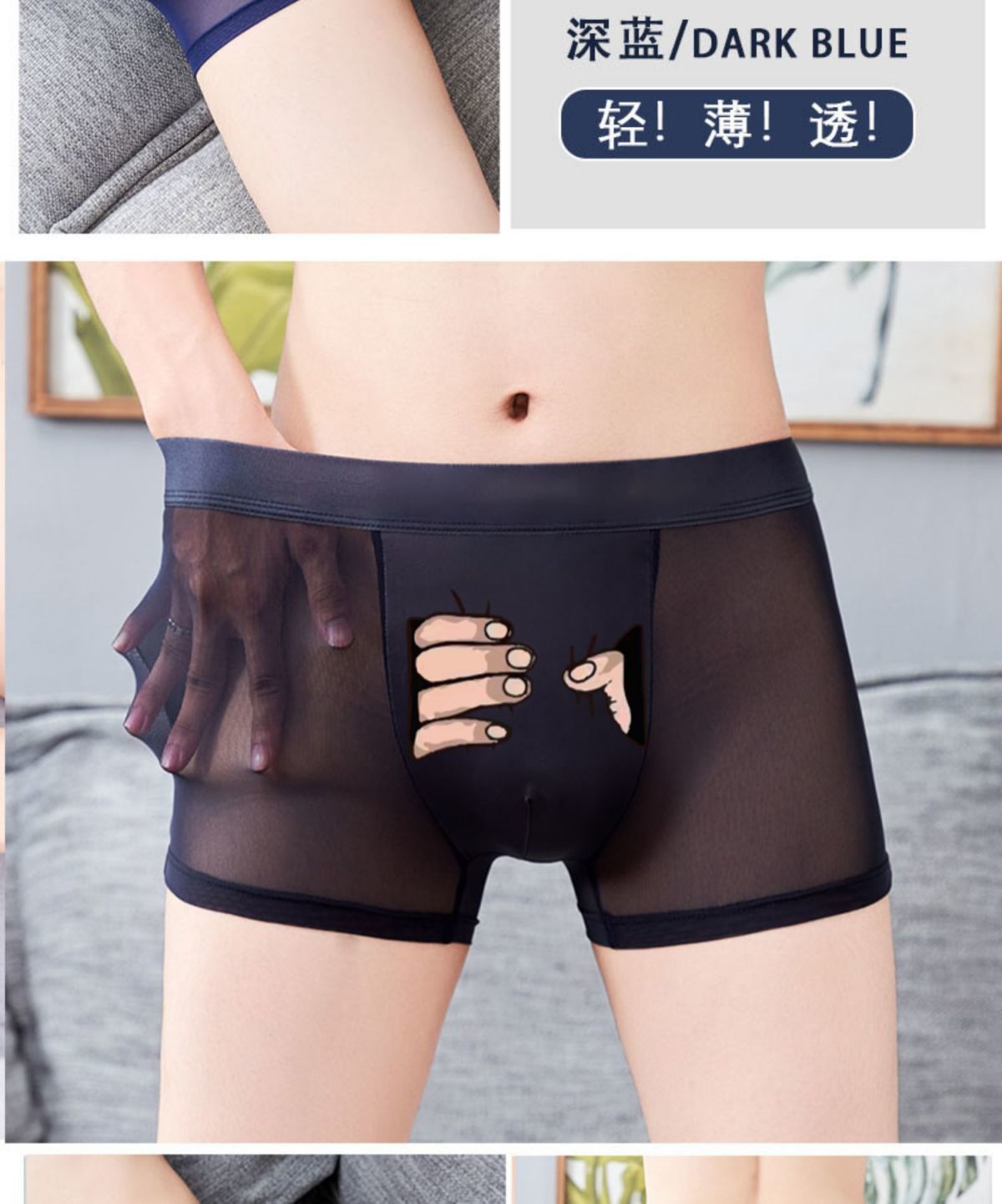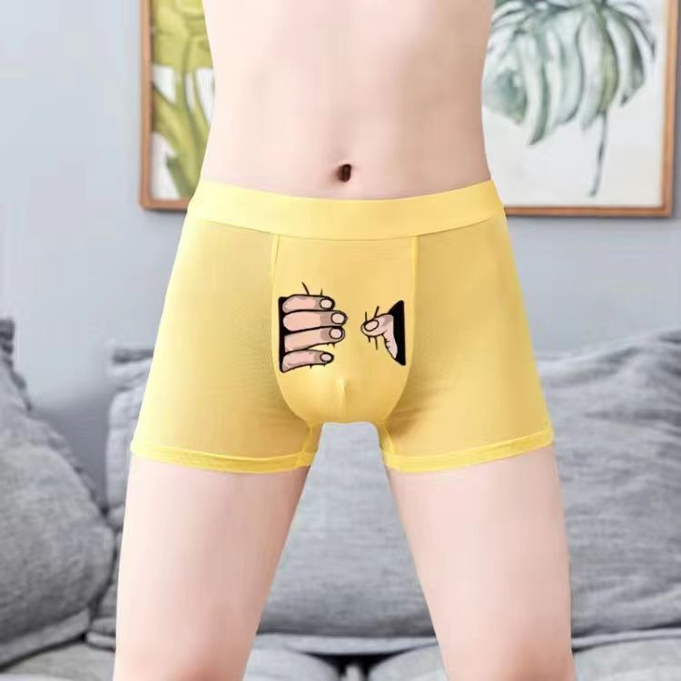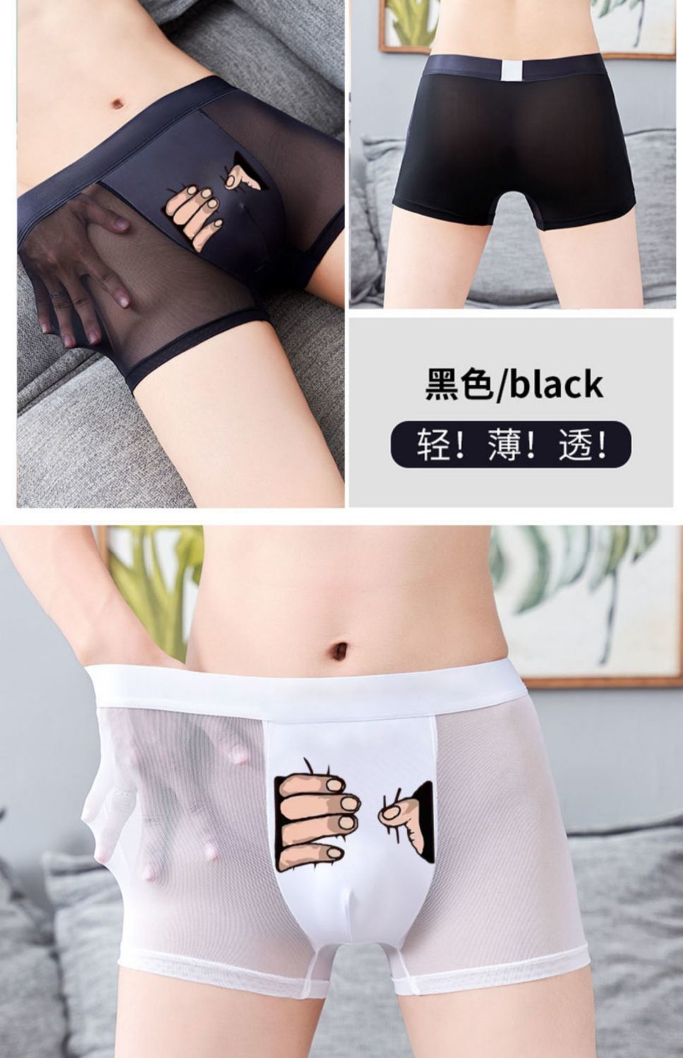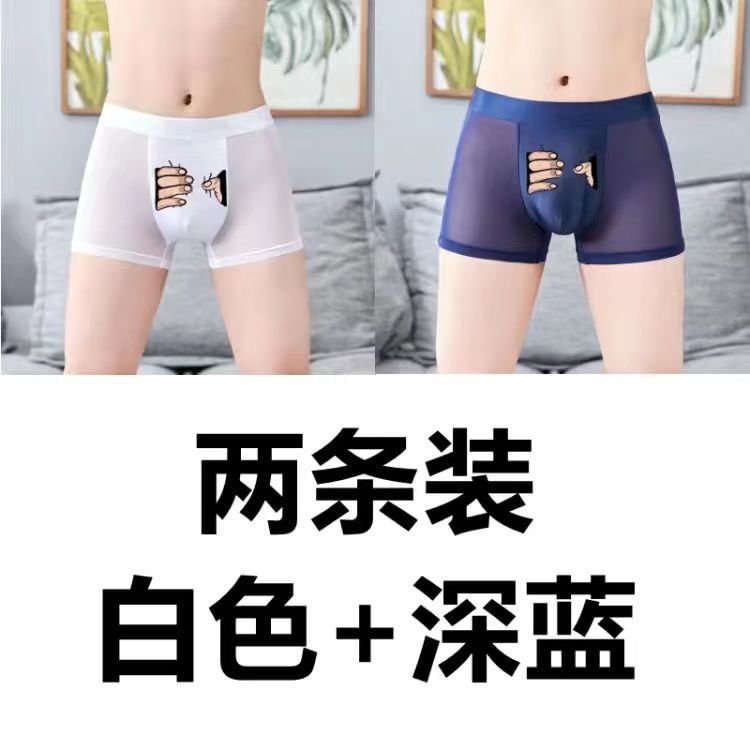 아이스 실크 속옷 남자의 여름 얇은 남자의 네 코너 메쉬 투명한 통기성 창조적 인 재미 있는 성격 남자 바지 여름