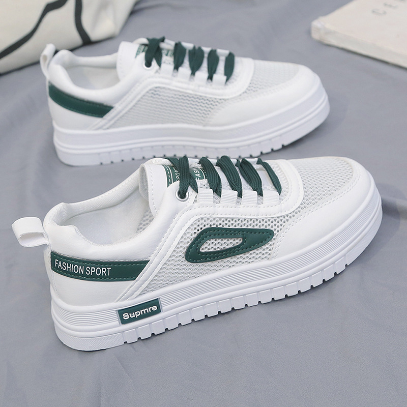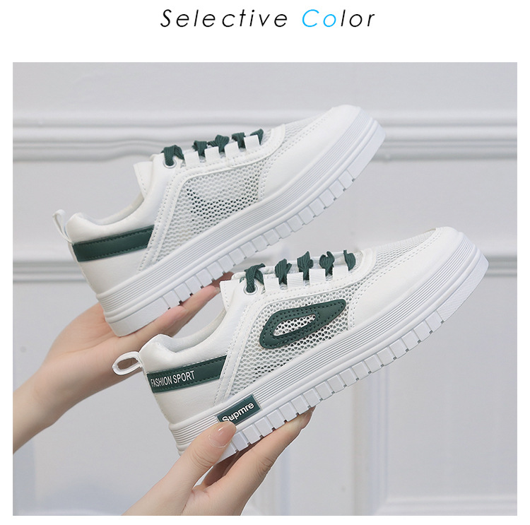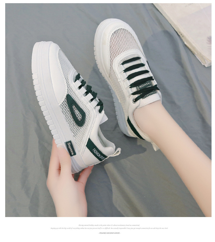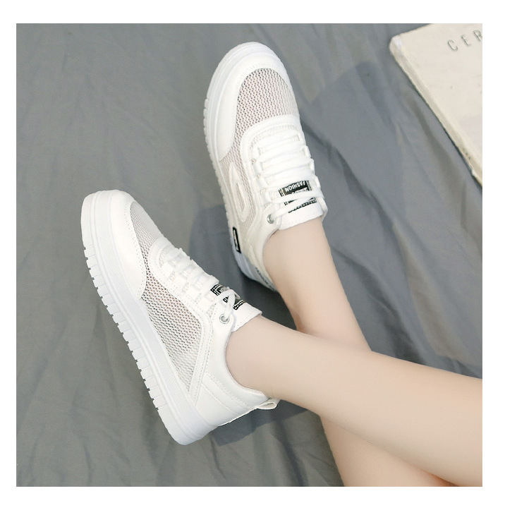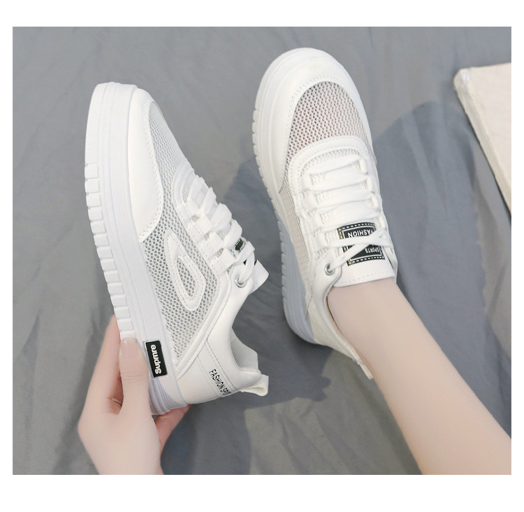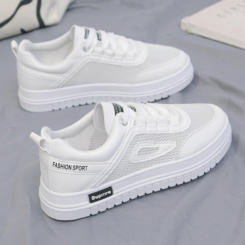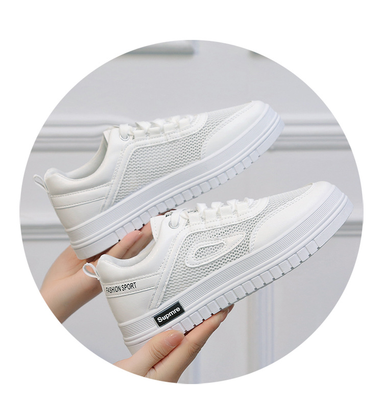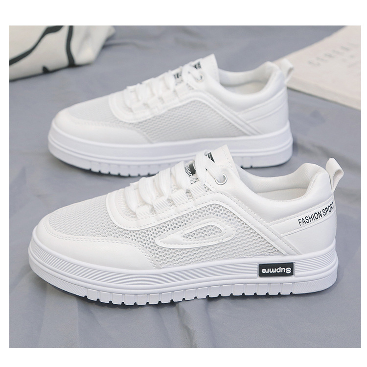 화이트 신발 여성의 2025 봄과 가을 새로운 올 매치 웨스턴 스타일 메쉬 유행 신발 학생 플랫 캐주얼 신발 통기성 운동화스토어 가기