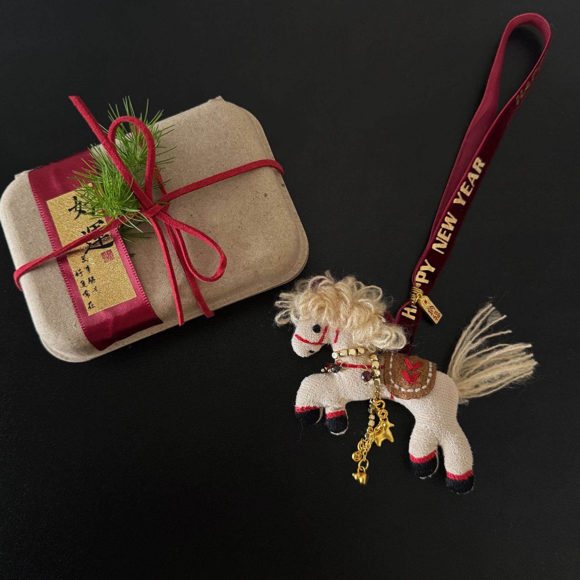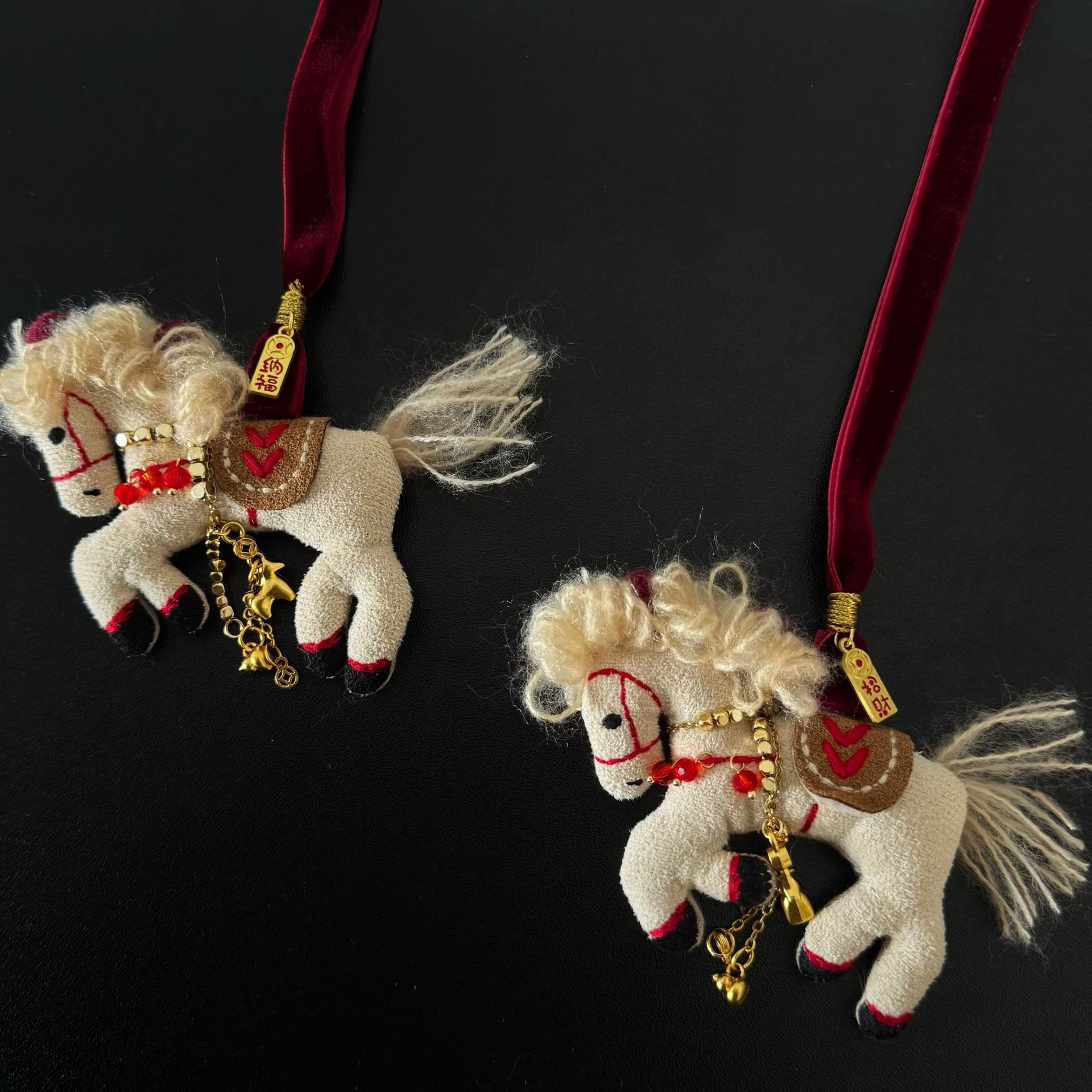 새해 와인 레드 패브릭 조랑말 마스코트 장식 자동차 장식품 가방 열쇠고리 장식품스토어 가기