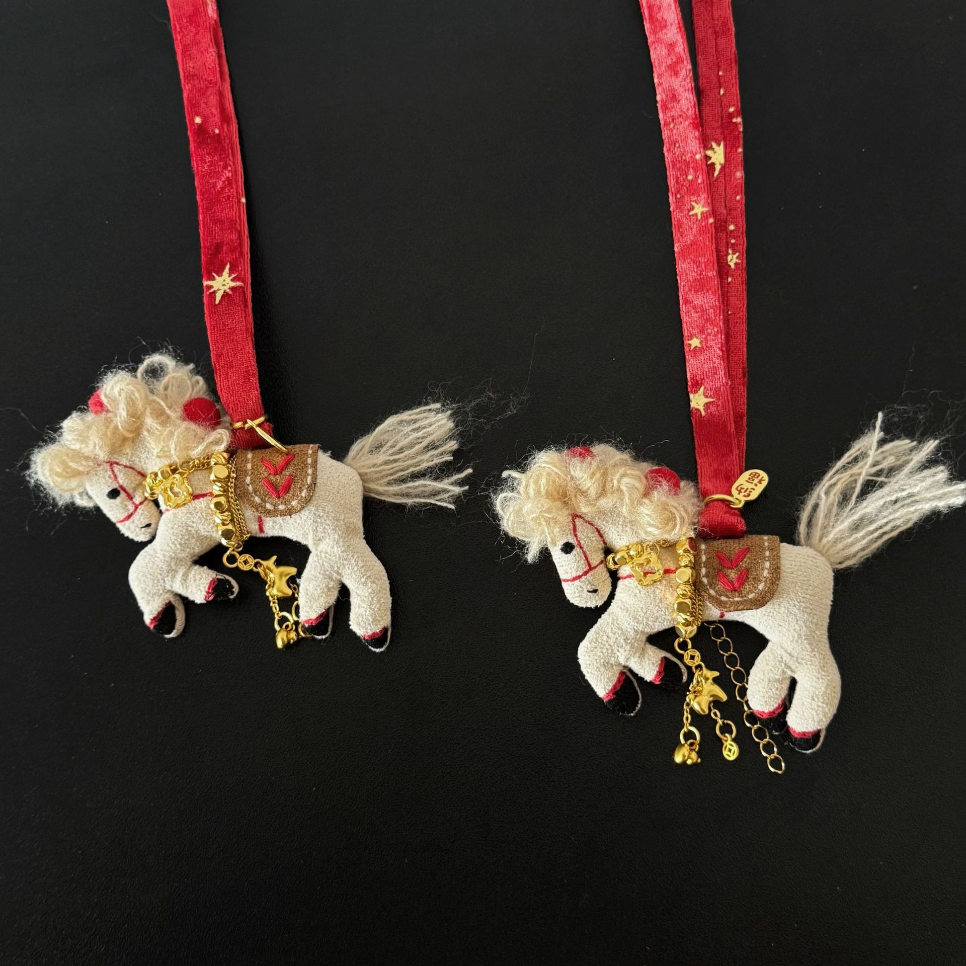 새해 와인 레드 패브릭 조랑말 마스코트 장식 자동차 장식품 가방 열쇠고리 장식품