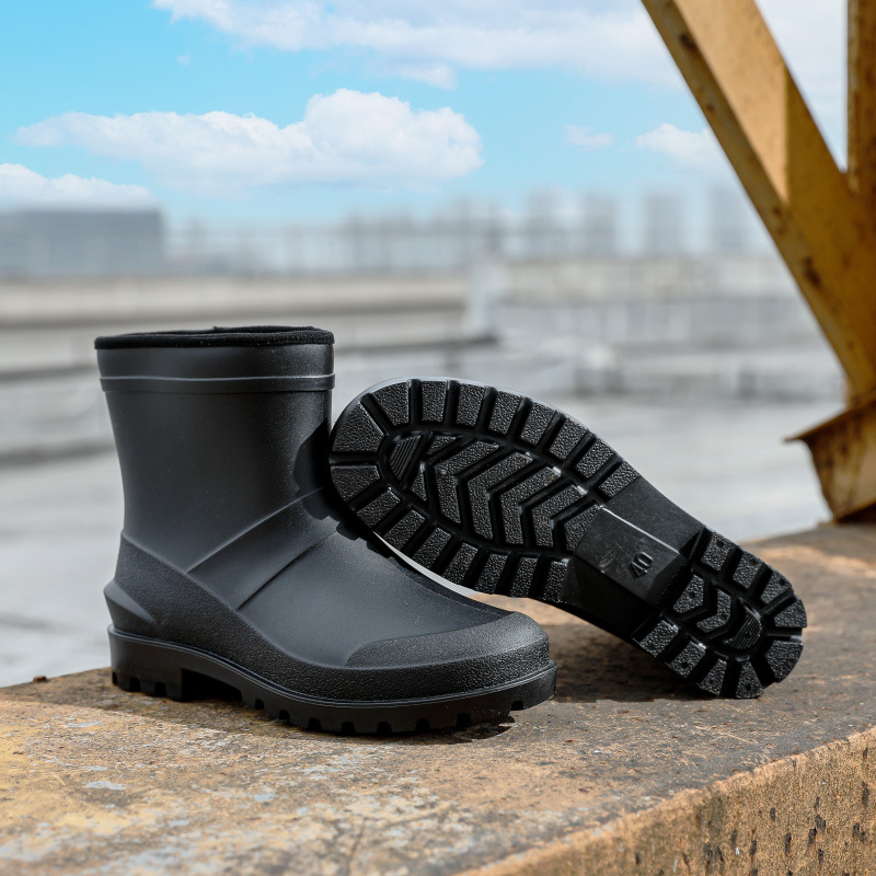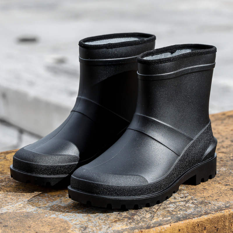 남성용 짧은 장화 야외 방수 장화 PVC 일회용 성형 고무 신발 로우 탑 미끄럼 방지 워터 신발 플라스틱 커버 신발스토어 가기