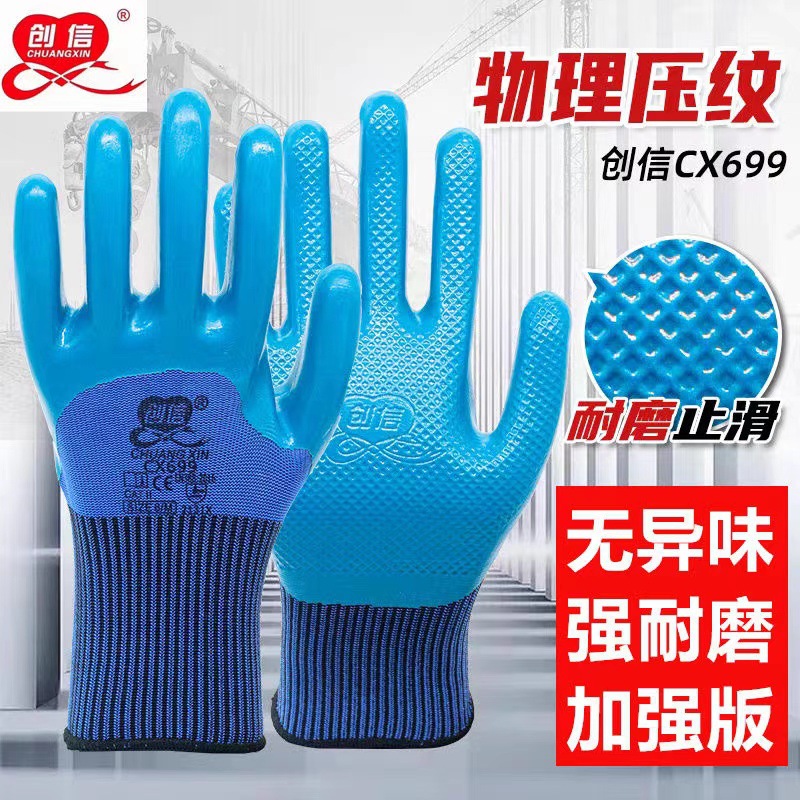 Chuangxin CX699 노동 보호 장갑 내마모성 작업 보호 담그는 근로자 작업 라텍스 양각 미끄럼 방지 남성스토어 가기