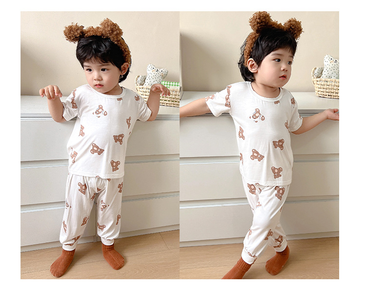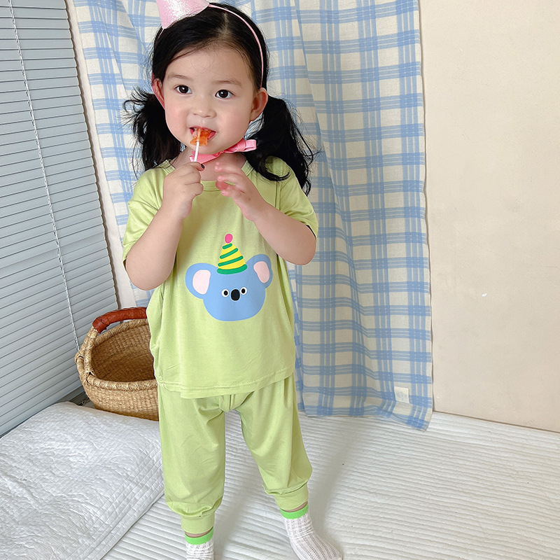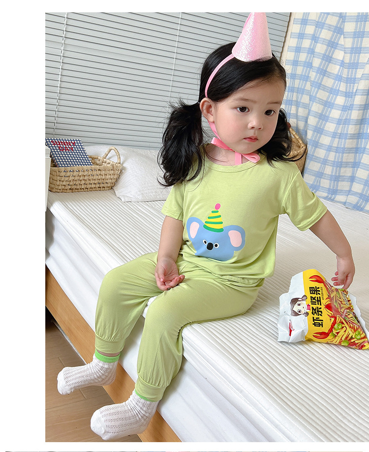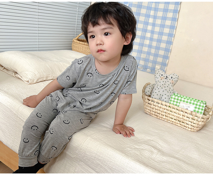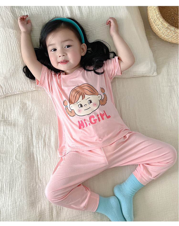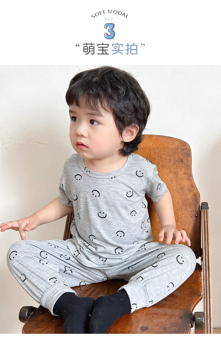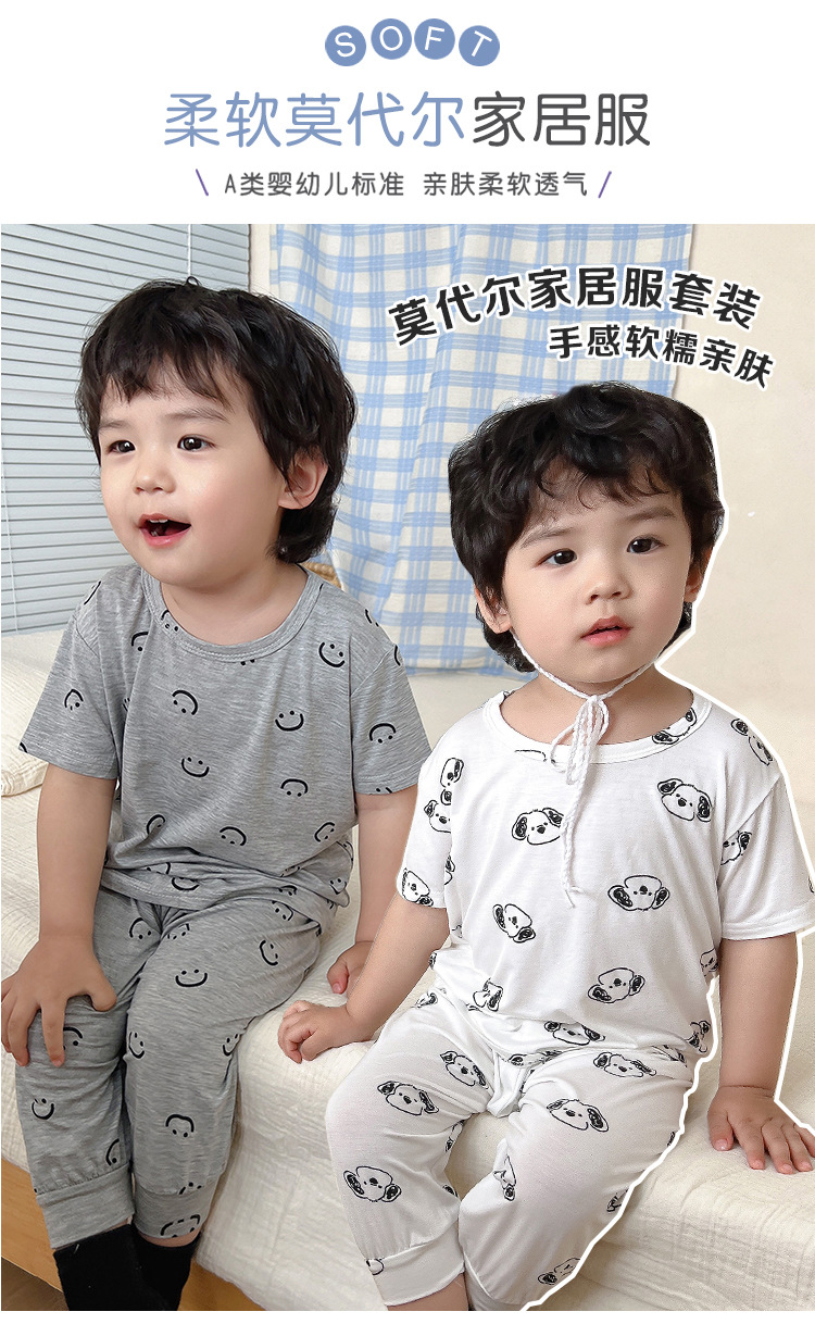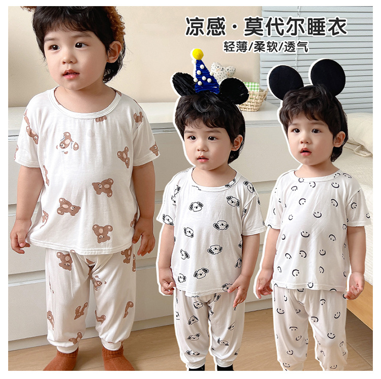 어린이 잠옷 모달 봄 가을 가정 세트 여름 반팔 에어컨 옷 어린 소년 소녀 아기 기지