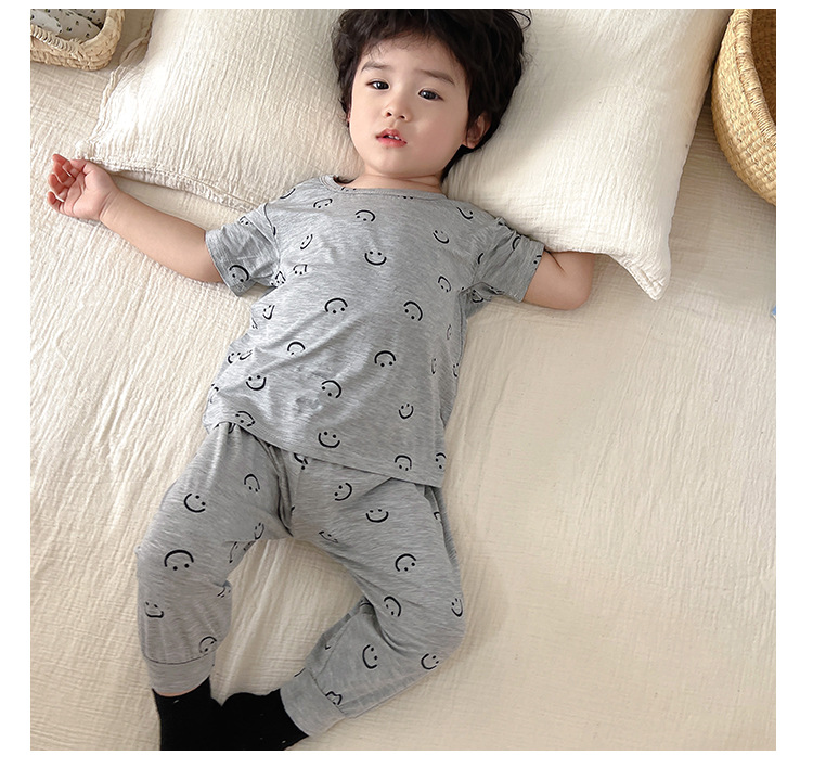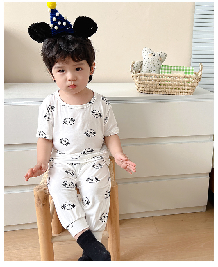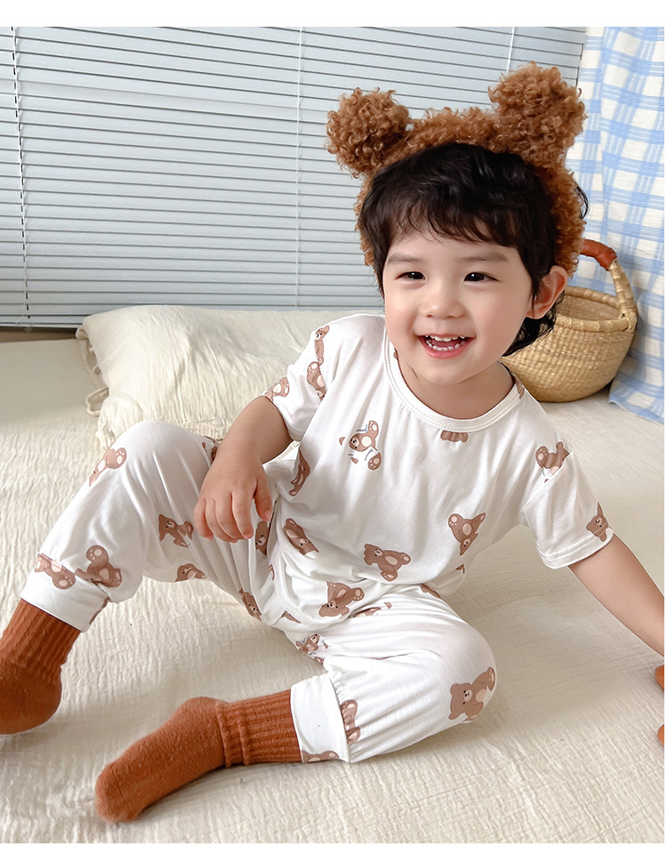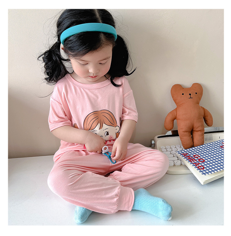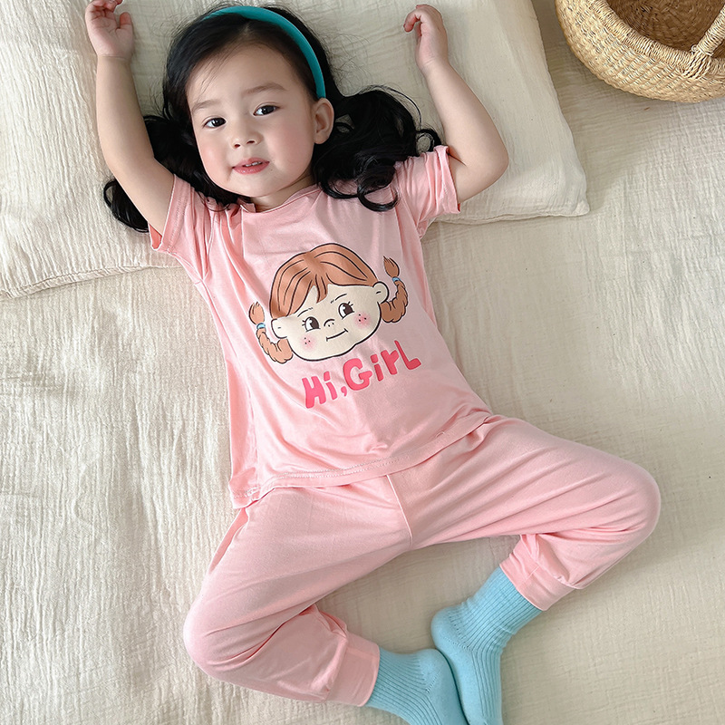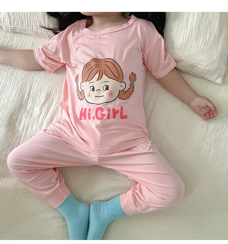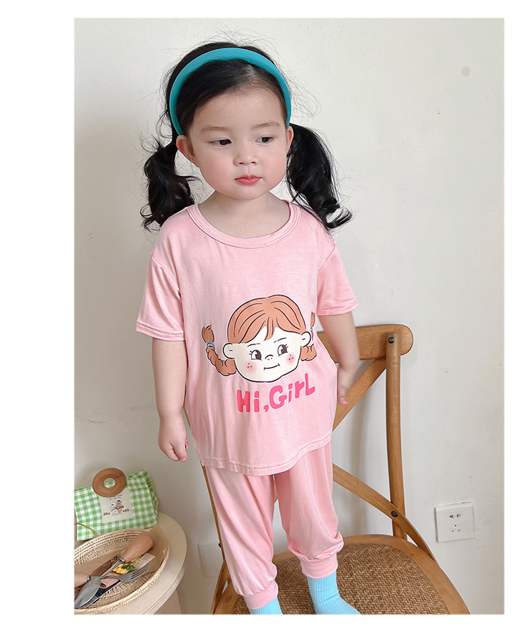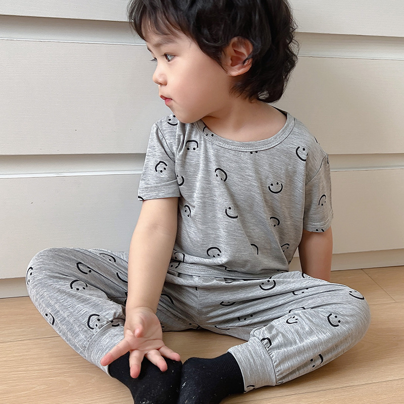 어린이 잠옷 모달 봄 가을 가정 세트 여름 반팔 에어컨 옷 어린 소년 소녀 아기 기지