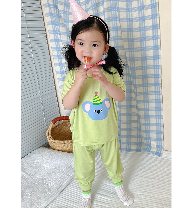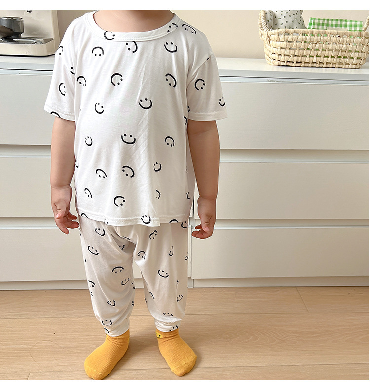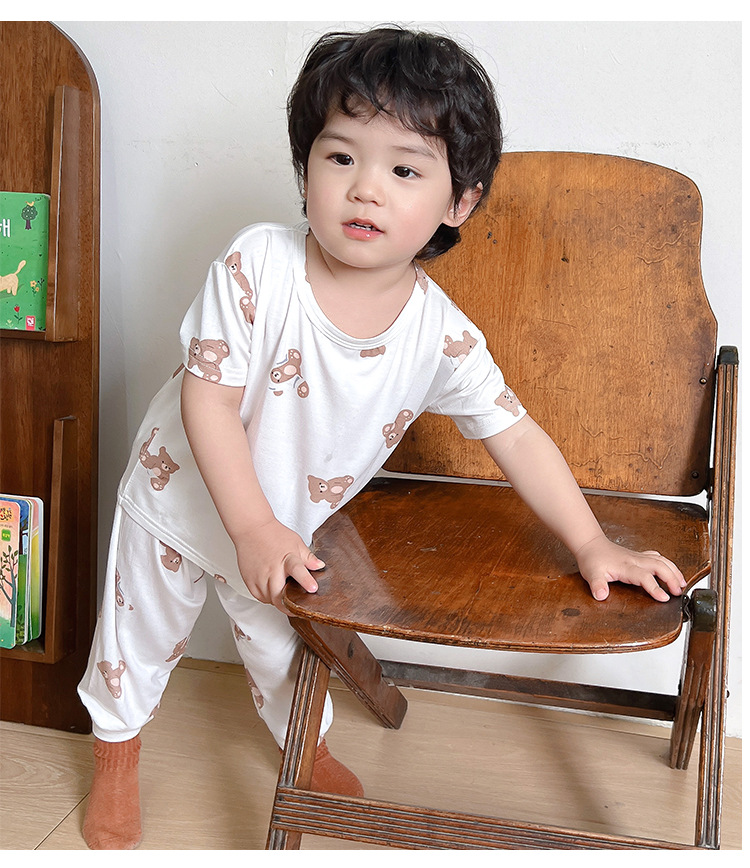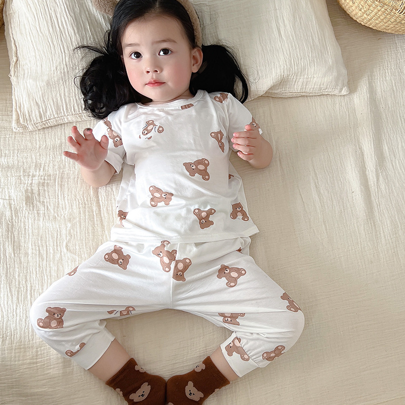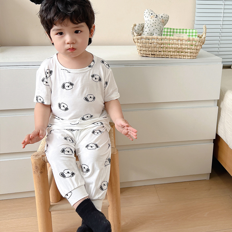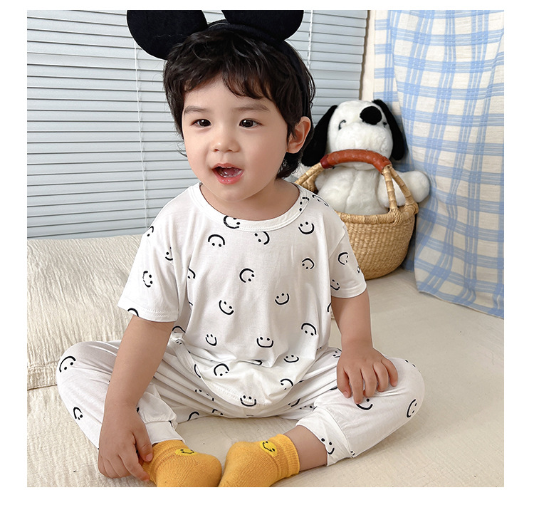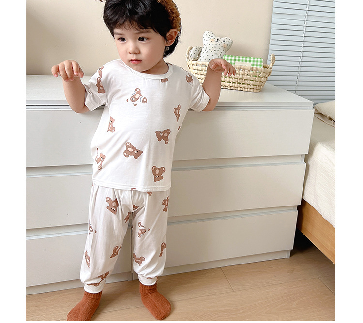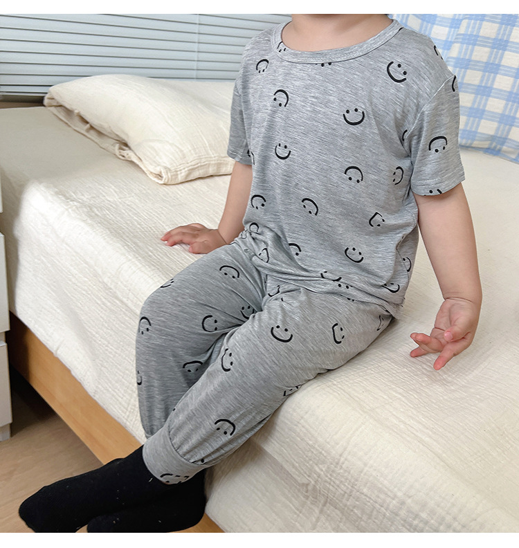 어린이 잠옷 모달 봄 가을 가정 세트 여름 반팔 에어컨 옷 어린 소년 소녀 아기 기지