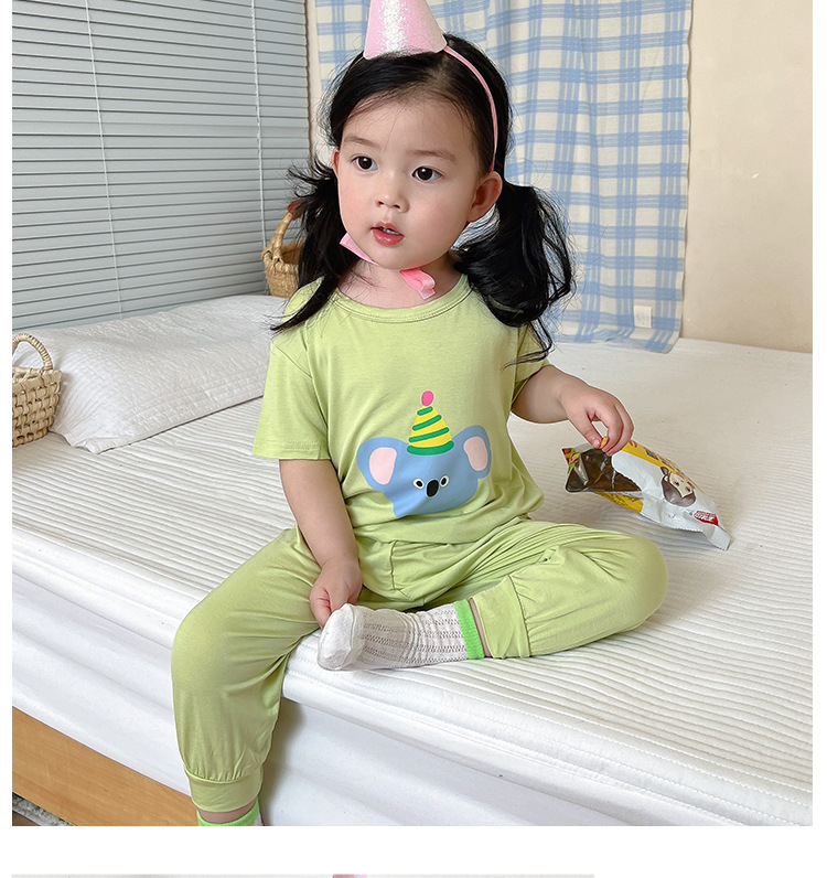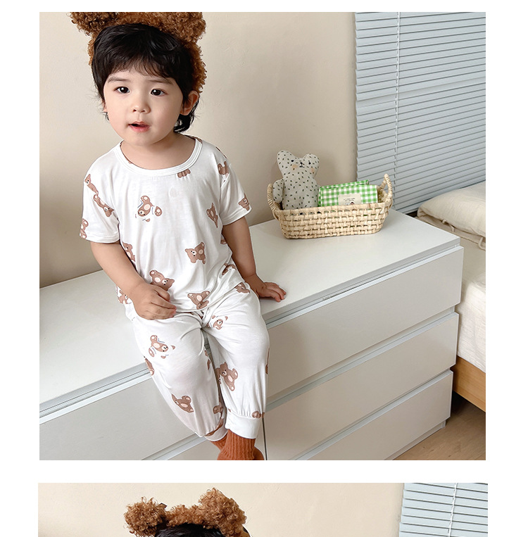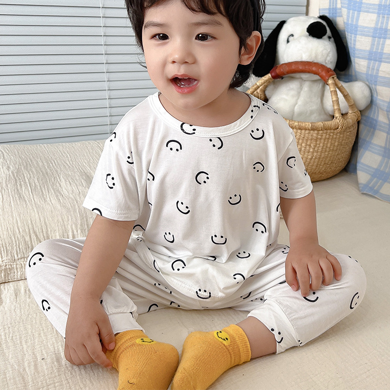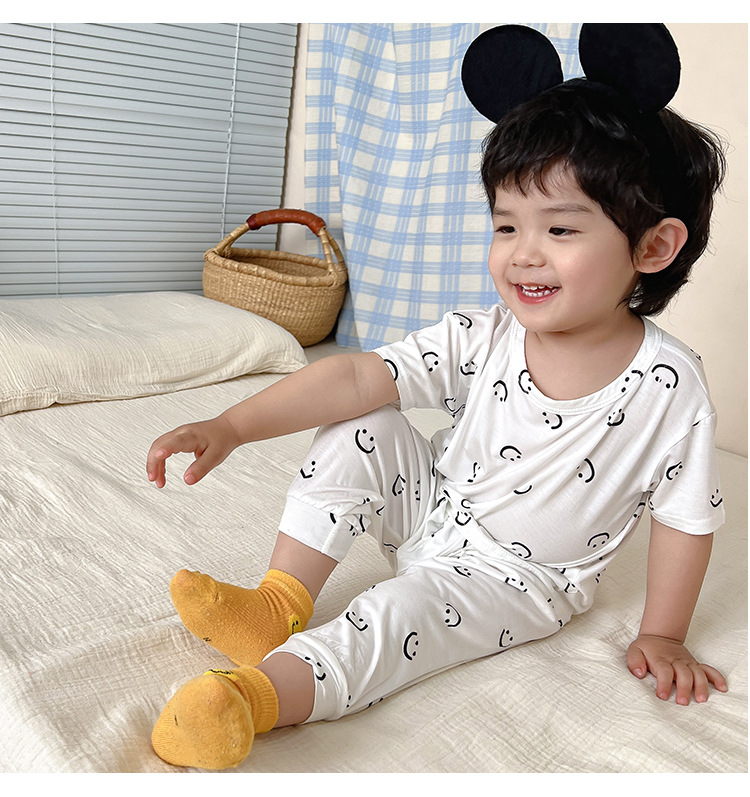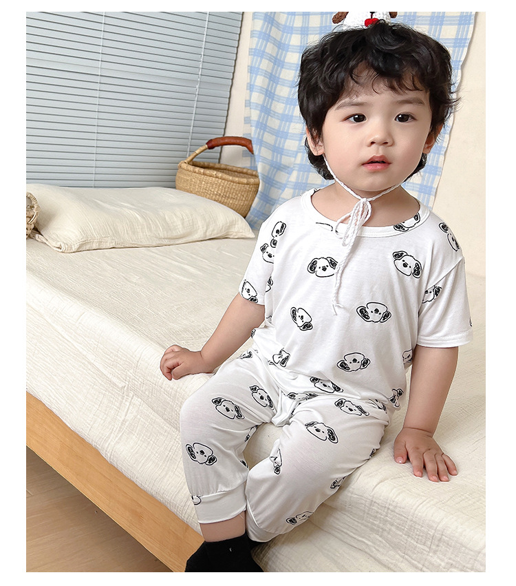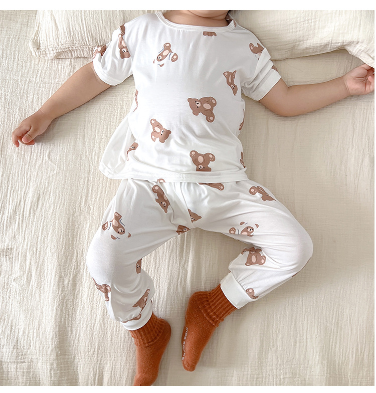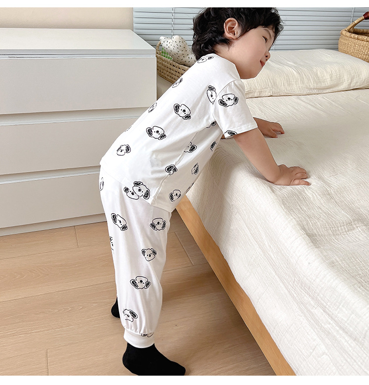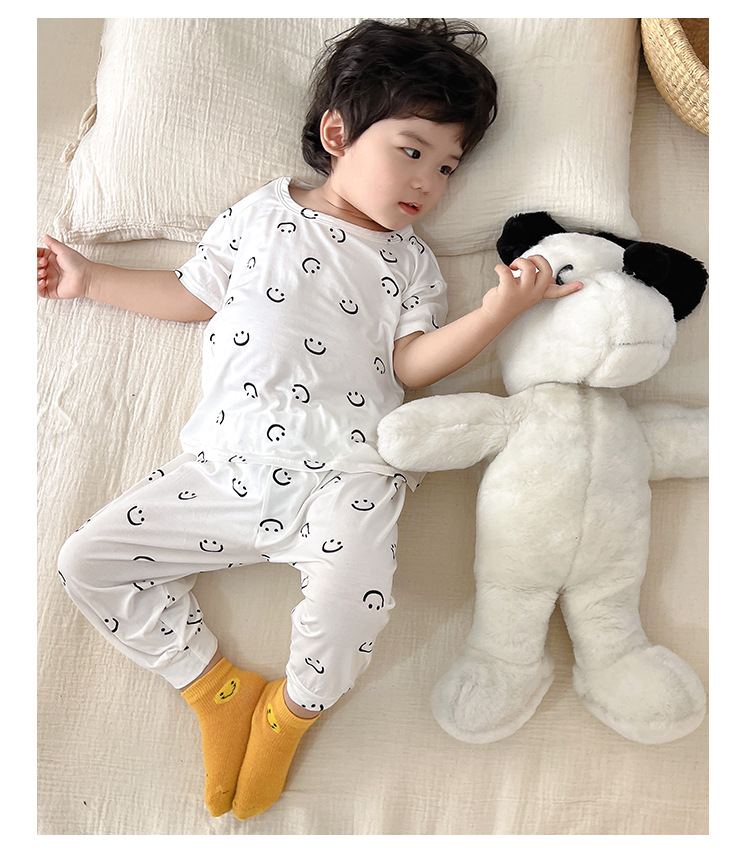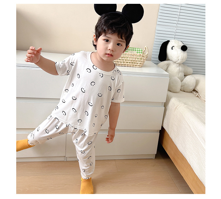 어린이 잠옷 모달 봄 가을 가정 세트 여름 반팔 에어컨 옷 어린 소년 소녀 아기 기지