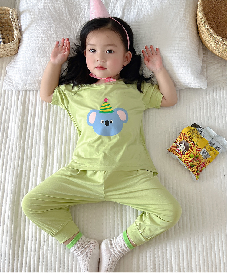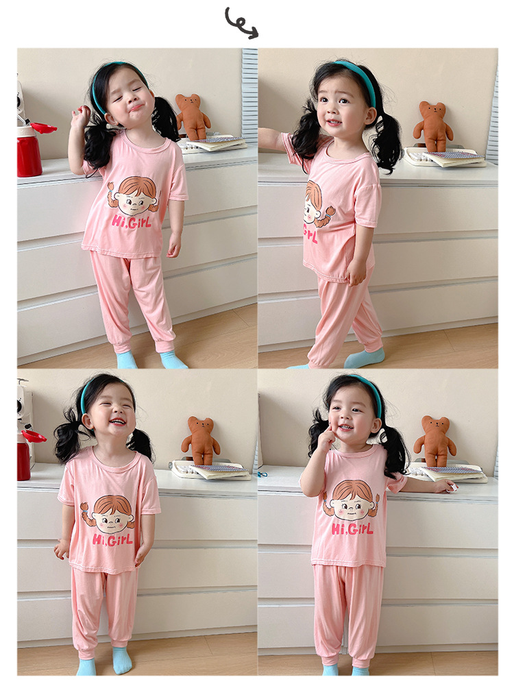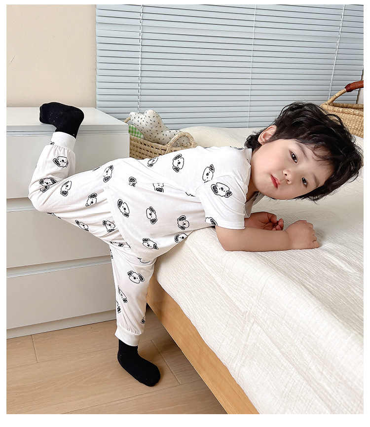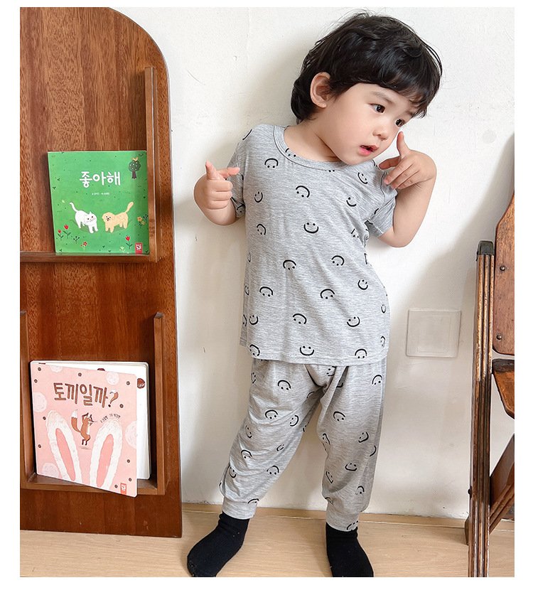 어린이 잠옷 모달 봄 가을 가정 세트 여름 반팔 에어컨 옷 어린 소년 소녀 아기 기지스토어 가기