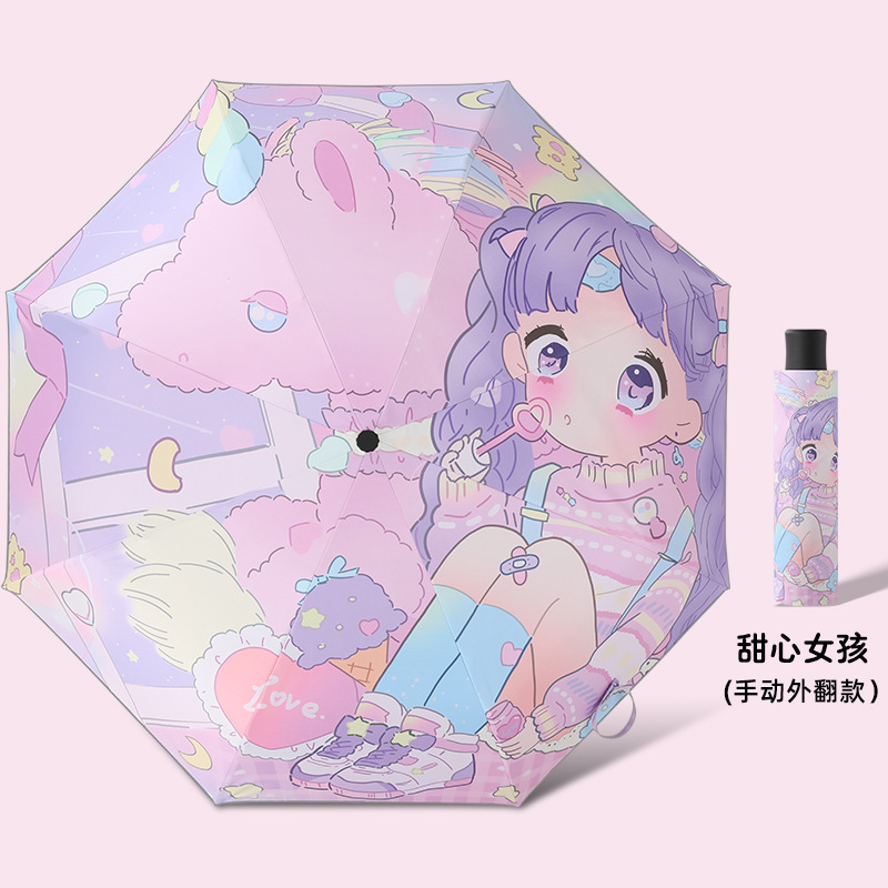 다양한 만화 귀여운 어린이 특수 우산 화창하고 비 이중 사용 우산 접이식 우산 야외 태양 우산 필수 우산 외출