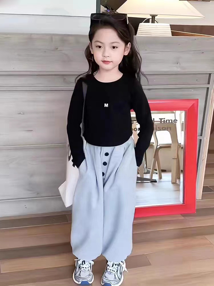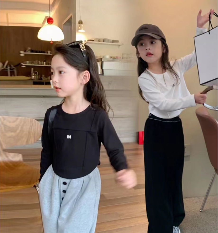 뜨거운 소녀 연인] 가을 인기 있는 새로운 품질 여자 어린이 바지 셔츠 다재다능한 패션 긴 소매