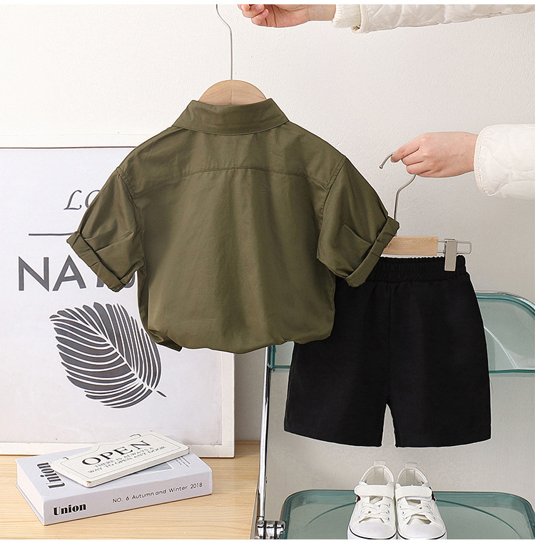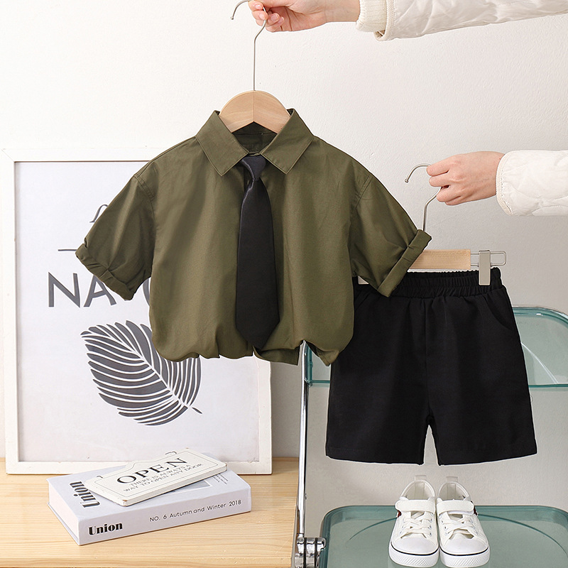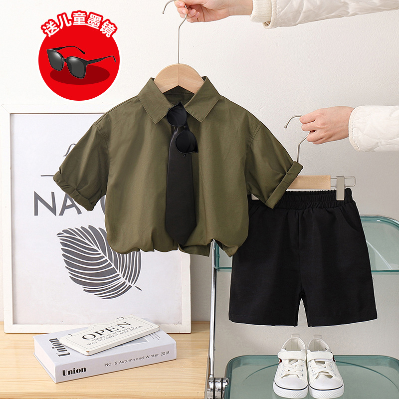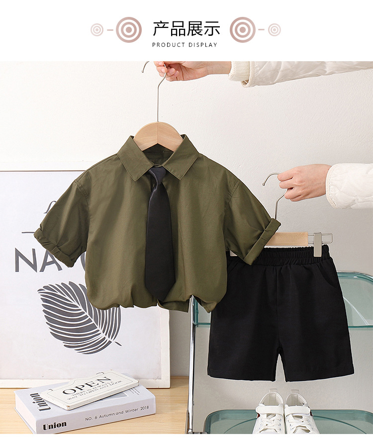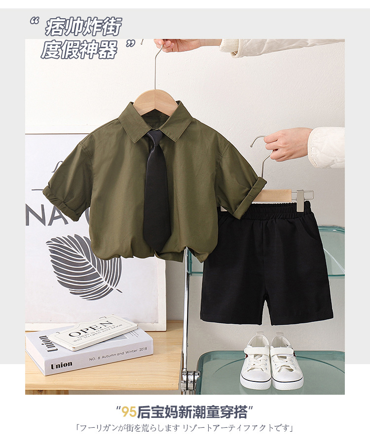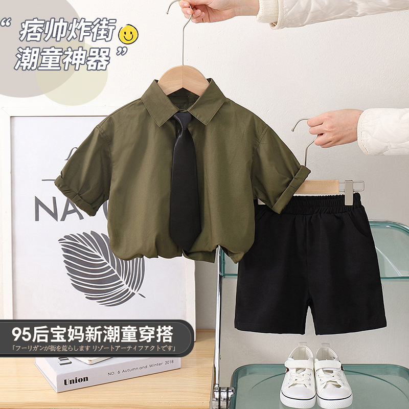 아동복 아동복 세트 소년 소녀 반팔 셔츠 반바지 투피스 뉴 러피안 슈아이 홍콩 스타일 헤어 세대