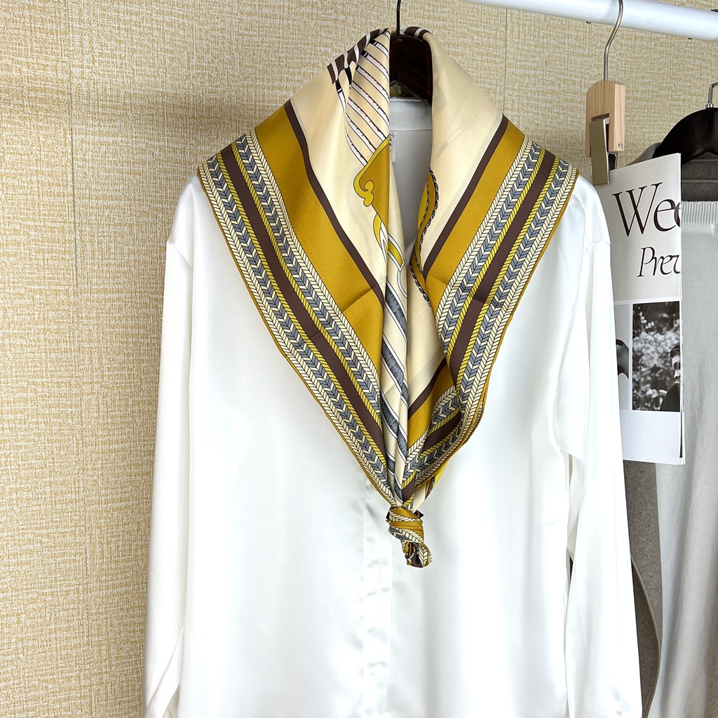 잠금 사랑 체인 100% 뽕나무 실크 스카프 여성용 실크 트윌 90 스퀘어 스카프 선물 스카프 올 매치 숄을 잠금