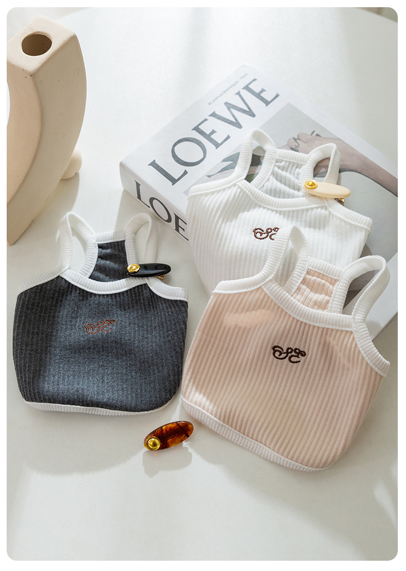 봄과 여름 개 한국 스타일의 신선한 간단한 머리핀 수 놓은 작은 스트랩 고양이 두 다리 애완 동물 얇은 개 옷스토어 가기