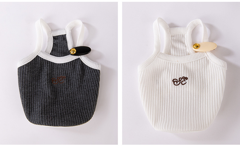 봄과 여름 개 한국 스타일의 신선한 간단한 머리핀 수 놓은 작은 스트랩 고양이 두 다리 애완 동물 얇은 개 옷