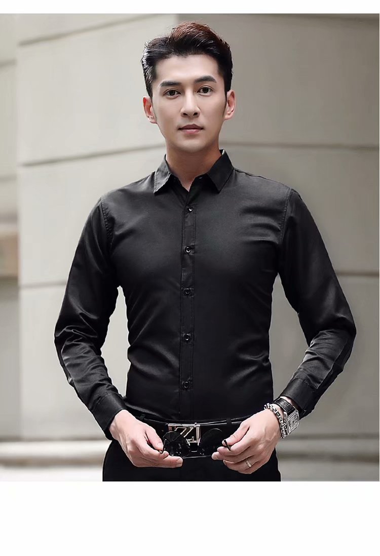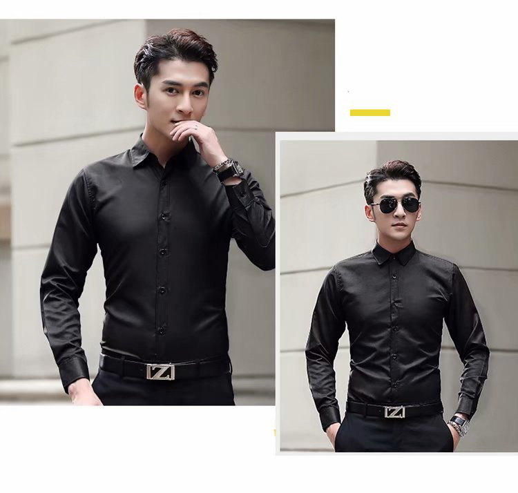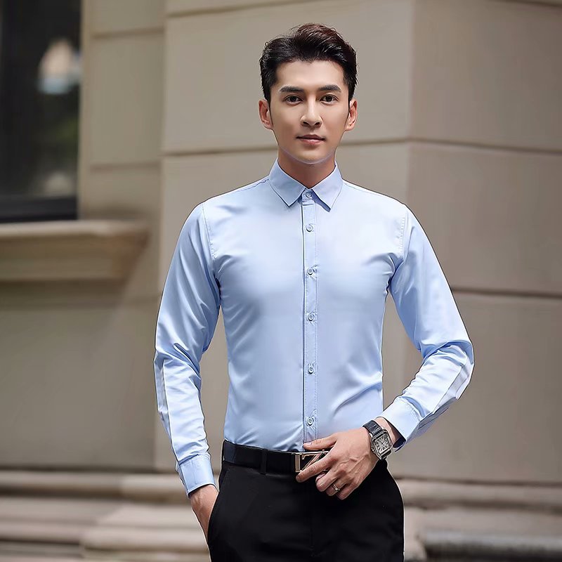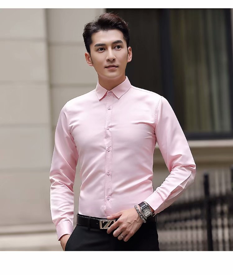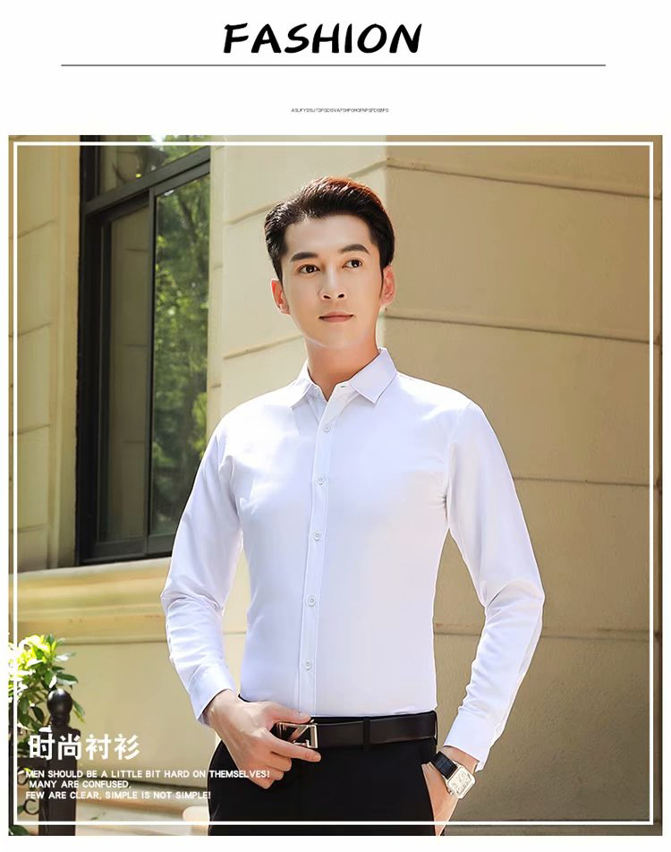 긴 소매 셔츠 남성 옷깃 흰색 셔츠 캐주얼 다재다능한 청소년 슬림 셔츠 비즈니스 사무실 직원 원피스 배달
