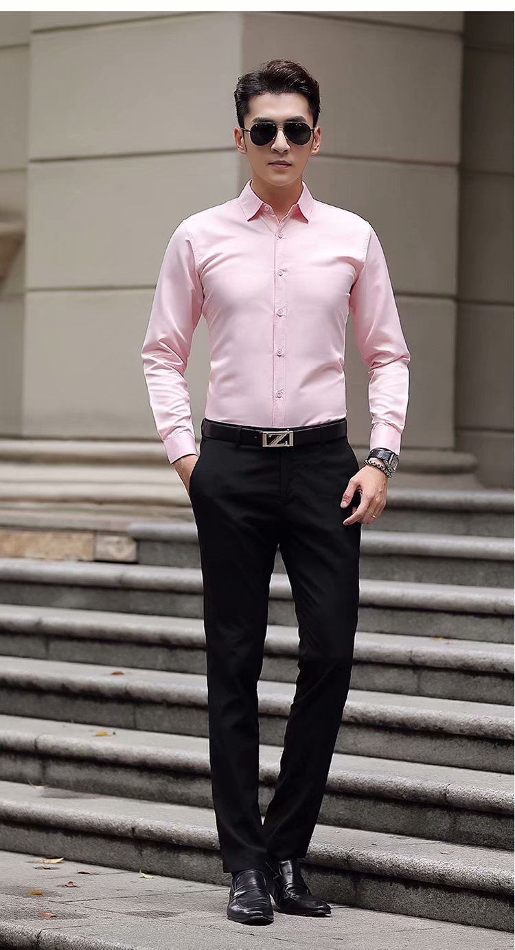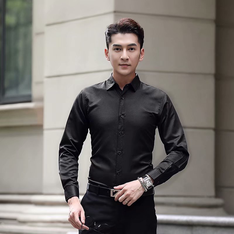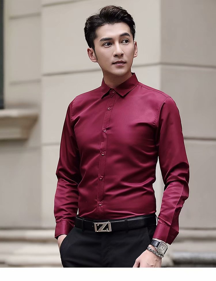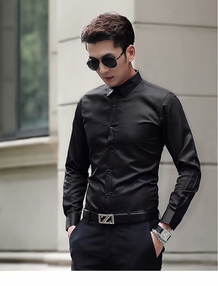 긴 소매 셔츠 남성 옷깃 흰색 셔츠 캐주얼 다재다능한 청소년 슬림 셔츠 비즈니스 사무실 직원 원피스 배달
