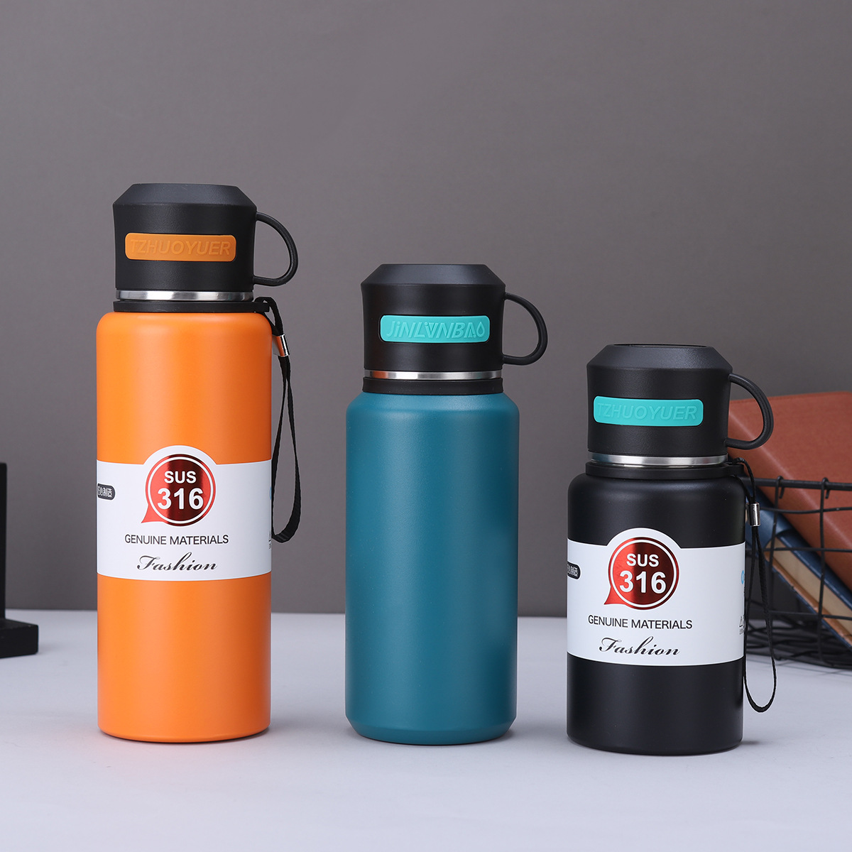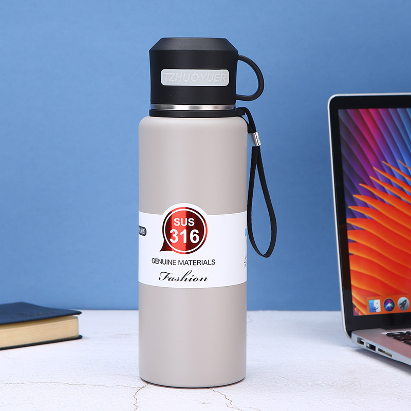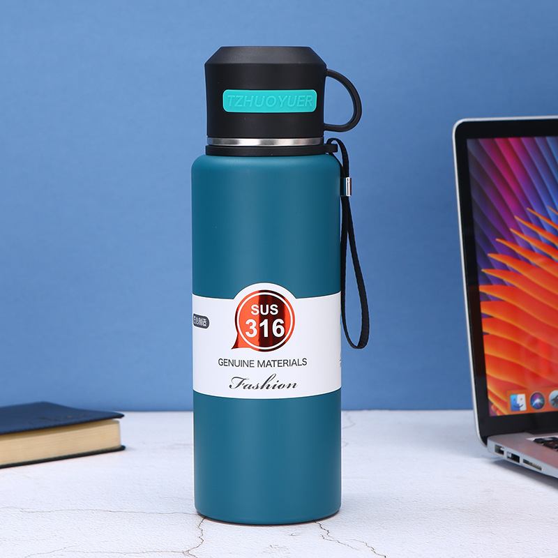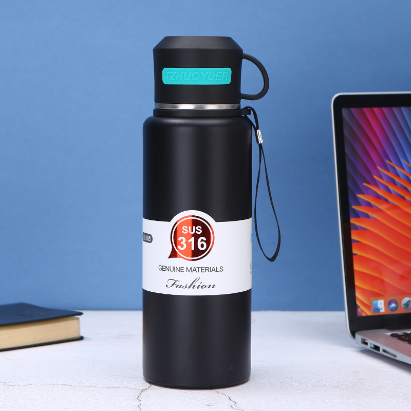 316 대용량 스테인레스 스틸 진공 컵 차 분리 찐 차 컵 야외 등산 휴대용 로프 여행 냄비