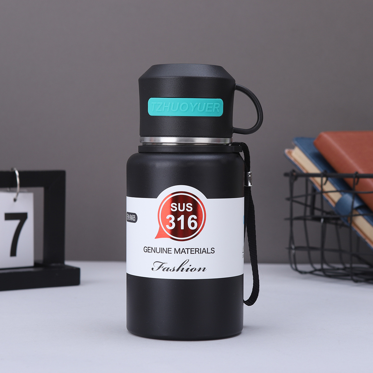 316 대용량 스테인레스 스틸 진공 컵 차 분리 찐 차 컵 야외 등산 휴대용 로프 여행 냄비스토어 가기