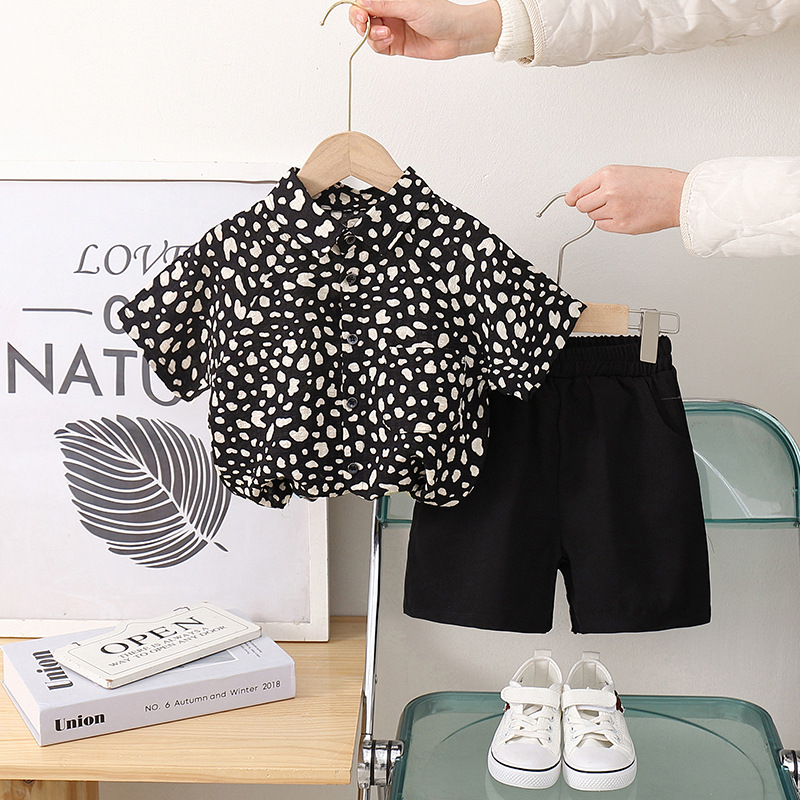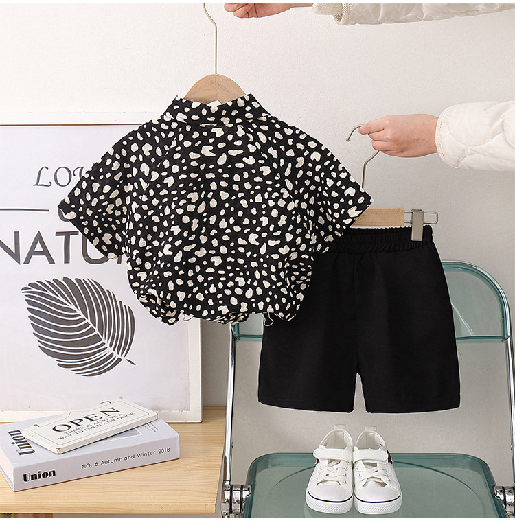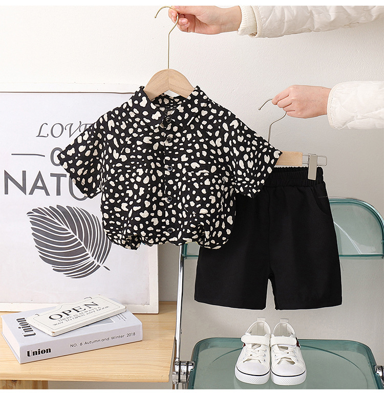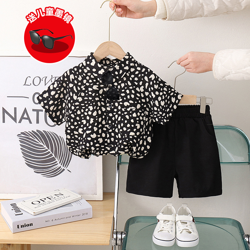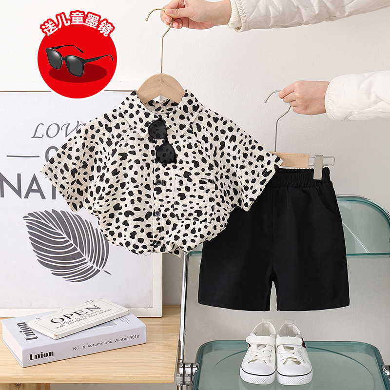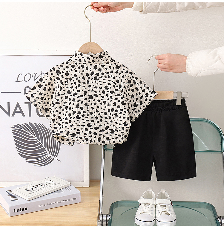 아동복 아동복 여름 신작 홍콩 스타일 잘 생긴 캐주얼 소년 소녀 반팔 3 색 표범 무늬 얇은 셔츠 반바지스토어 가기