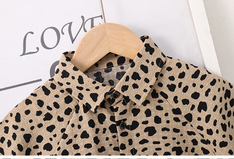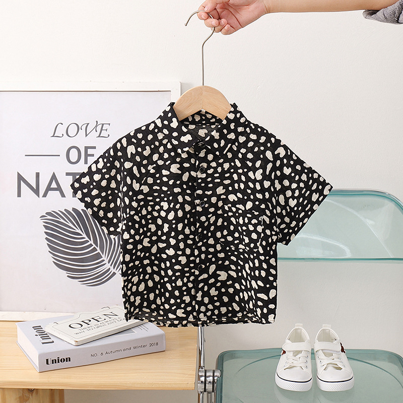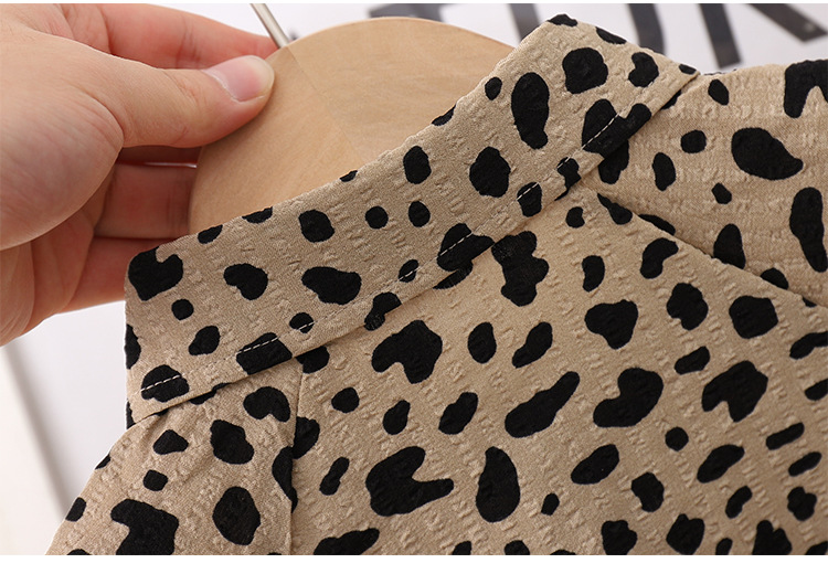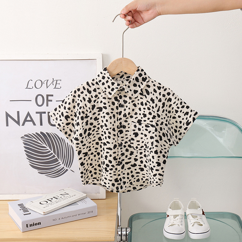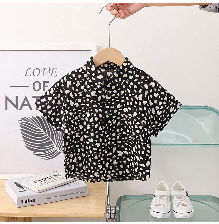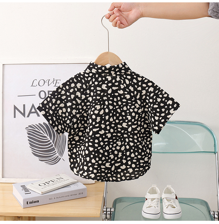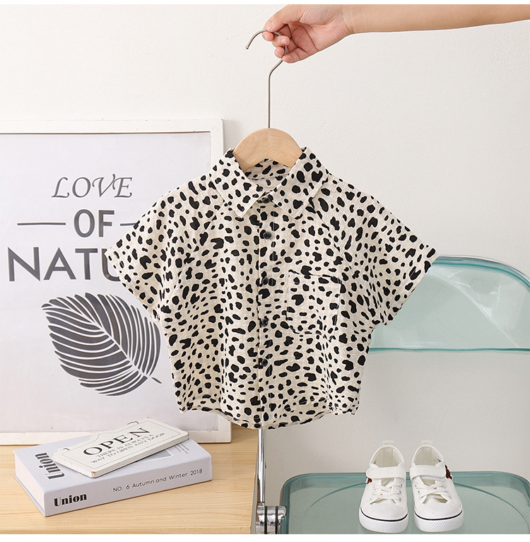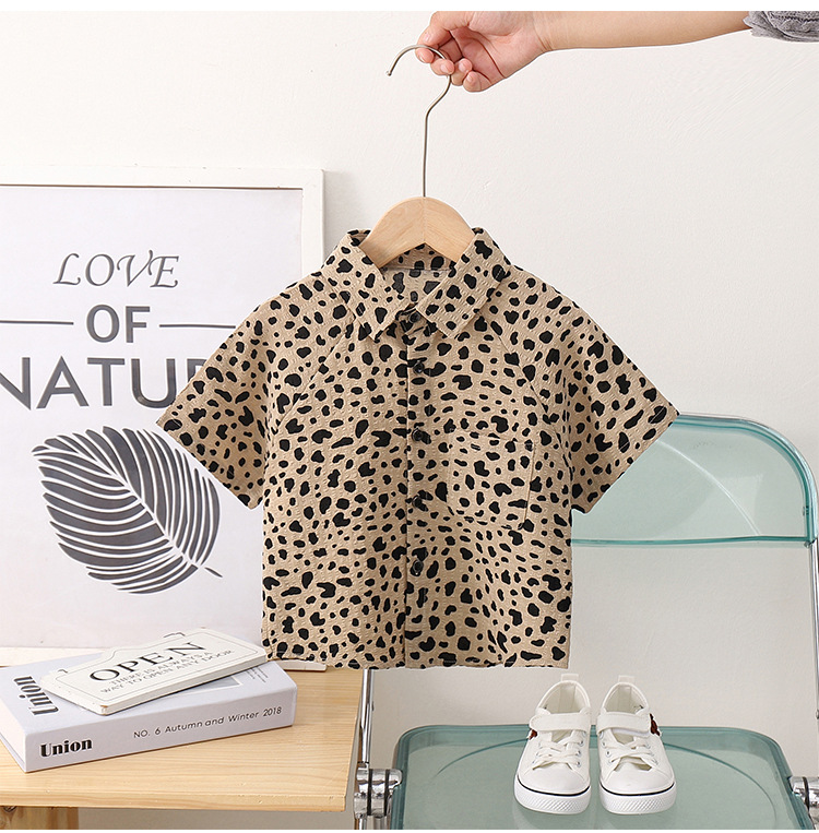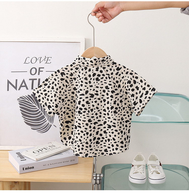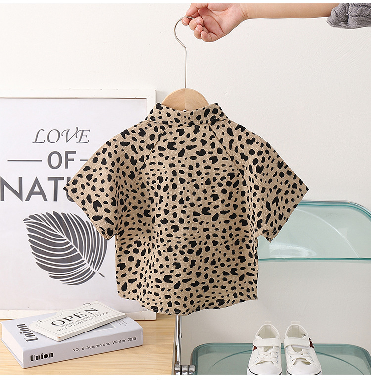 아동복 아동복 여름 신작 홍콩 스타일 잘 생긴 캐주얼 소년 소녀 반팔 3 색 표범 무늬 얇은 셔츠 반바지
