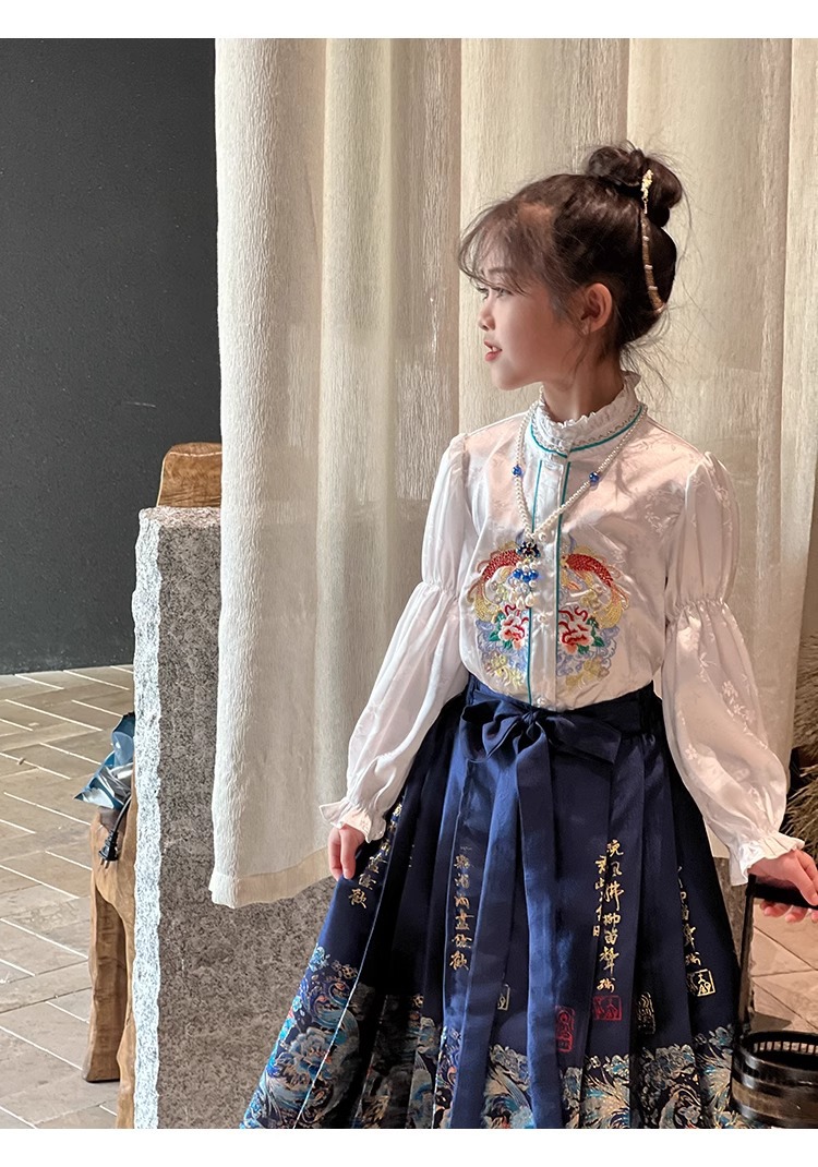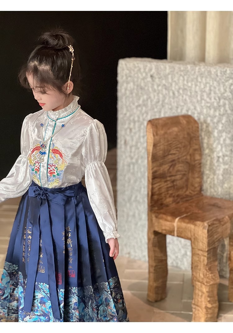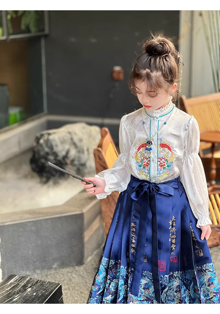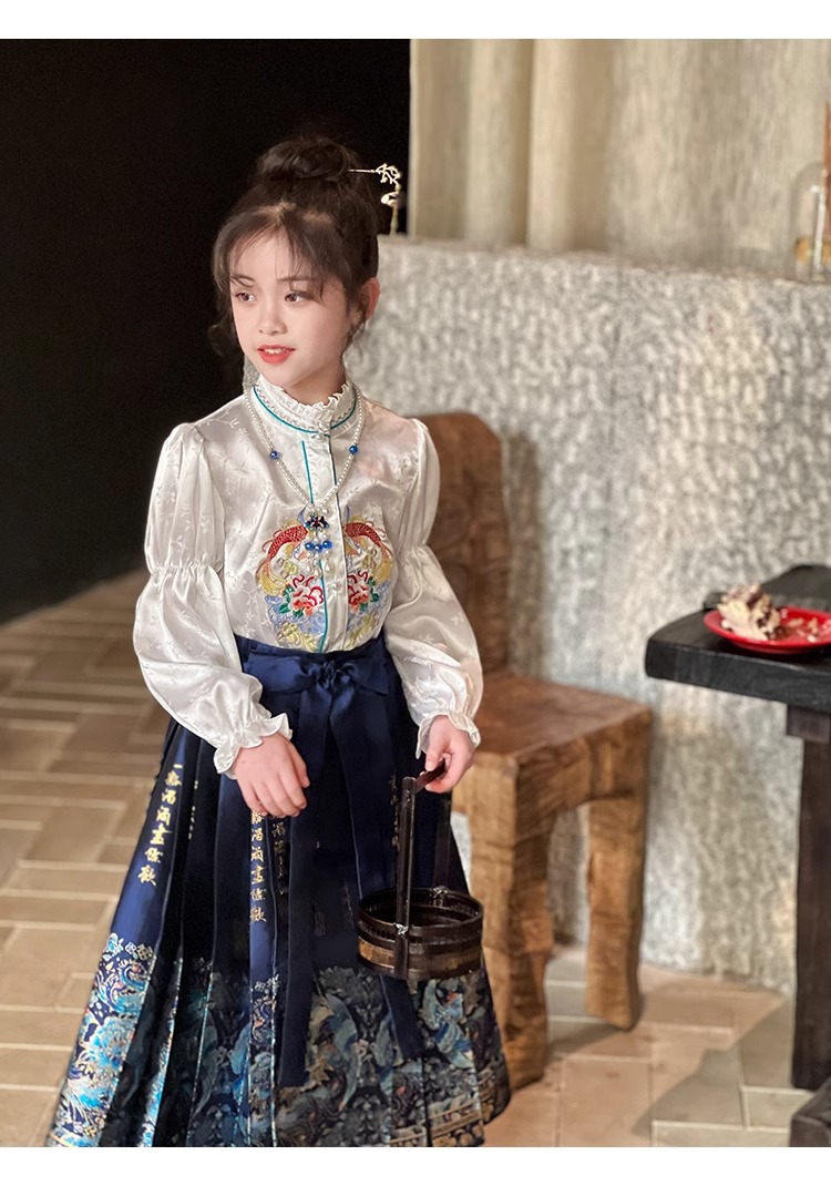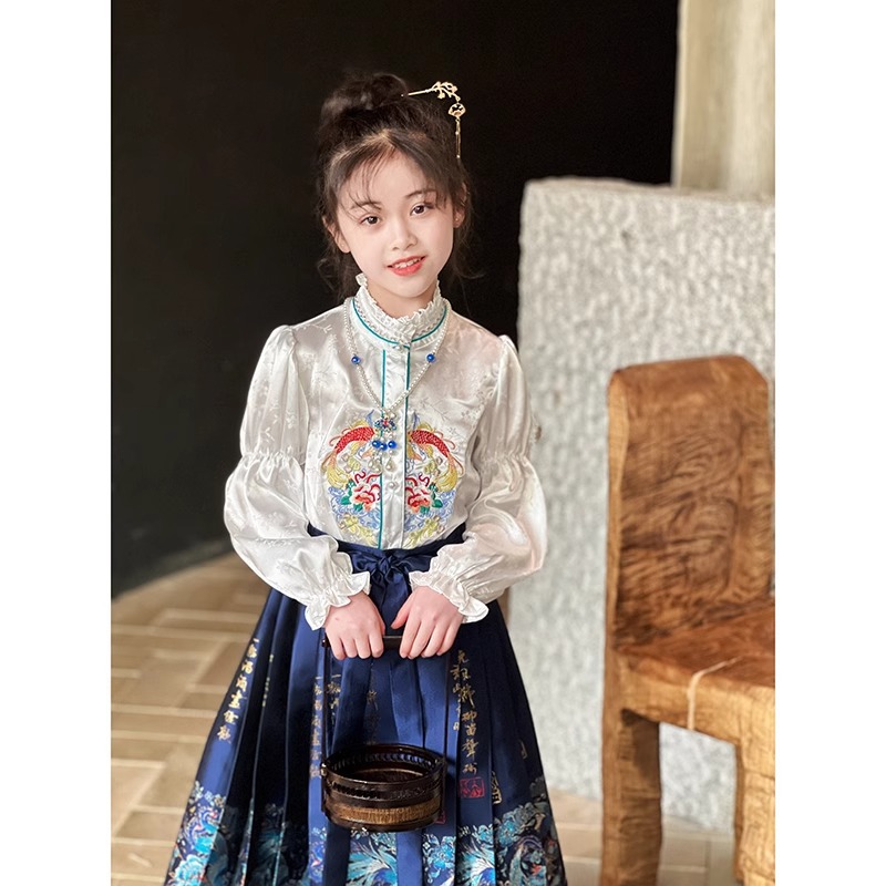 소녀 한푸 세트 2024 봄 새로운 어린이 중국 스타일 최고의 말 얼굴 치마 아기 소녀 고대 원피스 투피스 세트