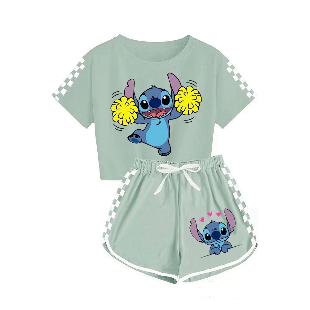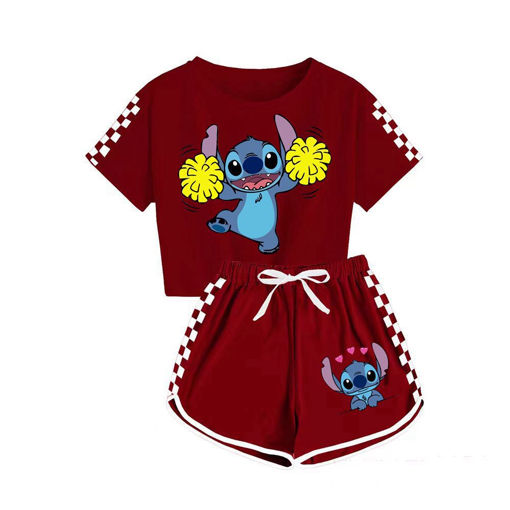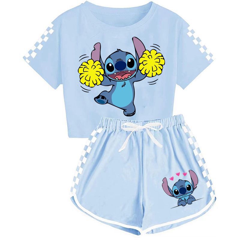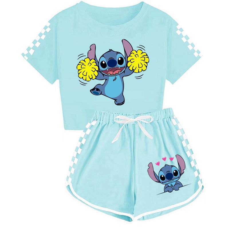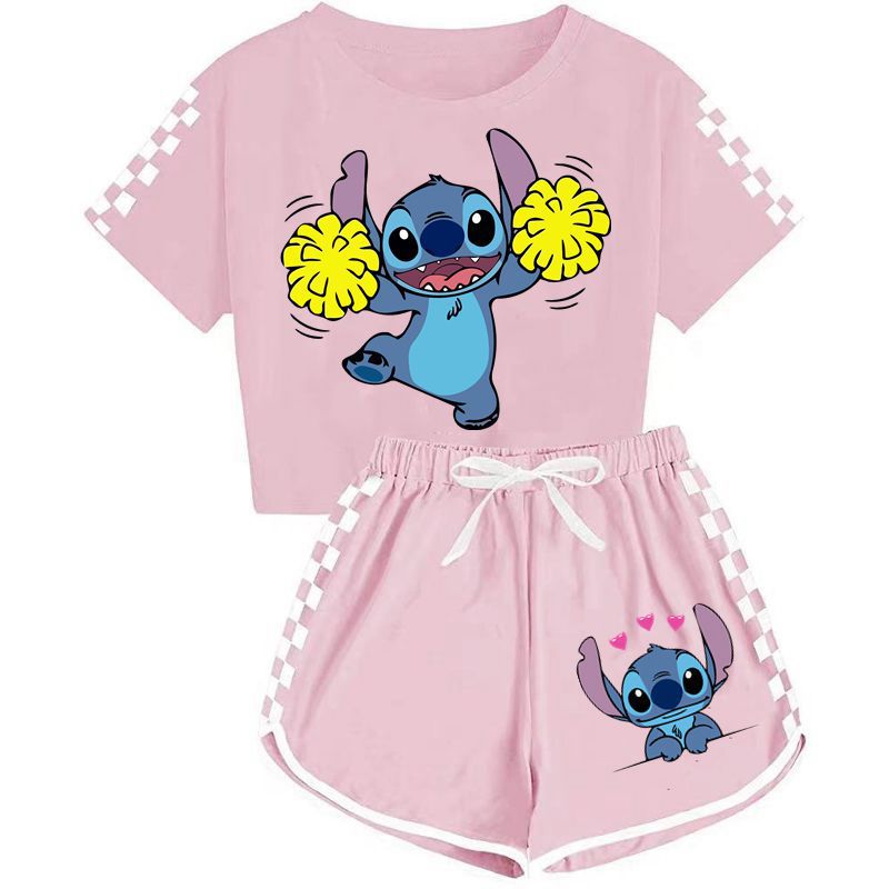스티치 소년 소녀 티셔츠 + 반바지 스포츠 잠옷 어린이 세트 909